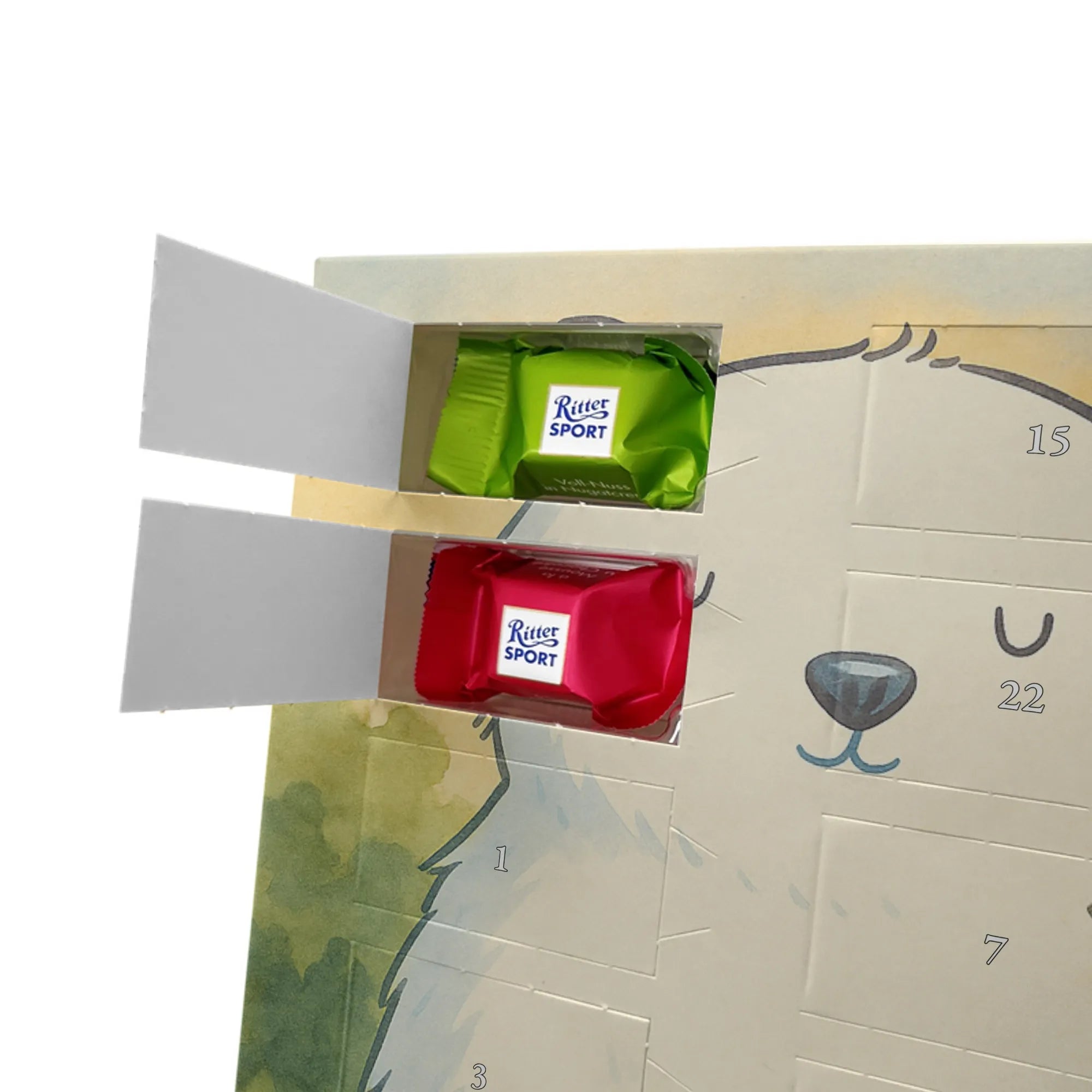 🐼 Gefüllt mit Ritter Sport Schokowürfeln in köstlichen Sorten für jede Adventsfreude.