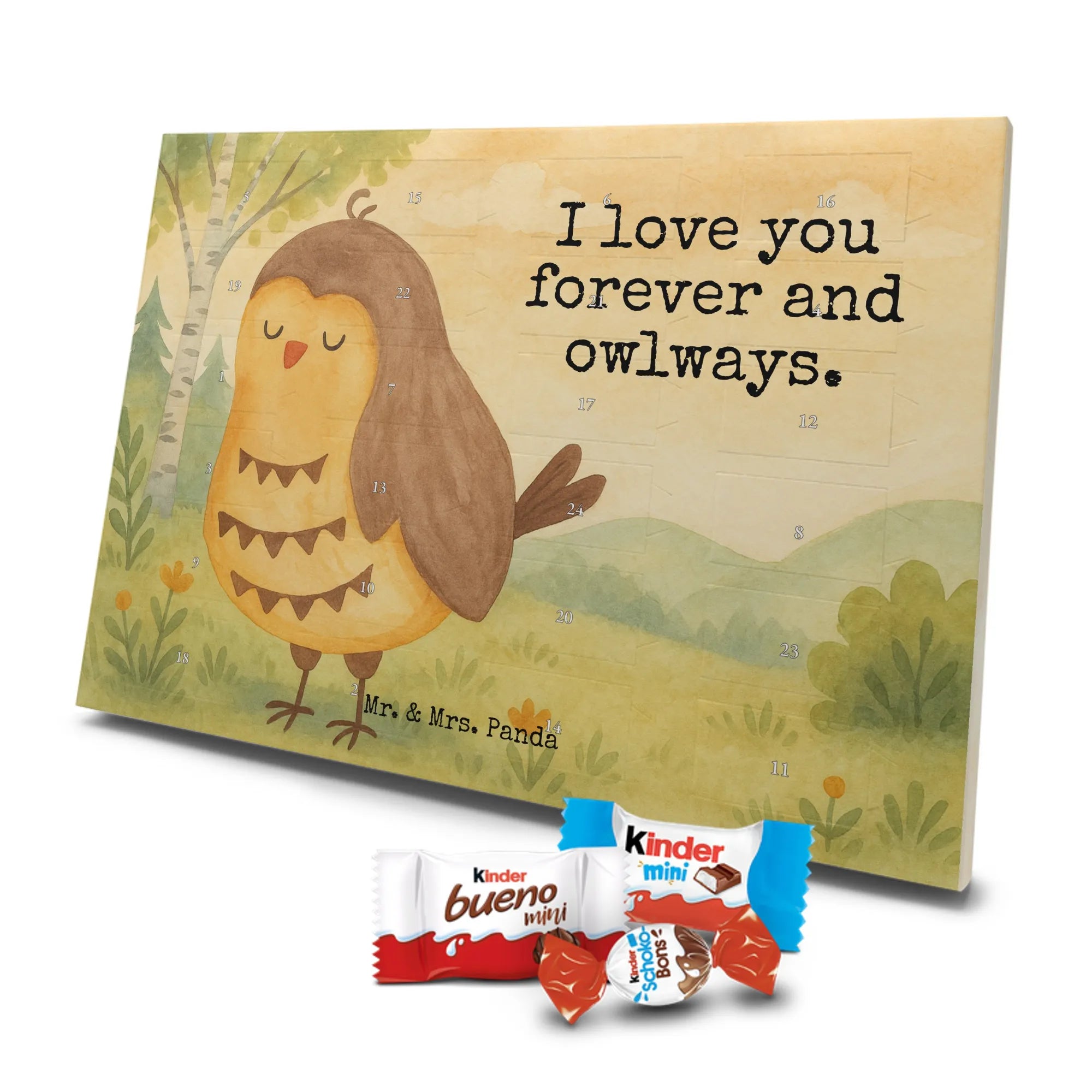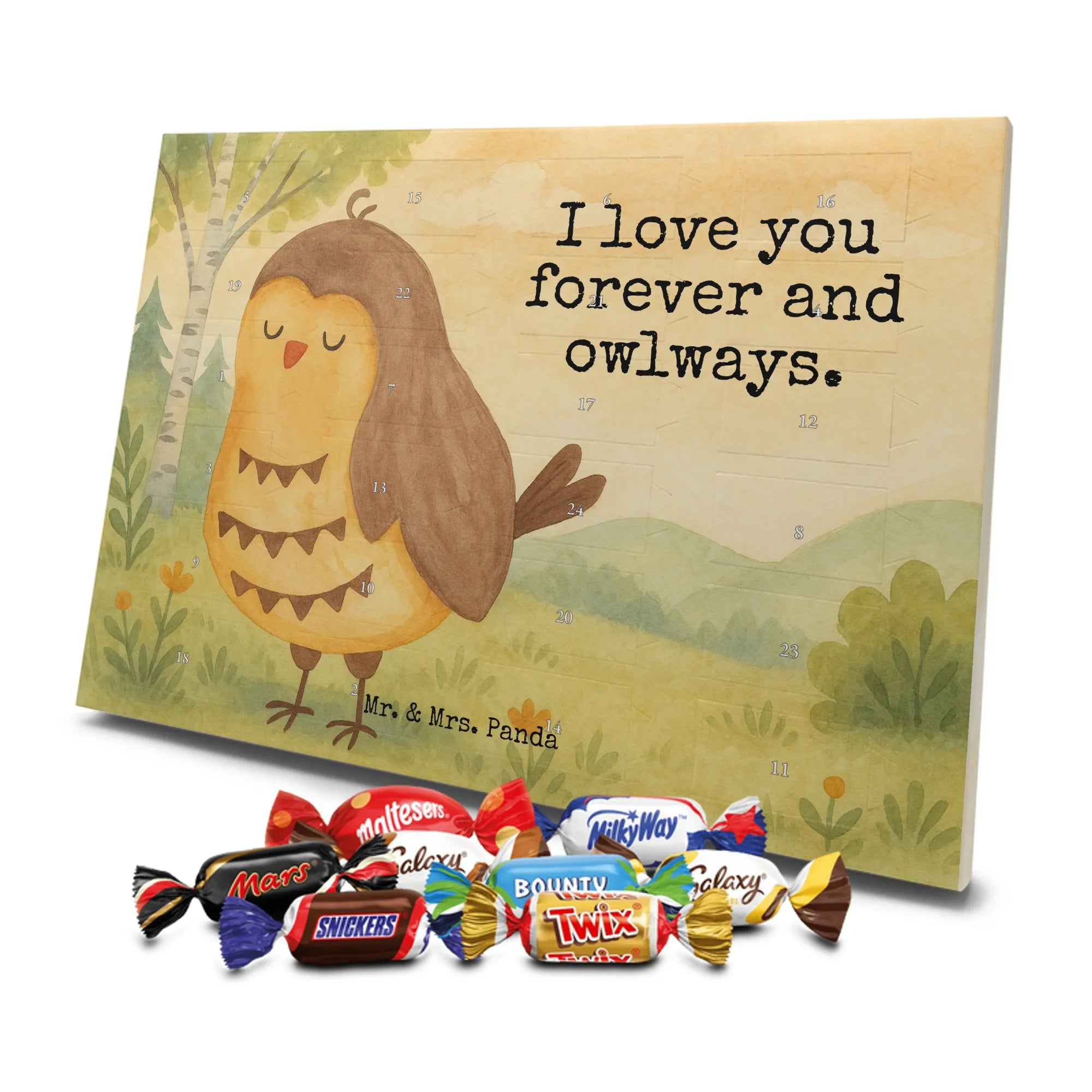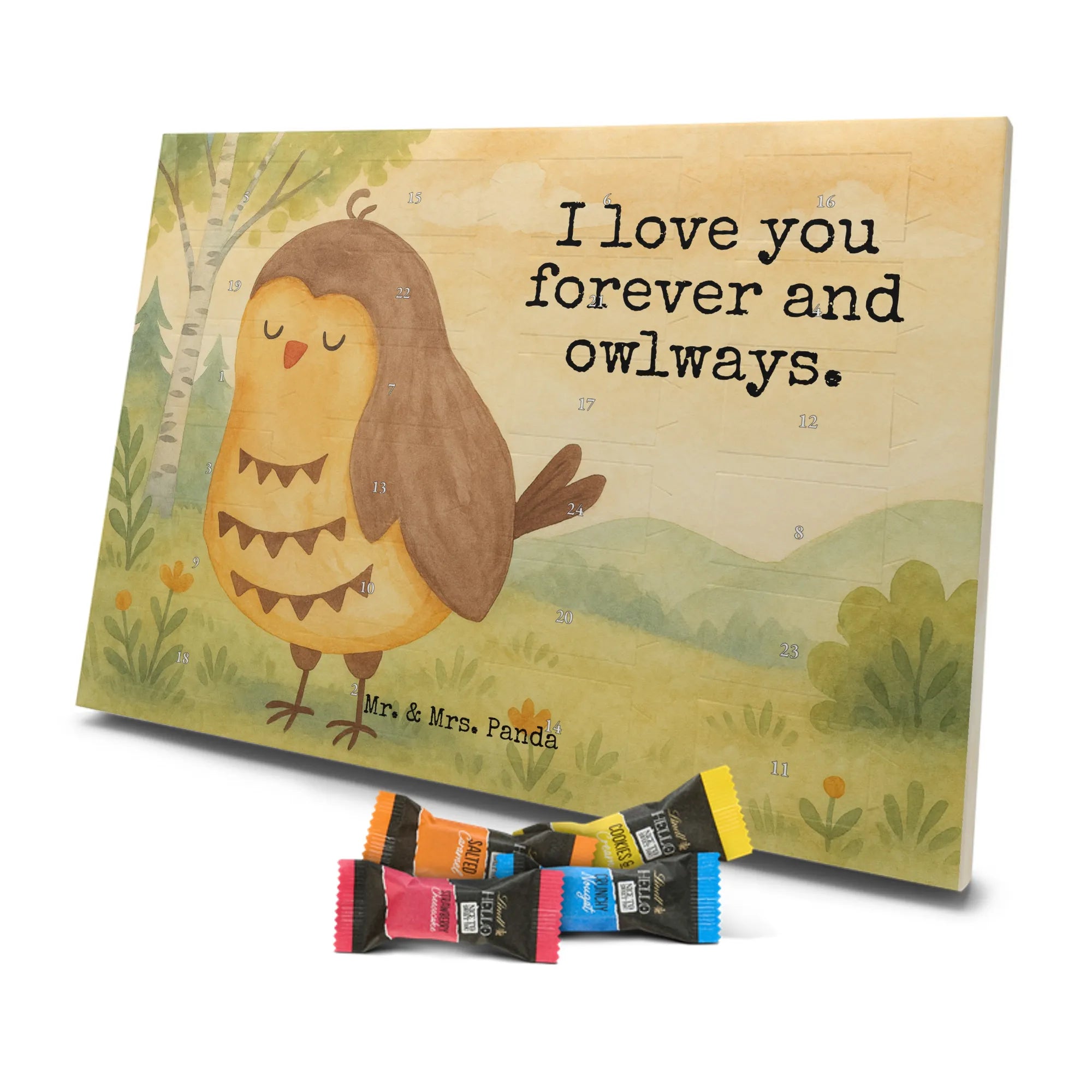 Die zufrieden blickende Eule mit dem Spruch „I love you forever and owlways.“ verbreitet Ruhe und Romantik. Ideal als Geschenk Hochzeitstag, als Geschenk für Eulen Fans oder als hübscher Weihnachtskalender Schokolade für die ganze Familie. Die liebevollen Details des Motivs stammen aus der Feder von Mrs. Panda und verleihen dem Motiv Tiefe und Charme. 🦉