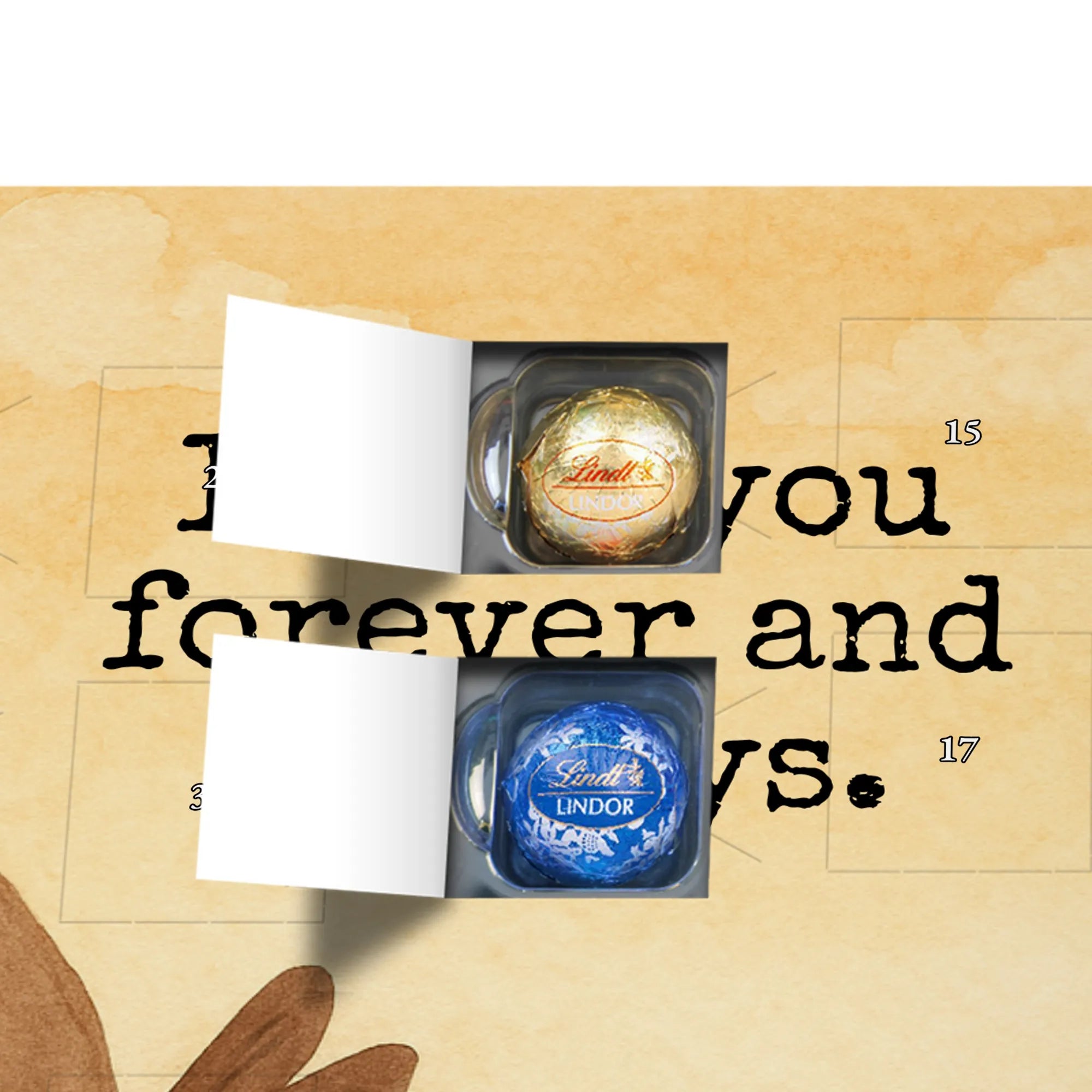 Der Schokolade Adventskalender von Mr. & Mrs. Panda ist ein liebevoll gestaltetes Highlight für deine Adventsdeko. Bedruckt mit wunderschönen Motiven & Sprüchen, nicht personalisierbar, bietet er eine charmante Optik für jeden Haushalt. Die brillante Druckqualität mit seidenmatter Oberflächenveredelung sorgt für edle Akzente, und die bedruckten Seitenflächen machen den Kalender rundum schön. Maße: 233 mm x 178 mm x 24 mm. Besonderheit: kann aufgehängt oder aufgestellt werden – richtig praktisch! Gefüllt mit Lindt Lindor: 24 einzeln verpackte Markenschokoladen Kugeln in drei köstlichen Varianten – Vollmilch, Feinherb und Weiße Schokolade – sorgen für tägliche Freuden. Zutaten: Zucker, pflanzliches Fett (Kokosnuss, Palmkern), Kakaobutter, Vollmilchpulver, Kakaomasse, Milchzucker, Magermilchpulver, Butterreinfett, Emulgator (Sojalecithin), Gerstenmalzextrakt, Aromen. Besondere Hinweise: Kann Haselnüsse und Mandeln enthalten. Ob als Geschenk oder für dich selbst – dieser Kalender ist eine wunderbare Mischung aus Design und feiner Markenschokolade.