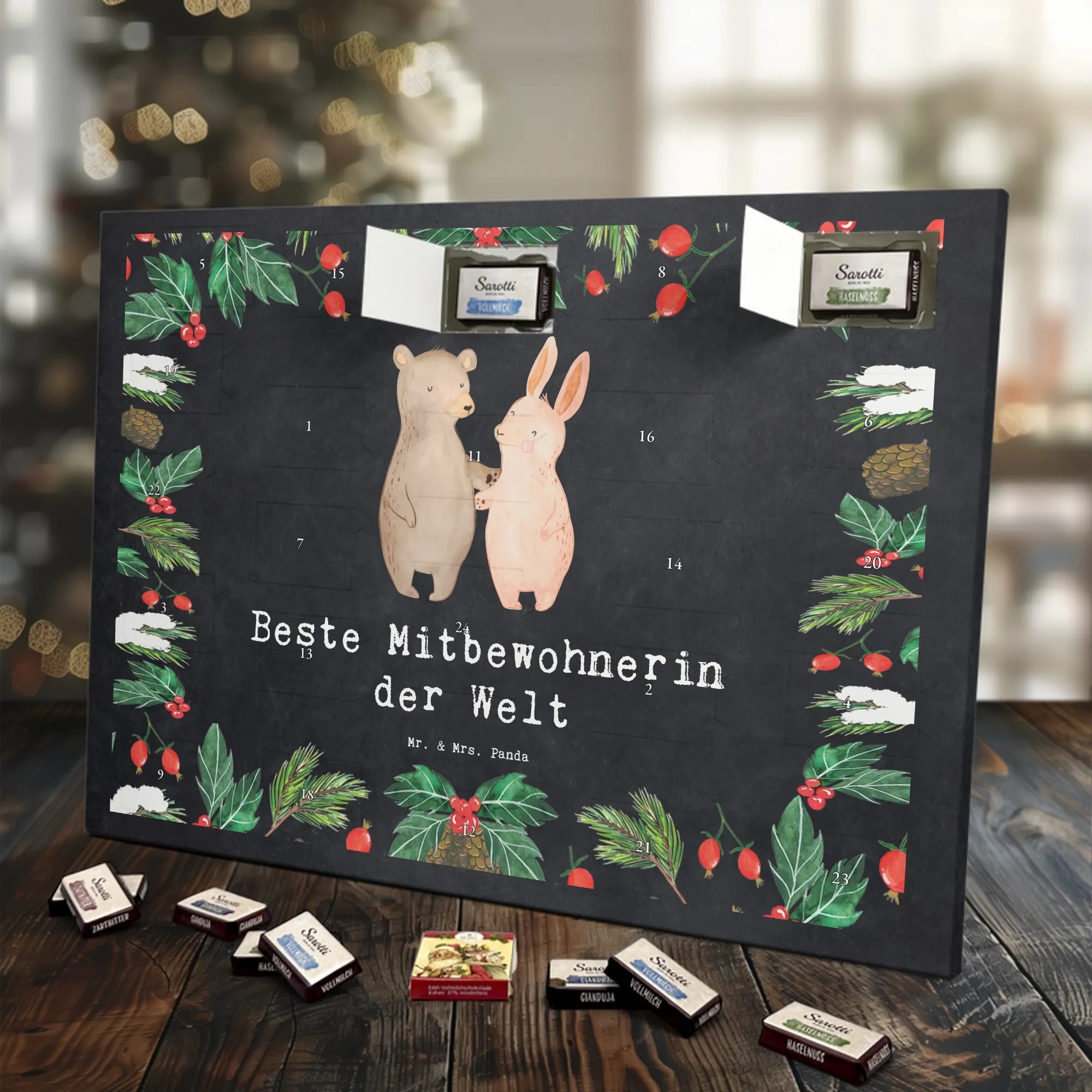 Wunderschöner Schoko Adventskalender von Mr. & Mrs. Panda – perfekt für alle, die die Vorweihnachtszeit mit süßen Momenten feiern möchten. Unser Adventskalender ist liebevoll bedruckt mit zauberhaften Motiven und freundlichen Sprüchen von Mr. & Mrs. Panda. Die brillante Druckqualität und die seidenmatte Oberflächenveredelung lassen die Farben sanft und edel wirken, während die bedruckten Seitenflächen den besonderen Look abrunden. Der Kalender ist nicht personalisierbar, dafür aber vielseitig: Du kannst ihn aufstellen oder ganz einfach an der Wand aufhängen. Gefüllt ist der Kalender mit hochwertiger Markenschokolade: 24 einzeln verpackte Schokoladentäfelchen in vier leckeren Geschmacksrichtungen von Sarotti® und Confiserie Heidel® – Vollmilch, Nougat, Zartbitter und Haselnuss. Insgesamt enthält der Kalender 107 g Markenschokolade von Sarotti® und Confiserie Heidel®. Die kompakte Bauweise macht ihn zum dekorativen Hingucker auf dem Sideboard, auf dem Esstisch oder als besonderes Geschenk für Freundinnen, Familie und liebe Menschen. Maße: 355 mm x 245 mm x 11 mm. Mit diesem Schoko Adventskalender schenkst du kleine Freuden und zauberhafte Vorfreude auf die schönsten Tage des Jahres – ganz im gemütlichen Stil von Mr. & Mrs. Panda.