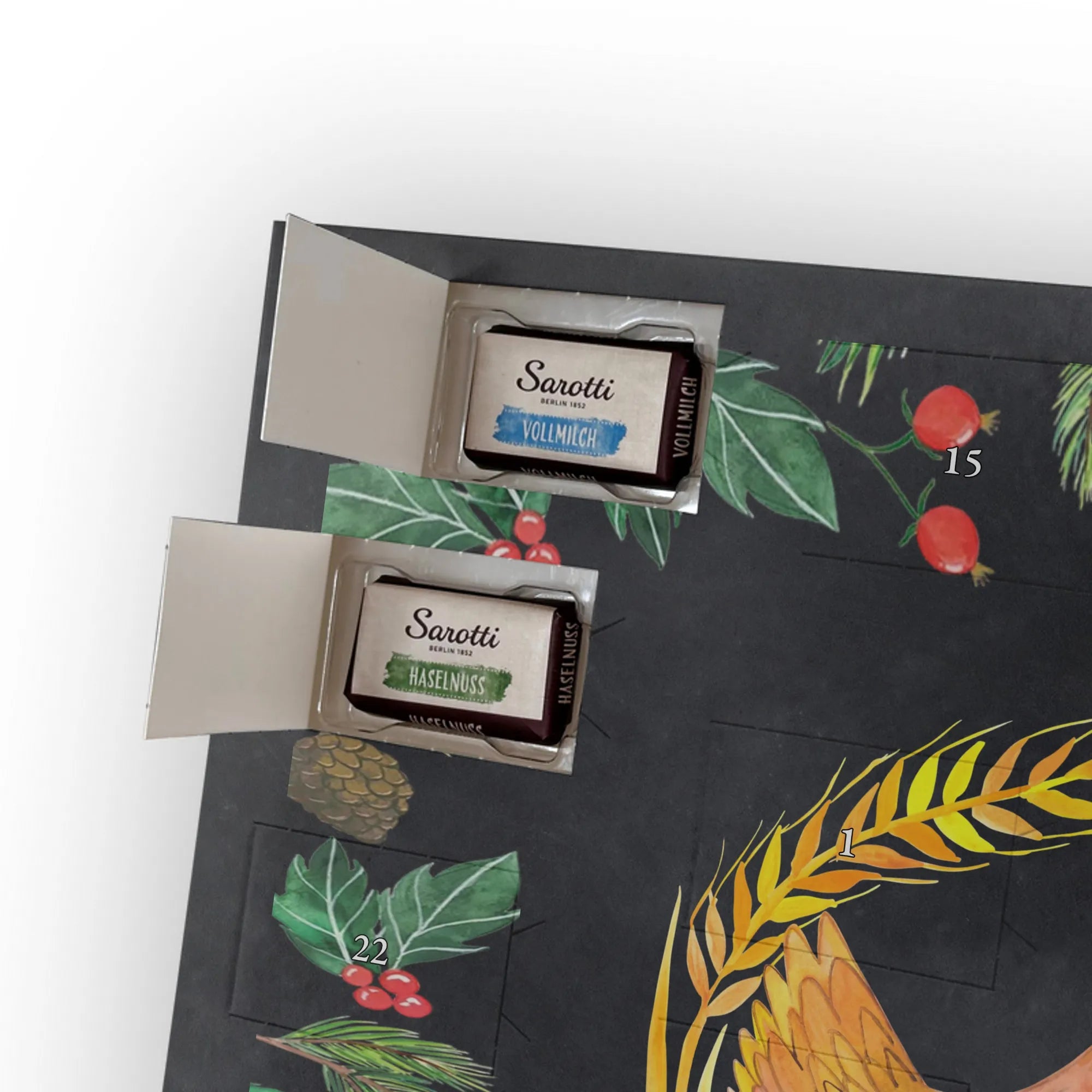 🐼 Schoko-Adventskalender: Liebevolles Design, seidenmatt, brillanter Druck – ein Hingucker.