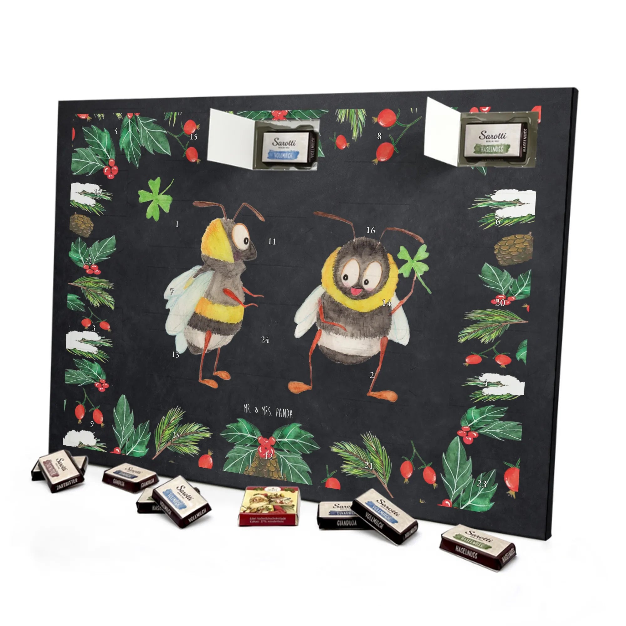 🐼 Schoko Adventskalender mit Mr. & Mrs. Panda Motiven, brillante Druckqualität, nicht personalisierbar.