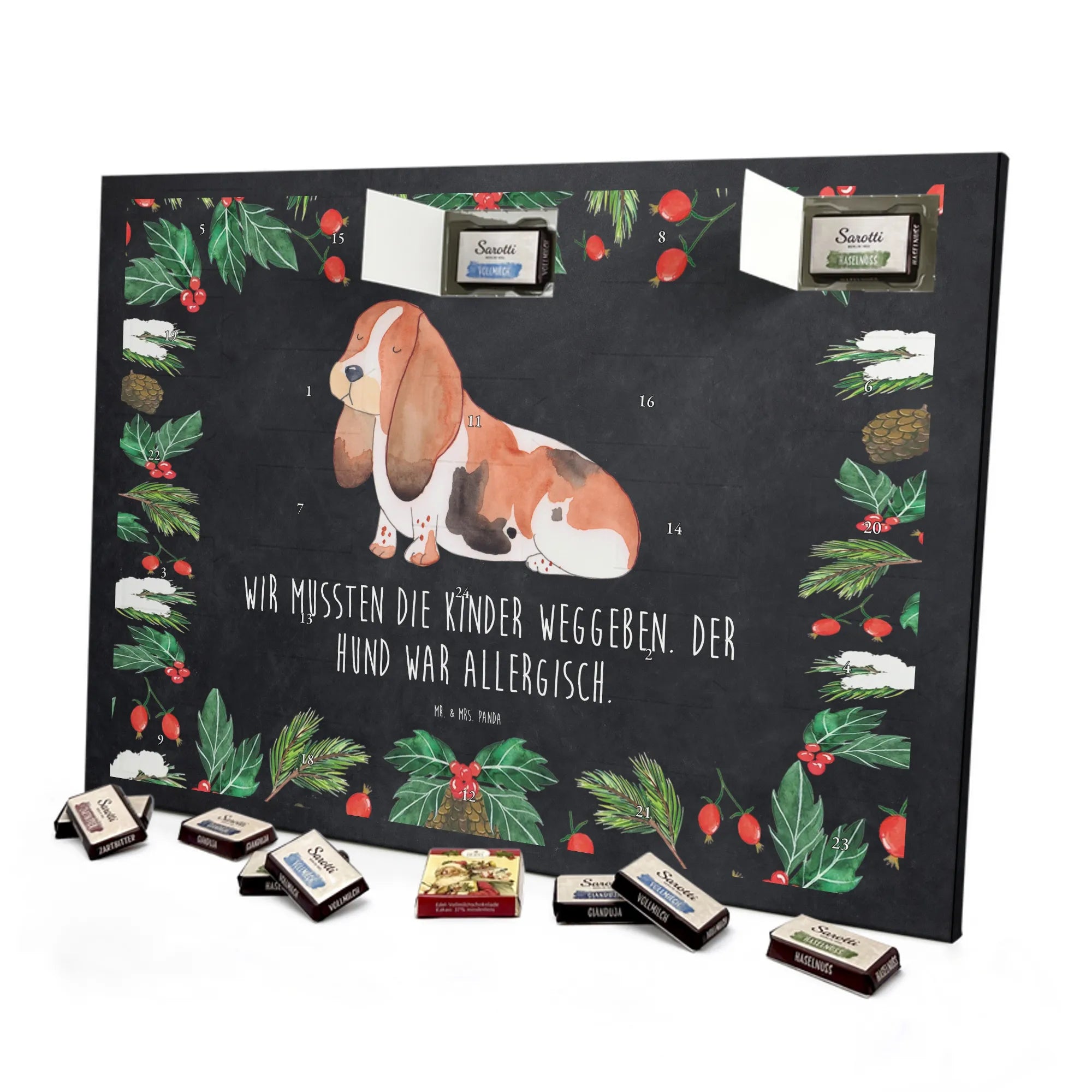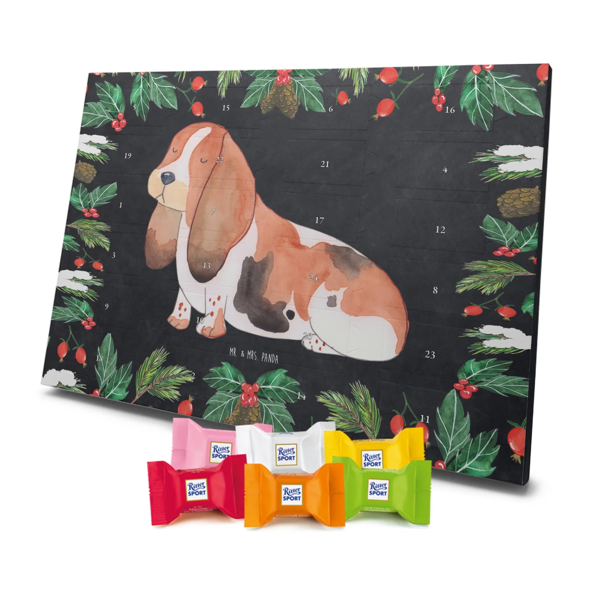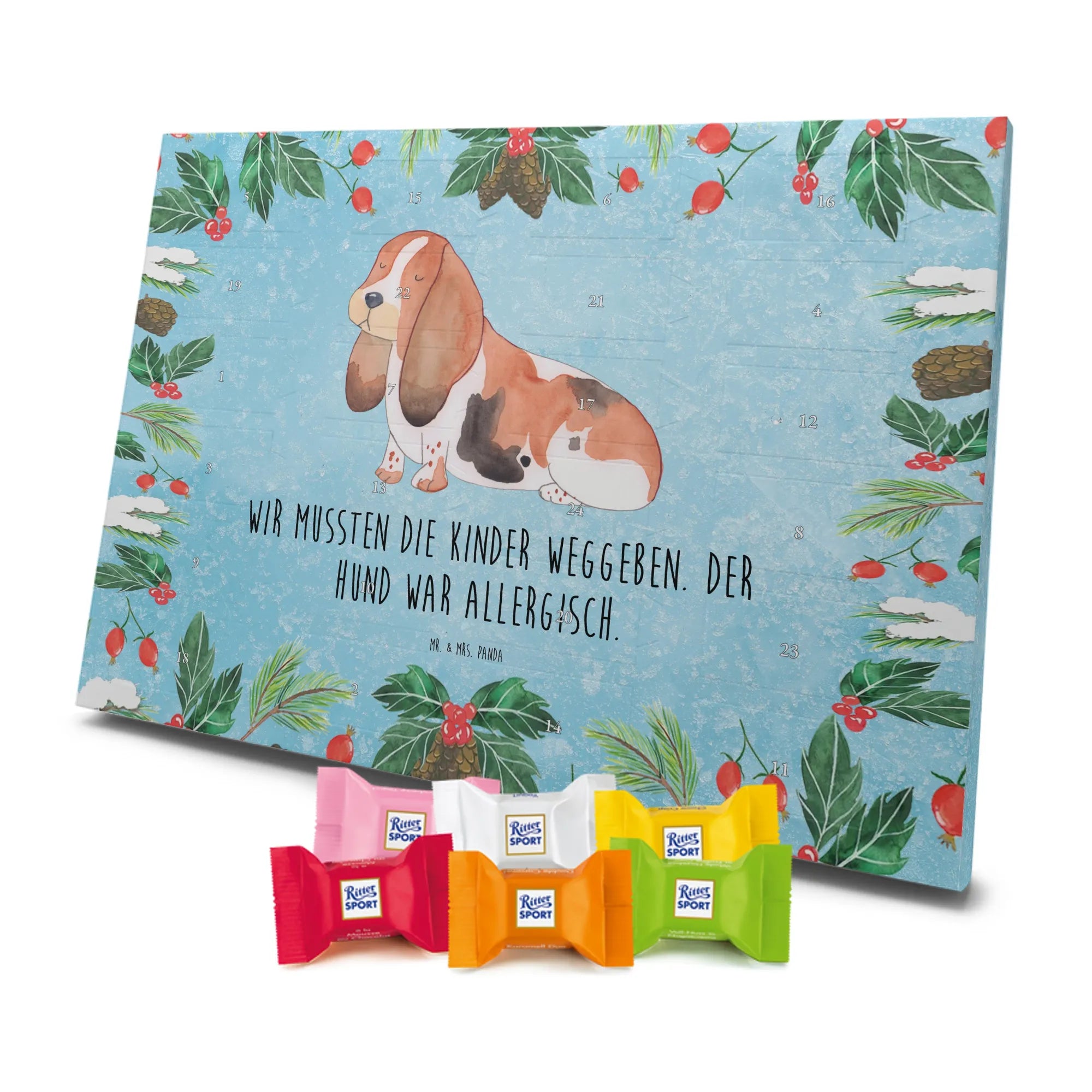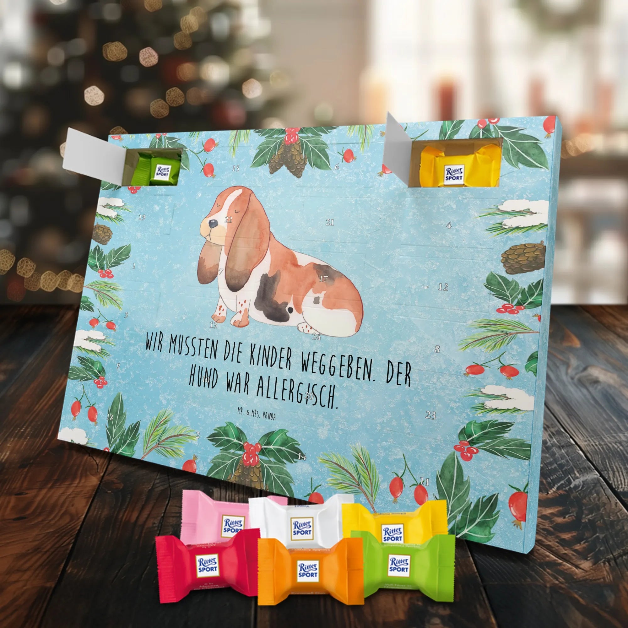 Adventskalender Hund Basset Hound - Classic - mit Spruch - Eisblau