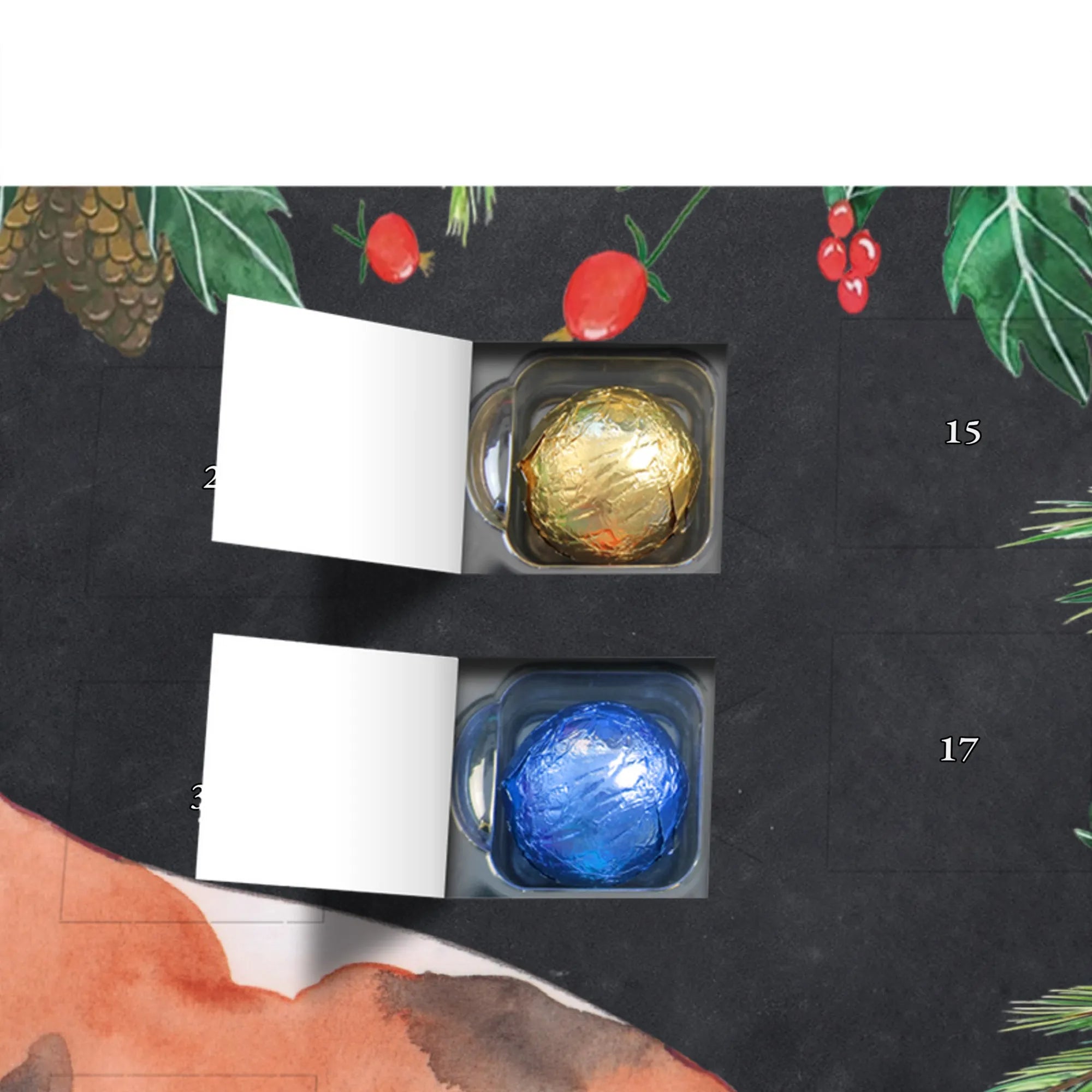 Wunderschöner Schokoladen Adventskalender von Mr. & Mrs. Panda – perfekt, um dir oder deinen Liebsten die Vorweihnachtszeit zu versüßen. Unser liebevoll gestalteter Schoko Adventskalender ist bedruckt mit wunderschönen Motiven & Sprüchen von Mr. & Mrs. Panda und bleibt ein fröhlicher Blickfang auf dem Tisch oder an der Wand. Er ist nicht personalisierbar, dafür aber mit viel Herz und Details gestaltet. Brillante Druckqualität mit seidenmatter Oberflächenveredelung sorgt dafür, dass die Farben strahlen und die Motive besonders edel wirken. Die Seitenflächen sind ebenfalls bedruckt, sodass der Kalender von allen Seiten hübsch aussieht. Maße: 233 mm x 178 mm x 24 mm und durch seine stabile Bauweise kannst du ihn sowohl aufstellen als auch an die Wand hängen – Besonderheit: kann aufgehängt oder aufgestellt werden. Gefüllt mit MARKENNAMEN Schokolade und leckeren Schokoladenkugeln, bietet jeder Tag eine kleine, köstliche Überraschung. Bitte beachte die besonderen Hinweise: (Kann Spuren von Haselnüssen, Mandeln, Gluten und Soja enthalten!), kühl und trocken lagern. Der Kalender eignet sich toll als Geschenk, als Adventsdekoration oder als liebevolle Aufmerksamkeit für Freunde und Familie. Mr. & Mrs. Panda wünscht dir eine süße und gemütliche Vorweihnachtszeit!