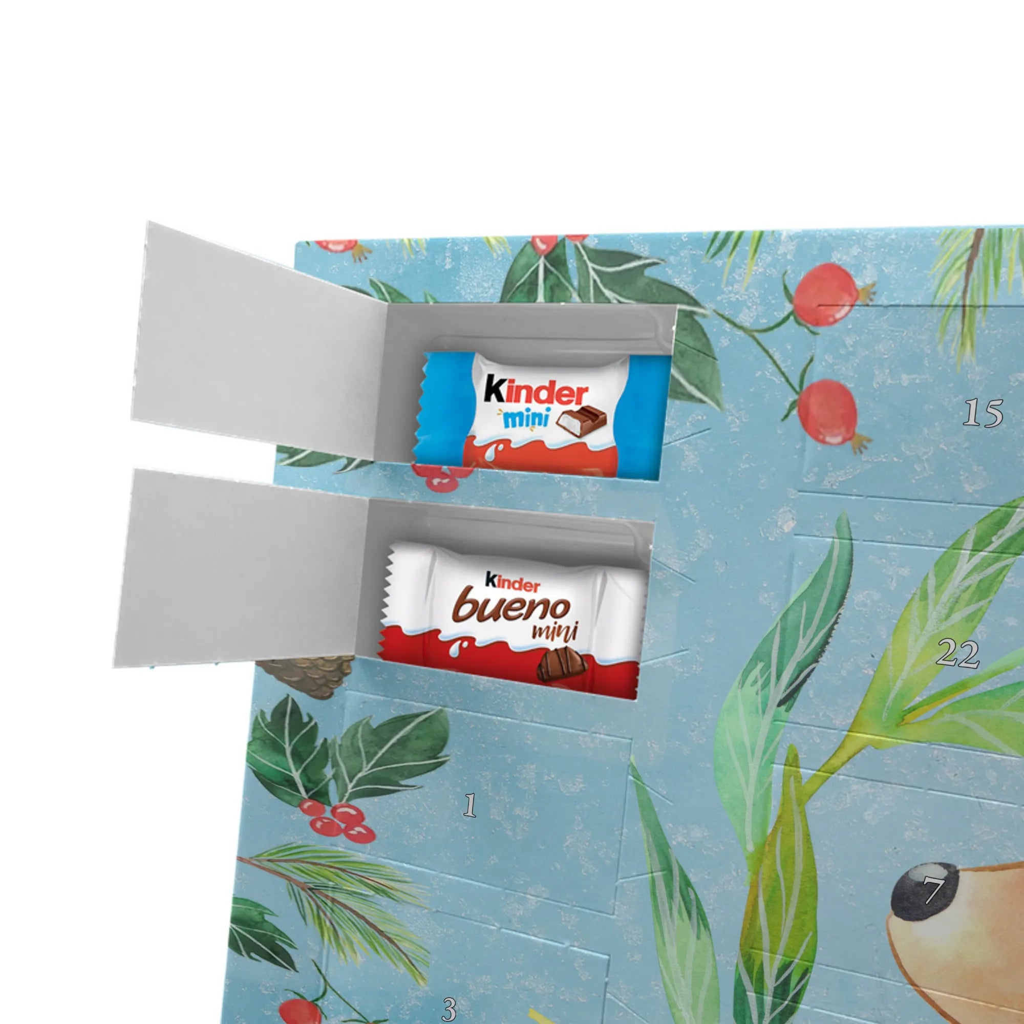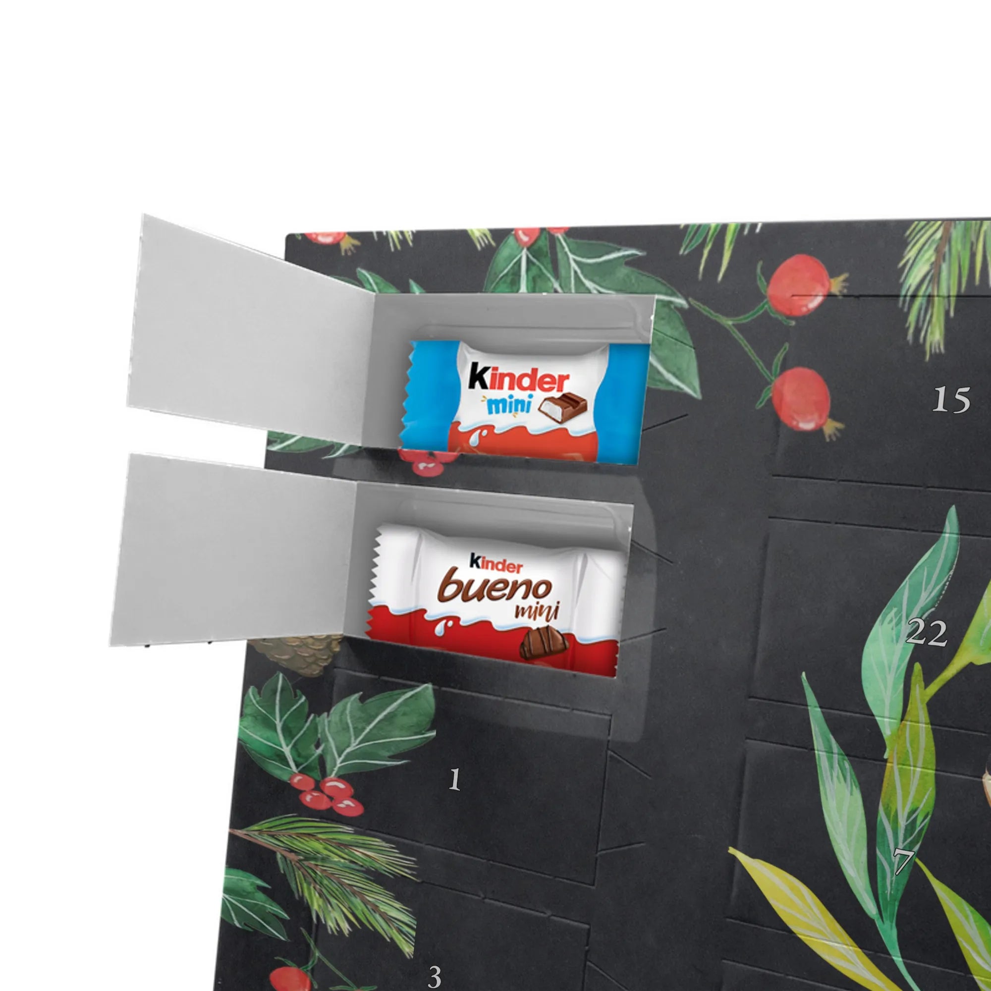 Schoko Adventskalender von Mr. & Mrs. Panda – die charmante Art, sich oder anderen die Adventszeit zu versüßen. Der Kalender ist bedruckt mit wunderschönen Motiven & Sprüchen von Mr. & Mrs. Panda und nicht personalisierbar. Wir legen Wert auf brillante Druckqualität mit seidenmatter Oberflächenveredelung sowie auf bedruckte Seitenflächen für ein stimmiges Gesamtbild. Maße: 355 mm x 245 mm x 11 mm. Besonders praktisch: kann aufgehängt oder aufgestellt werden und passt so in jede Wohnung. Gefüllt mit Markenname Schokolade: Adventskalender gefüllt mit kinder® Schokolade. Inhalt: kinder® Schoko-Bons, kinder® Bueno mini und kinder® Schokolade mini. Die 24 Türchen sind mit kleinen Schoko-Überraschungen bestückt und schaffen jeden Tag Vorfreude. Ob als Geschenk für Kinder, Partner oder als nette Aufmerksamkeit für Kolleginnen und Kollegen – dieser Kalender macht Freude. Robust, schön gestaltet und sofort einsatzbereit für die süßeste Zeit des Jahres!