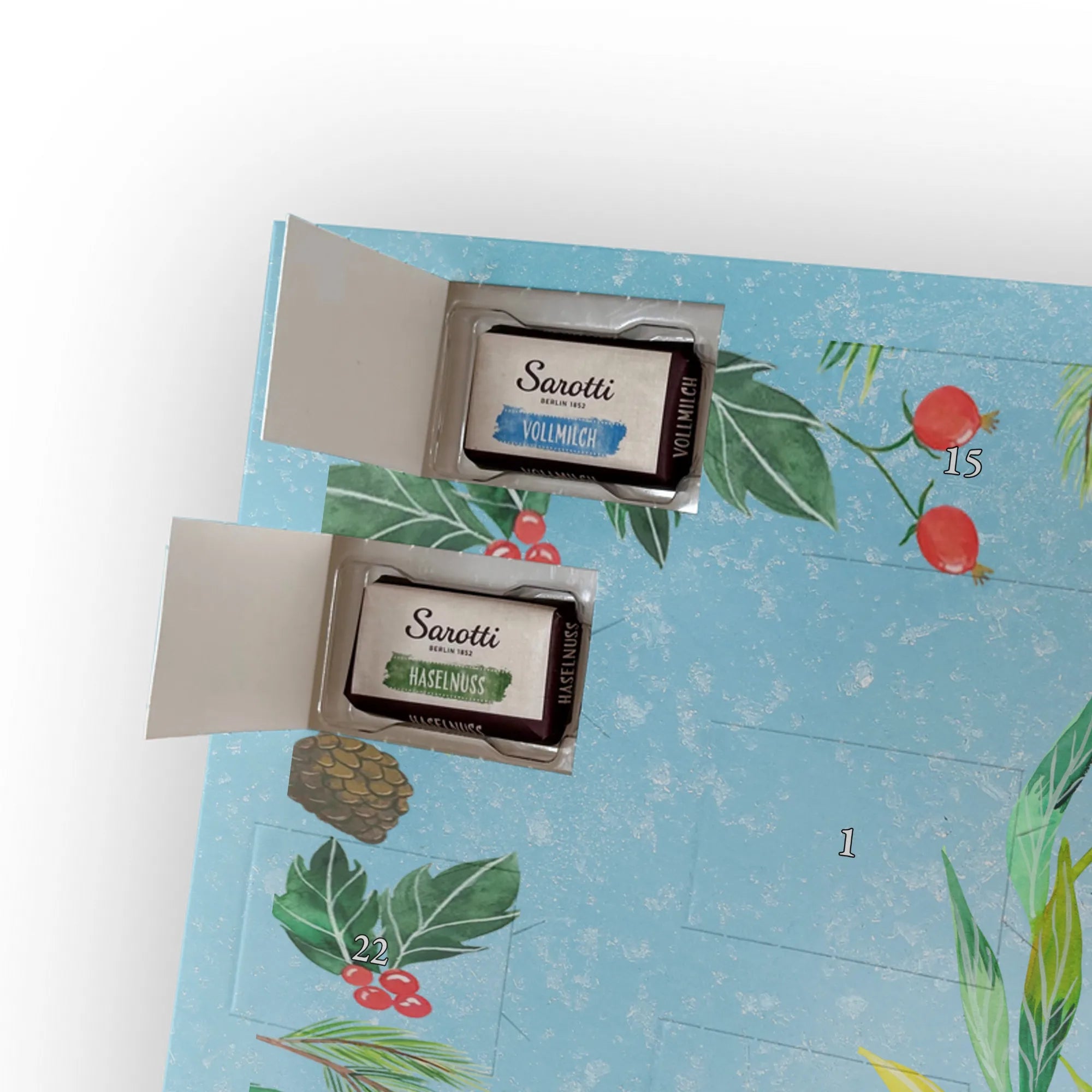 Hol dir den Adventszauber: Verwöhne dich oder deine Liebsten mit unserem liebevoll bedruckten Schoko Adventskalender – jetzt entdecken und Vorfreude schenken!