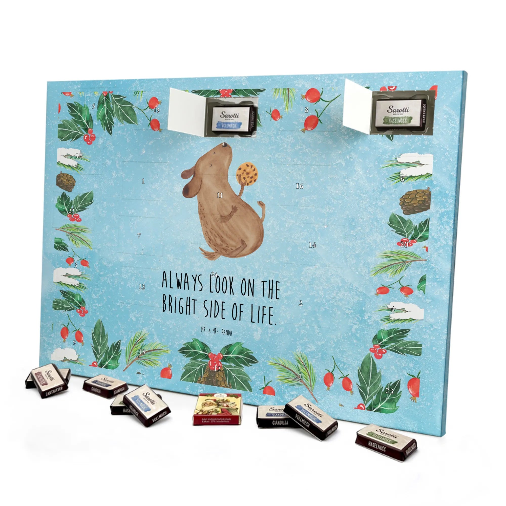 Mach die Adventszeit süßer: Entdecke unseren bedruckten Schokoladen Adventskalender von Mr. & Mrs. Panda und verschenke täglich Freude!
