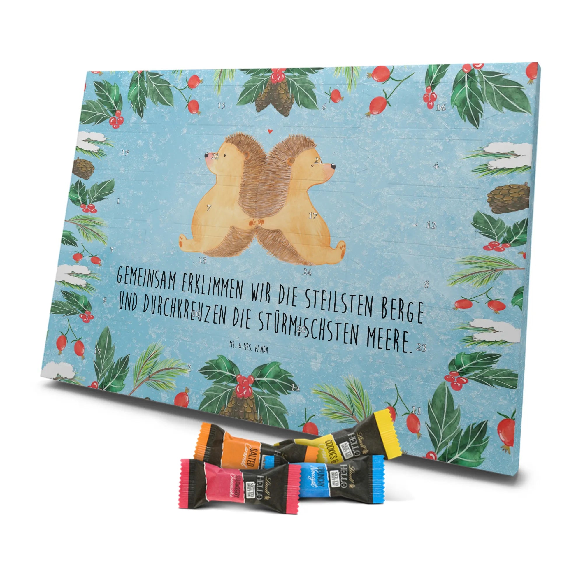 Adventskalender Igel händchenhaltend - Classic - mit Spruch - Eisblau