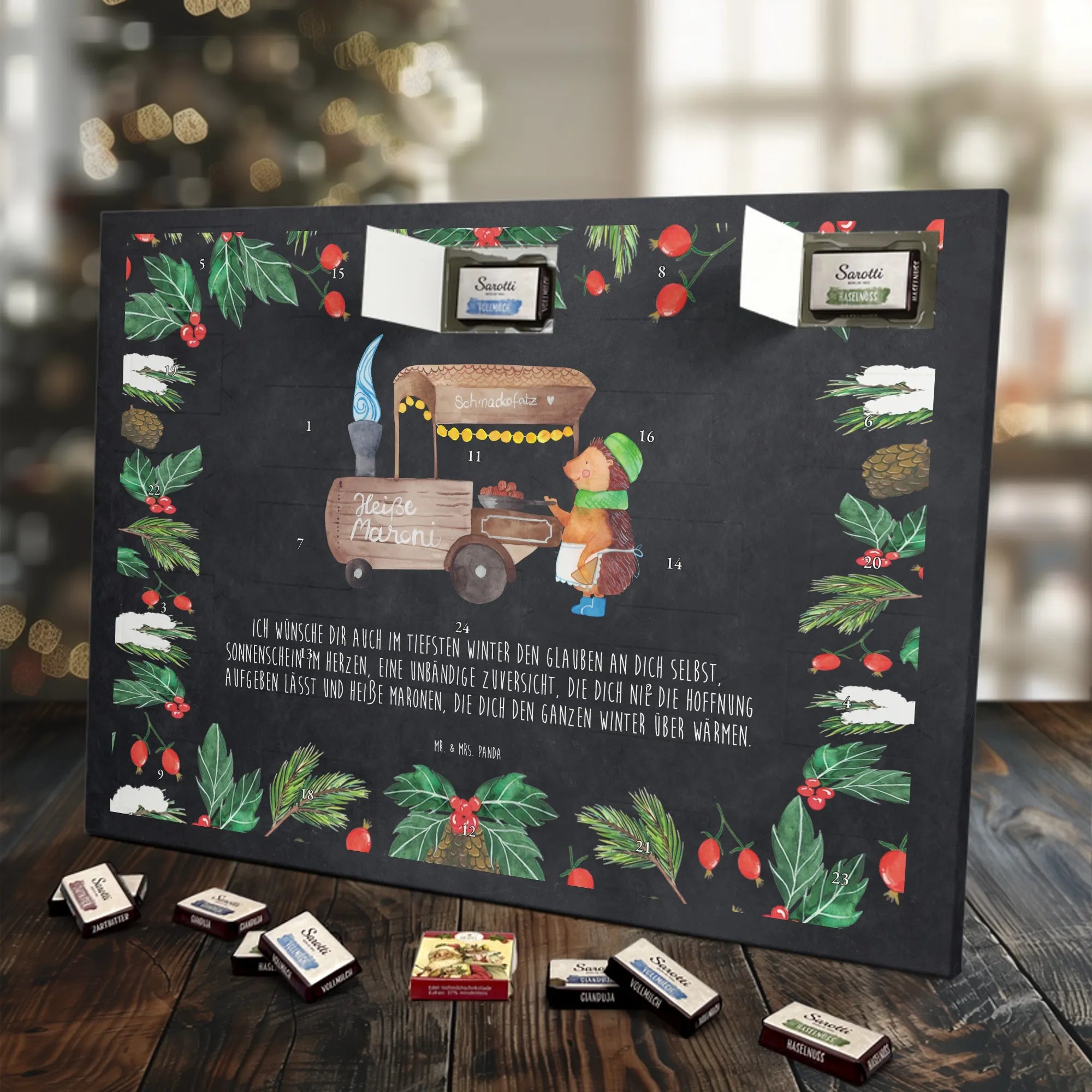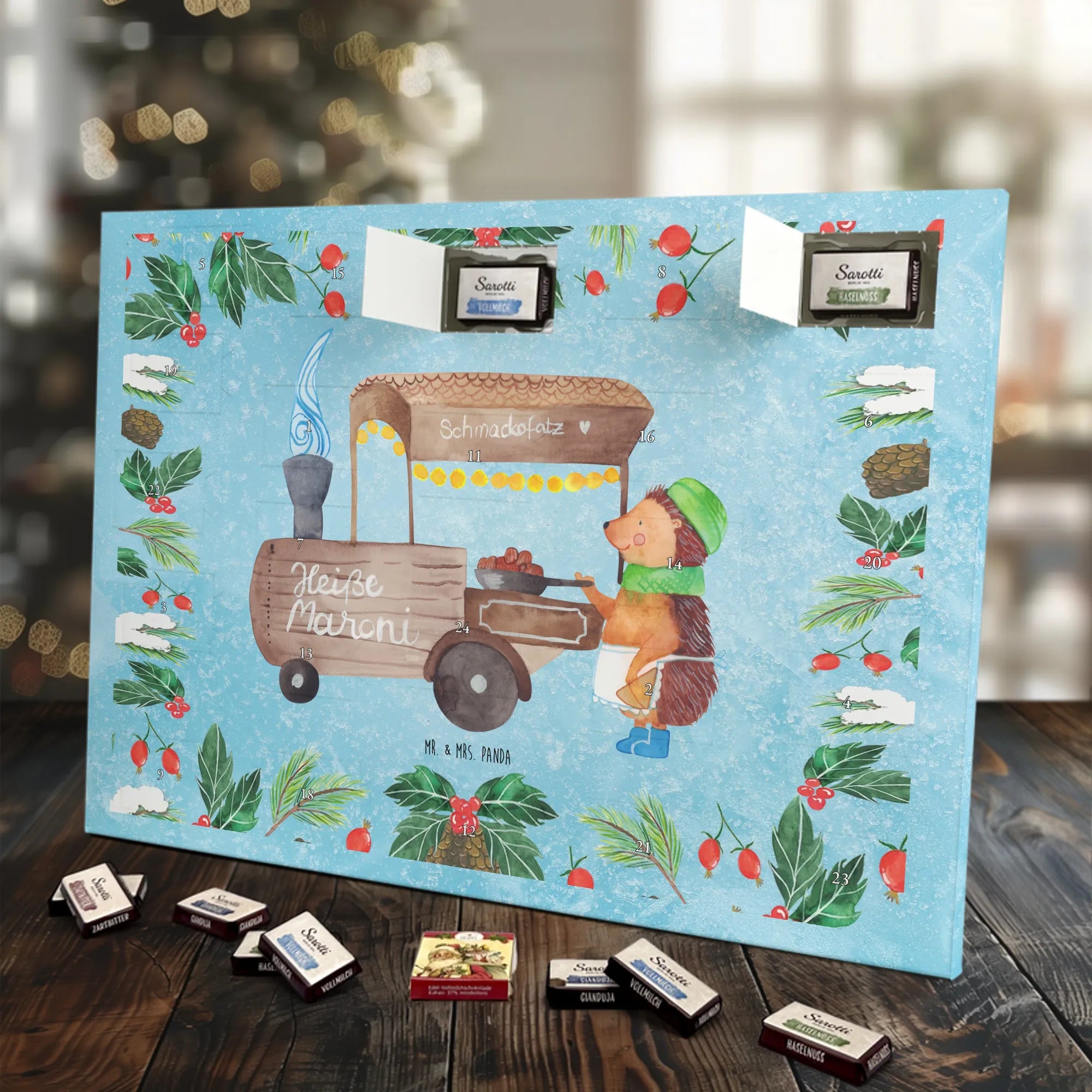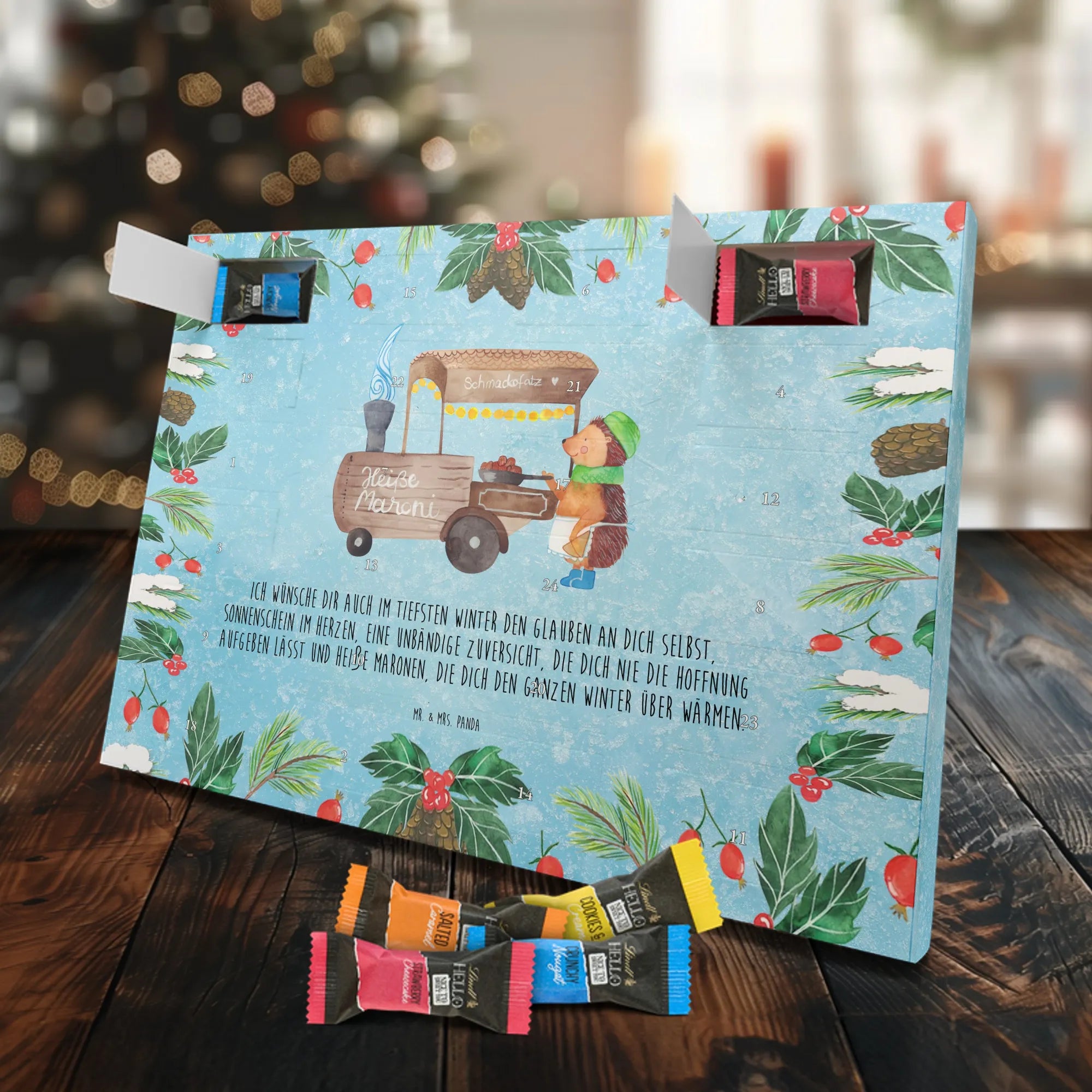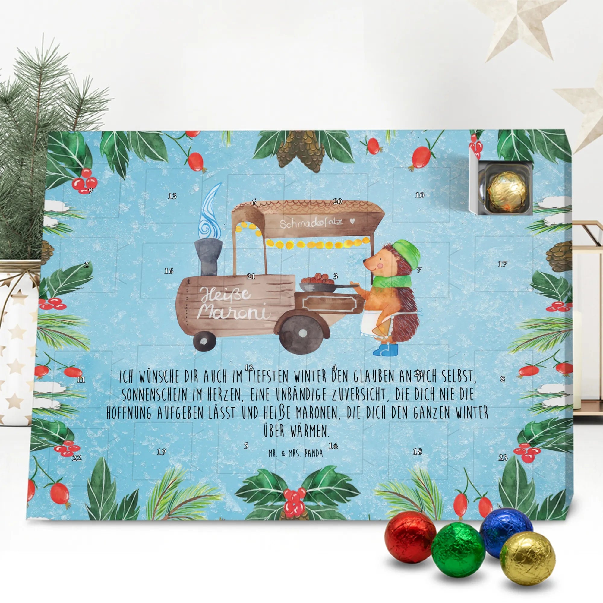 weihnachtskalender schoko Igel Maronen - Classic - mit Spruch - Eisblau