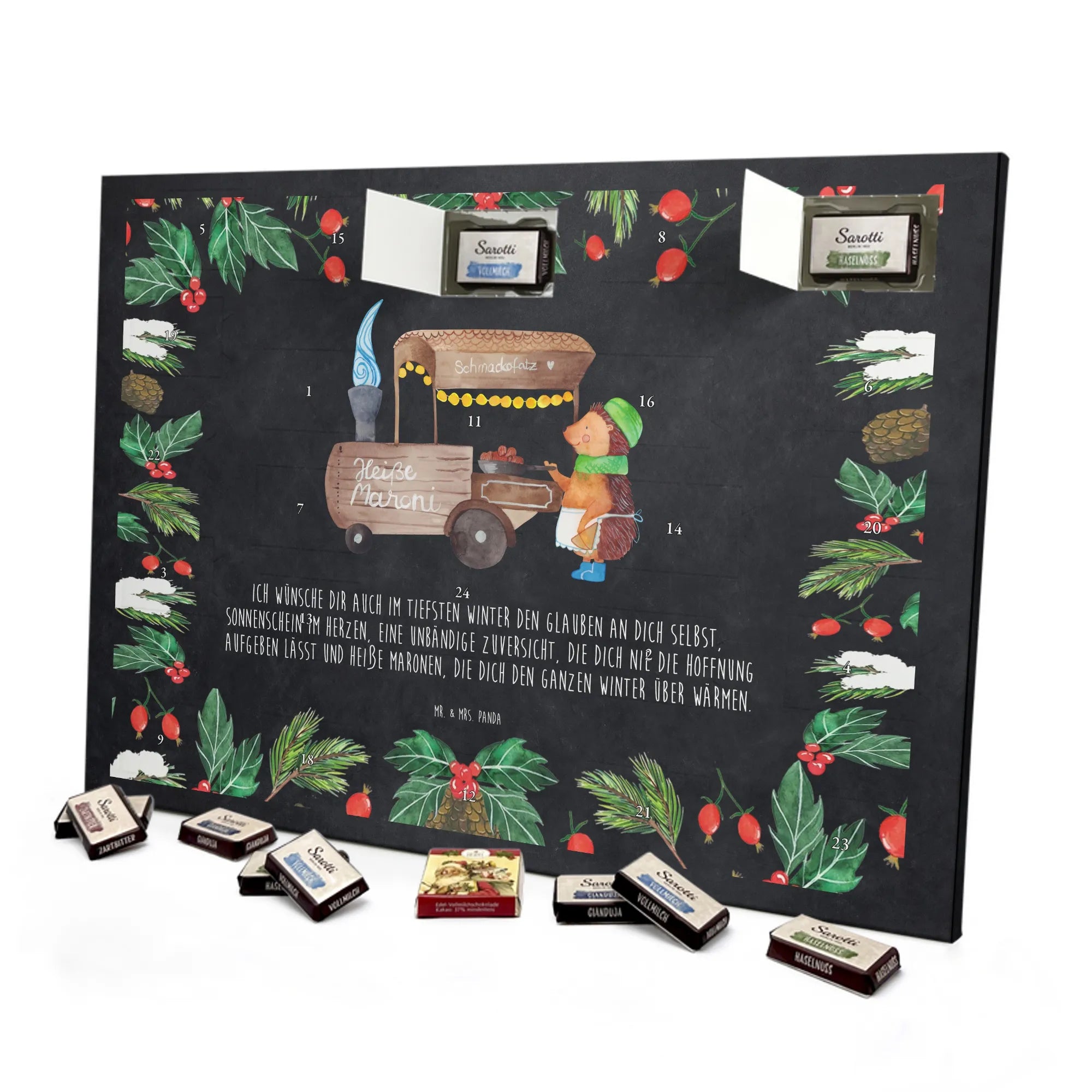 Wunderschöner Schoko Adventskalender von Mr. & Mrs. Panda – perfekt für alle, die die Vorweihnachtszeit mit süßen Momenten feiern möchten. Unser Adventskalender ist liebevoll bedruckt mit zauberhaften Motiven und freundlichen Sprüchen von Mr. & Mrs. Panda. Die brillante Druckqualität und die seidenmatte Oberflächenveredelung lassen die Farben sanft und edel wirken, während die bedruckten Seitenflächen den besonderen Look abrunden. Der Kalender ist nicht personalisierbar, dafür aber vielseitig: Du kannst ihn aufstellen oder ganz einfach an der Wand aufhängen. Gefüllt ist der Kalender mit hochwertiger Markenschokolade: 24 einzeln verpackte Schokoladentäfelchen in vier leckeren Geschmacksrichtungen von Sarotti® und Confiserie Heidel® – Vollmilch, Nougat, Zartbitter und Haselnuss. Insgesamt enthält der Kalender 107 g Markenschokolade von Sarotti® und Confiserie Heidel®. Die kompakte Bauweise macht ihn zum dekorativen Hingucker auf dem Sideboard, auf dem Esstisch oder als besonderes Geschenk für Freundinnen, Familie und liebe Menschen. Maße: 355 mm x 245 mm x 11 mm. Mit diesem Schoko Adventskalender schenkst du kleine Freuden und zauberhafte Vorfreude auf die schönsten Tage des Jahres – ganz im gemütlichen Stil von Mr. & Mrs. Panda.