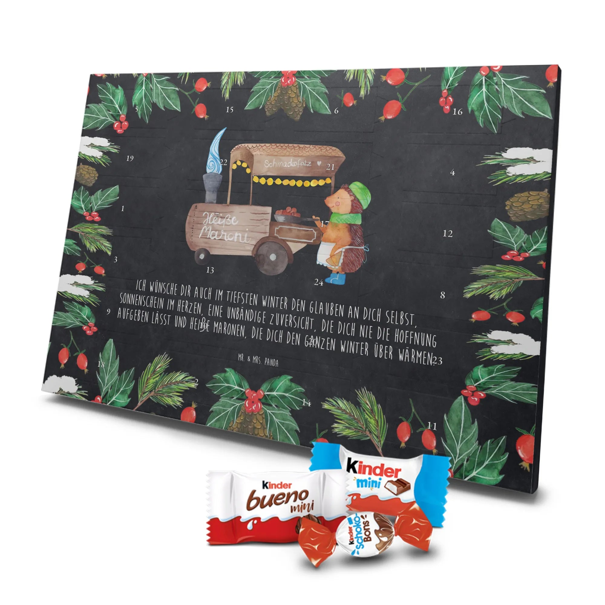 Schoko Adventskalender von Mr. & Mrs. Panda – die charmante Art, sich oder anderen die Adventszeit zu versüßen. Der Kalender ist bedruckt mit wunderschönen Motiven & Sprüchen von Mr. & Mrs. Panda und nicht personalisierbar. Wir legen Wert auf brillante Druckqualität mit seidenmatter Oberflächenveredelung sowie auf bedruckte Seitenflächen für ein stimmiges Gesamtbild. Maße: 355 mm x 245 mm x 11 mm. Besonders praktisch: kann aufgehängt oder aufgestellt werden und passt so in jede Wohnung. Gefüllt mit Markenname Schokolade: Adventskalender gefüllt mit kinder® Schokolade. Inhalt: kinder® Schoko-Bons, kinder® Bueno mini und kinder® Schokolade mini. Die 24 Türchen sind mit kleinen Schoko-Überraschungen bestückt und schaffen jeden Tag Vorfreude. Ob als Geschenk für Kinder, Partner oder als nette Aufmerksamkeit für Kolleginnen und Kollegen – dieser Kalender macht Freude. Robust, schön gestaltet und sofort einsatzbereit für die süßeste Zeit des Jahres!