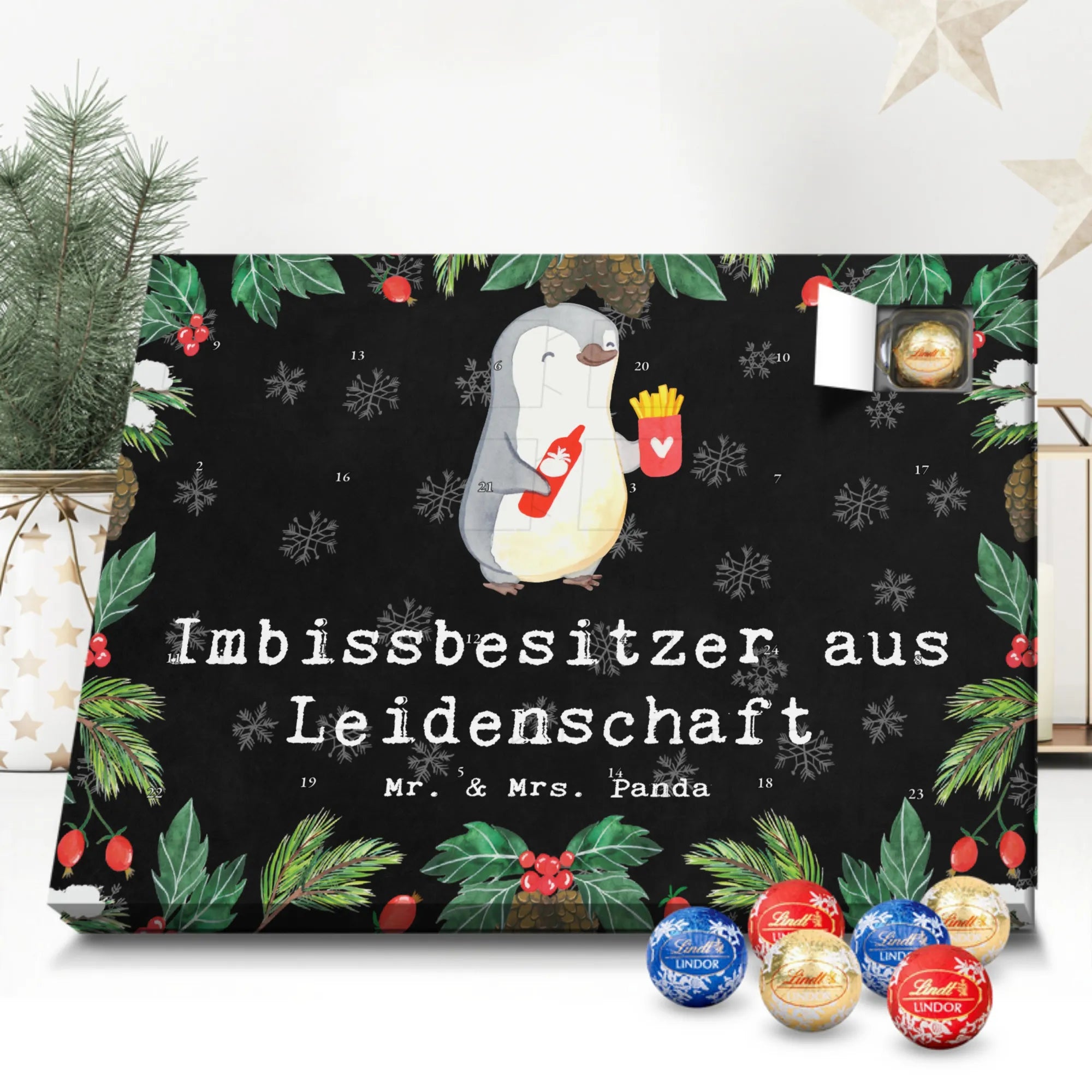 🐼 Schoko Adventskalender mit Lindt Lindor, 24 Kugeln, seidenmatter Druck, nicht personalisierbar.