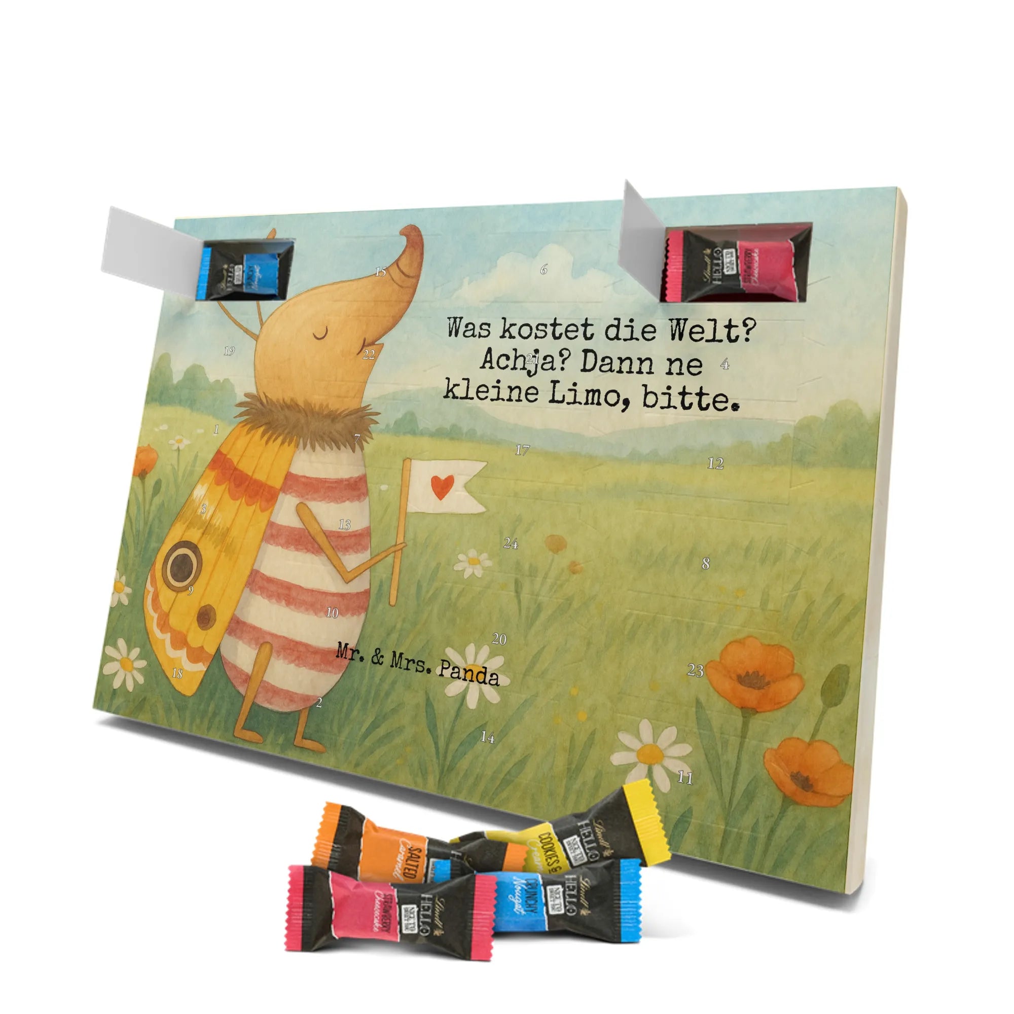 Adventskalender Nachtfalter Fähnchen Design - Lindt HELLO - mit Spruch