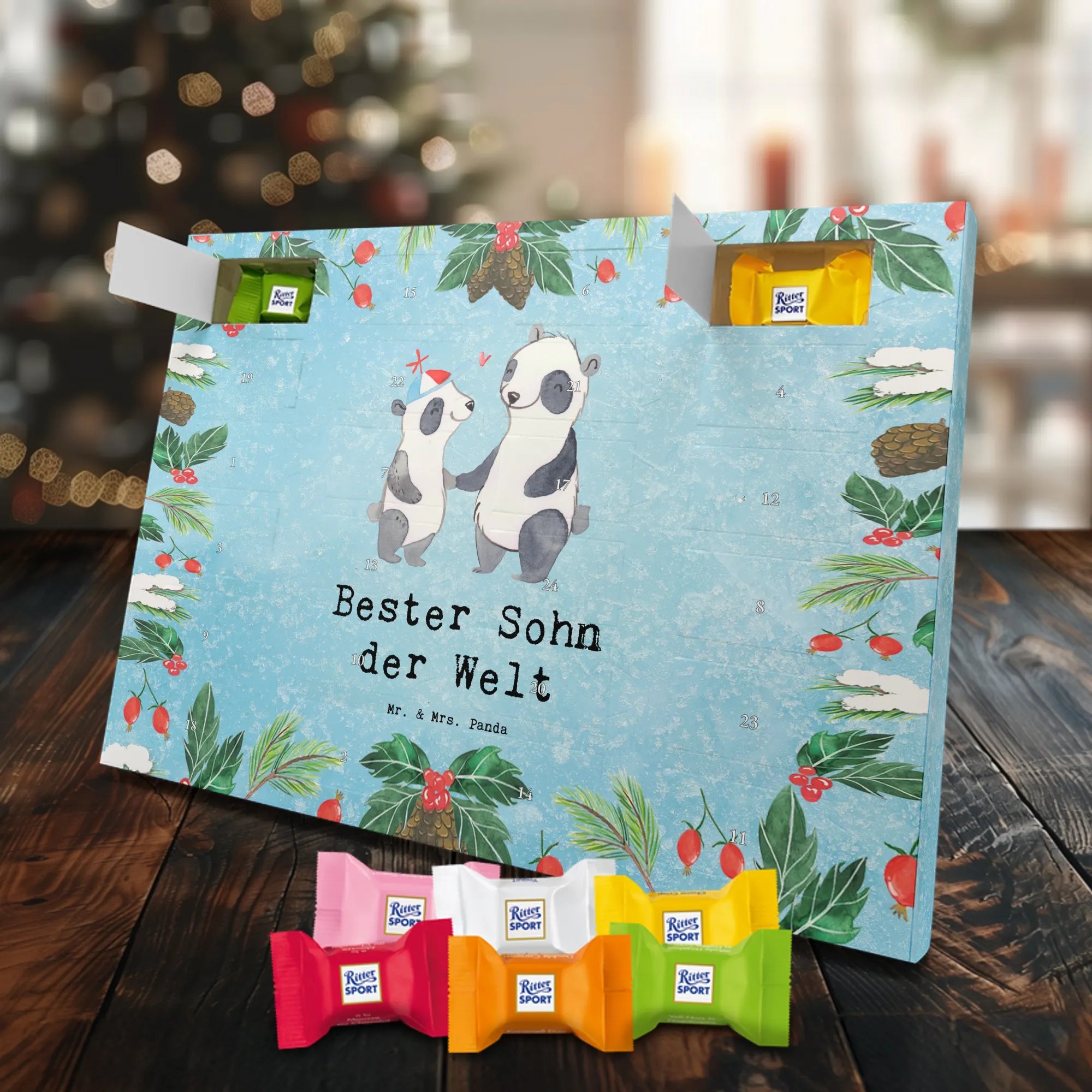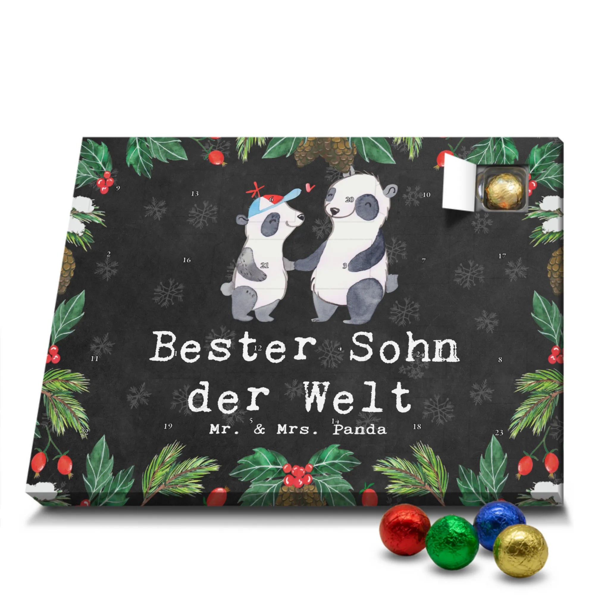 🐼 Schoko-Adventskalender: Liebevolles Design, seidenmatt, brillanter Druck – ein Hingucker.