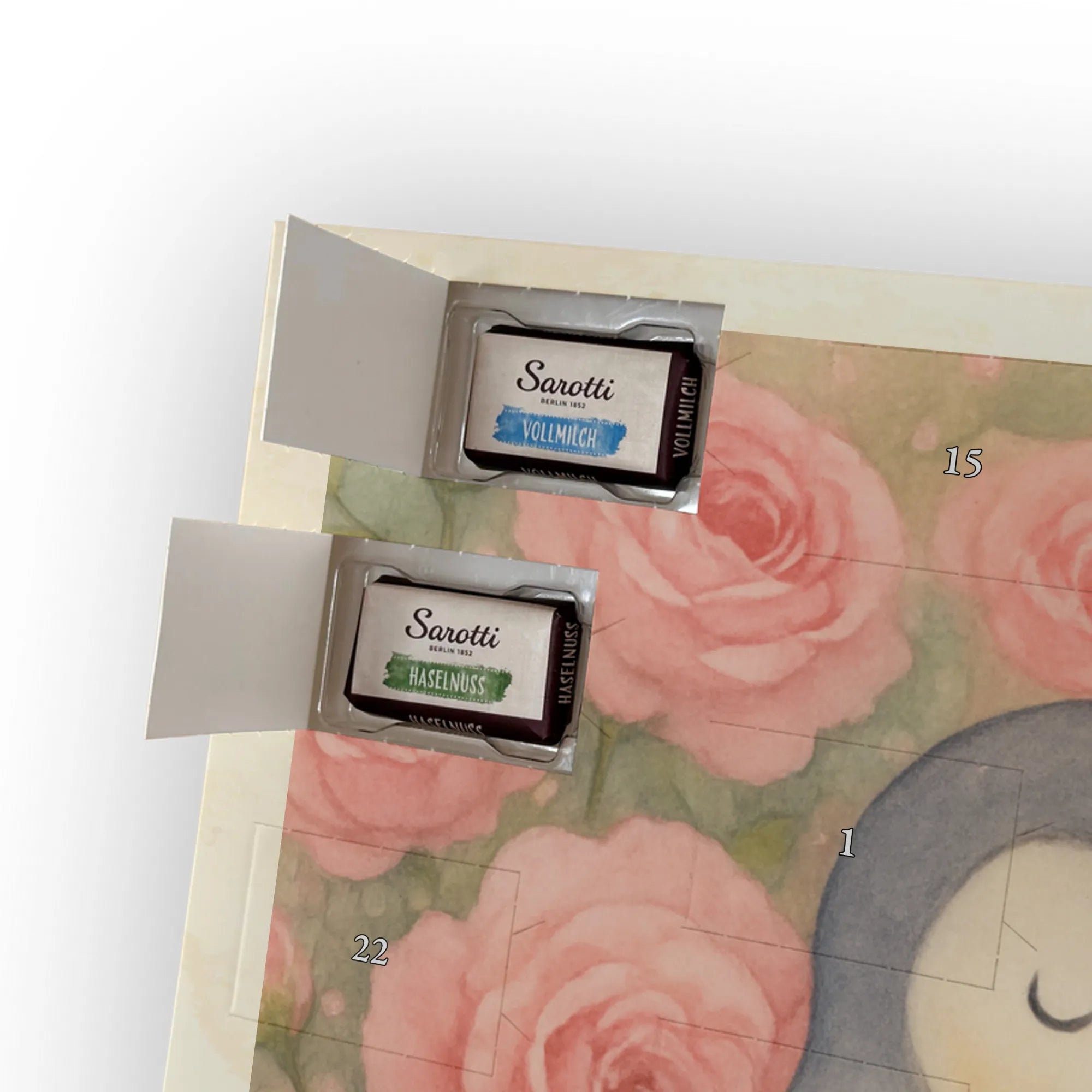 🐼 Adventskalender mit Schokolade: Liebevoll bedruckt, seidenmatter Lack, edles Design.
