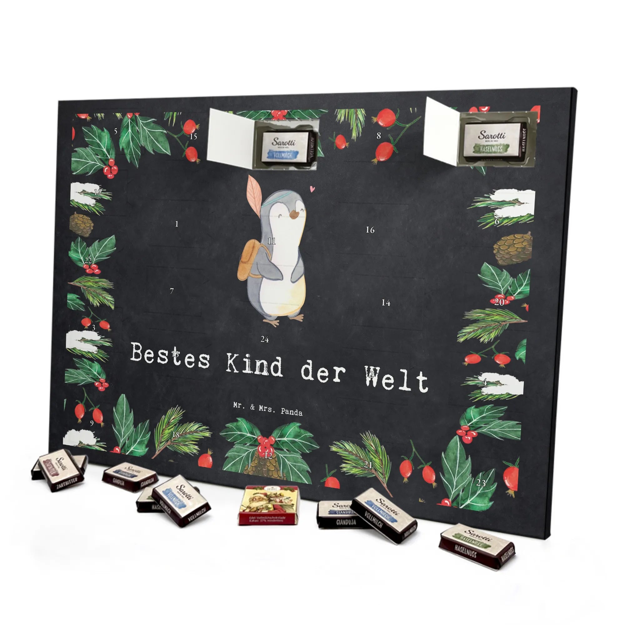 Mach die Adventszeit süßer: Entdecke unseren bedruckten Schokoladen Adventskalender von Mr. & Mrs. Panda und verschenke täglich Freude!