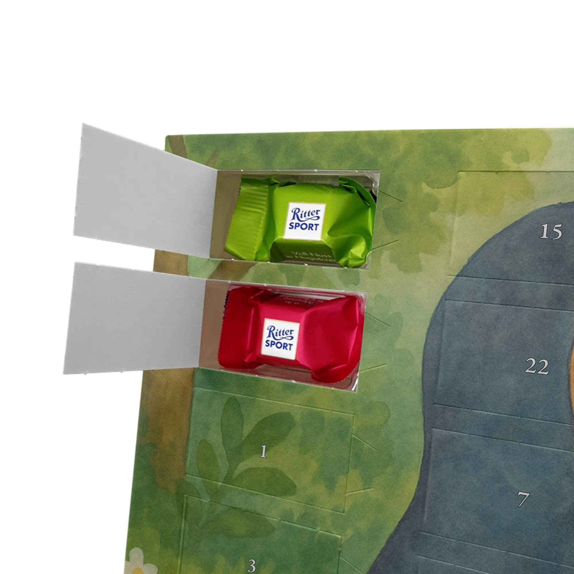 🐼 24 Türchen gefüllt mit Ritter Sport Schokowürfeln – perfekte Adventsüberraschungen.