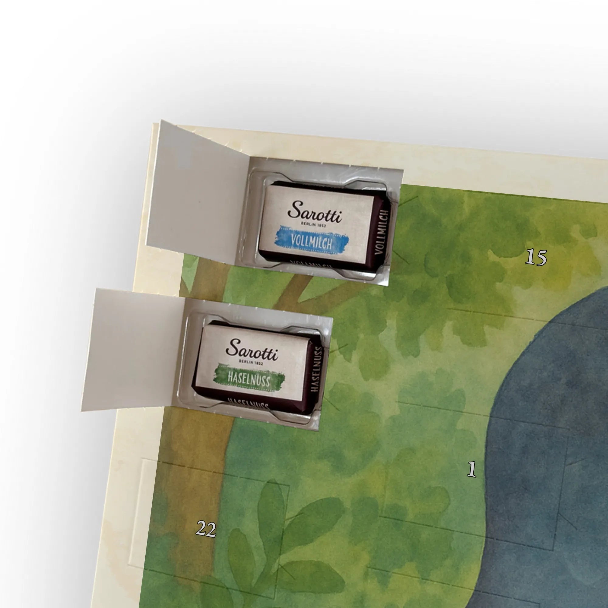🐼 Schoko-Adventskalender: Liebevolles Design, seidenmatt, brillanter Druck – ein Hingucker.