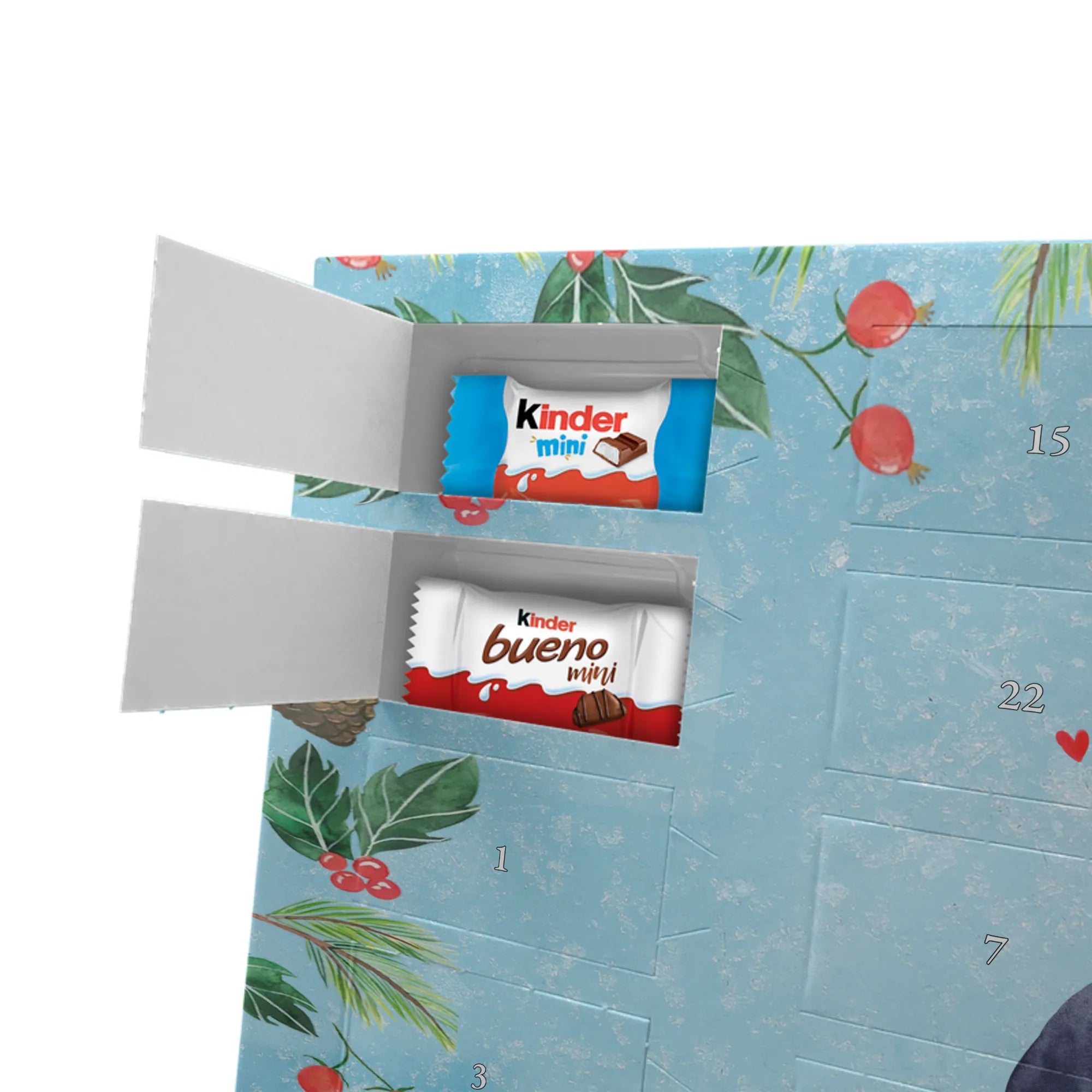Adventskalender mit Schokolade – liebevoll gestaltet von Mr. & Mrs. Panda. Dieser niedliche Kalender ist bedruckt mit wunderschönen Motiven & Sprüchen von Mr. & Mrs. Panda und trotzdem nicht personalisierbar. Du bekommst brillante Druckqualität mit seidenmatter Oberflächenveredelung sowie bedruckte Seitenflächen, die dem Kalender ein hochwertiges Finish verleihen. Maße: 355 mm x 245 mm x 11 mm. Ein tolles Extra: kann aufgehängt oder aufgestellt werden, sodass du ihn flexibel platzieren kannst. Gefüllt mit Markenname Schokolade: Adventskalender gefüllt mit kinder® Schokolade. Inhalt: kinder® Schoko-Bons, kinder® Bueno mini und kinder® Schokolade mini. Die 24 Türchen sind liebevoll befüllt und sorgen jeden Tag für ein Lächeln – ideal für Kinder, Paare oder als kleines Geschenk für Freunde. Robust und dekorativ zugleich, bringt dieser Adventskalender süße Vorfreude in dein Zuhause. Verschenke oder genieße eine adventliche Zeit voller kleiner, schokoladiger Überraschungen!
