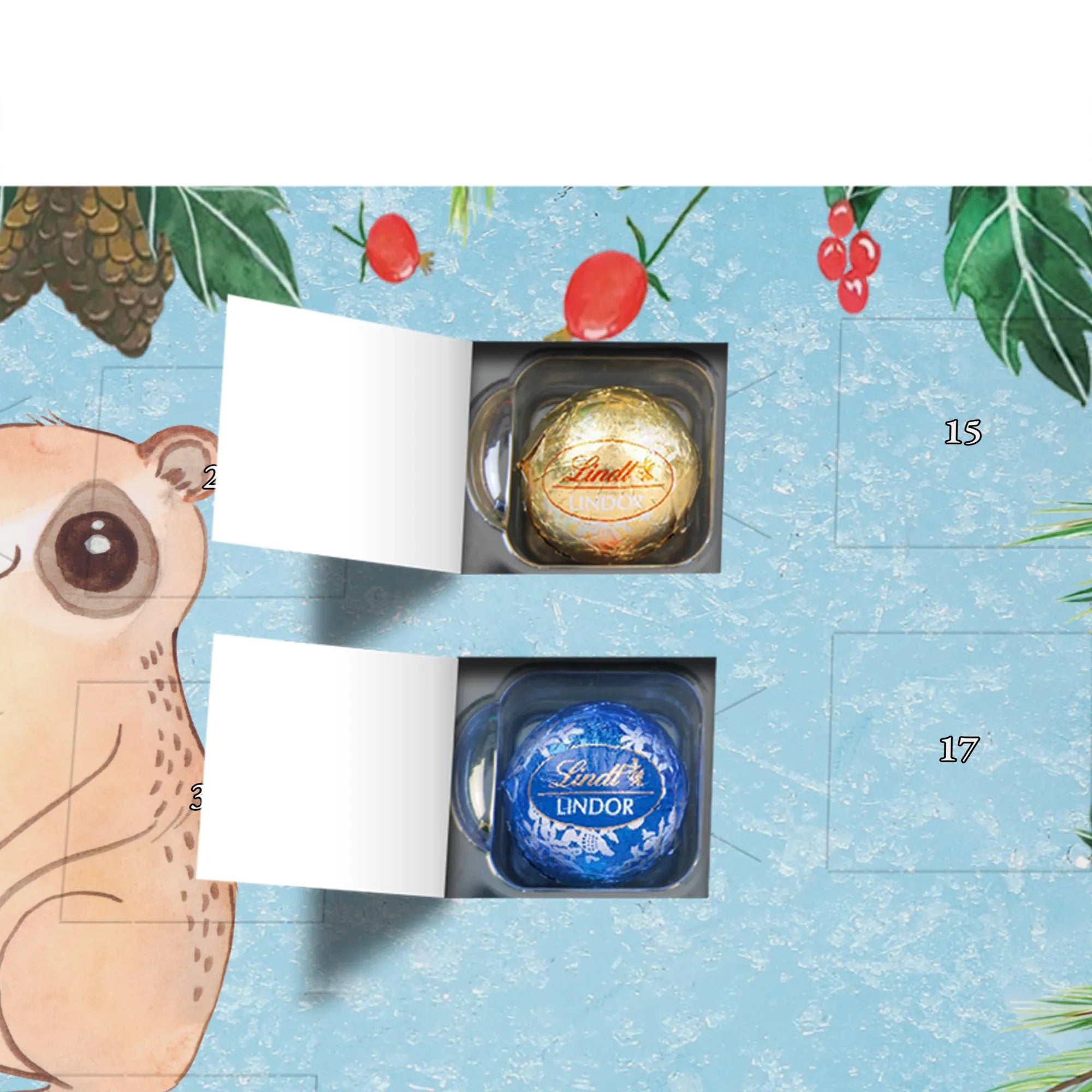 Der Adventskalender mit Schokolade von Mr. & Mrs. Panda ist ein echter Blickfang und eine köstliche Überraschung für die Vorweihnachtszeit. Er ist bedruckt mit wunderschönen Motiven & Sprüchen von Mr. & Mrs. Panda und nicht personalisierbar – deshalb perfekt als unkompliziertes Geschenk. Die brillante Druckqualität und die seidenmatte Oberflächenveredelung sorgen für eine hochwertige Optik, ergänzt durch bedruckte Seitenflächen. Maße: 233 mm x 178 mm x 24 mm. Besonderheit: kann aufgehängt oder aufgestellt werden, ganz wie es dir gefällt. Gefüllt mit Lindt Lindor: 24 einzeln verpackte Markenschokoladen Kugeln in den Sorten Vollmilch, Feinherb und Weiße Schokolade bieten täglich neue Geschmackserlebnisse. Zutaten: Zucker, pflanzliches Fett (Kokosnuss, Palmkern), Kakaobutter, Vollmilchpulver, Kakaomasse, Milchzucker, Magermilchpulver, Butterreinfett, Emulgator (Sojalecithin), Gerstenmalzextrakt, Aromen. Besondere Hinweise: Kann Haselnüsse und Mandeln enthalten. Ob als Mitbringsel, Geschenk oder zum Selbstverwöhnen – dieser Adventskalender vereint schönes Design mit zarter Markenschokolade.