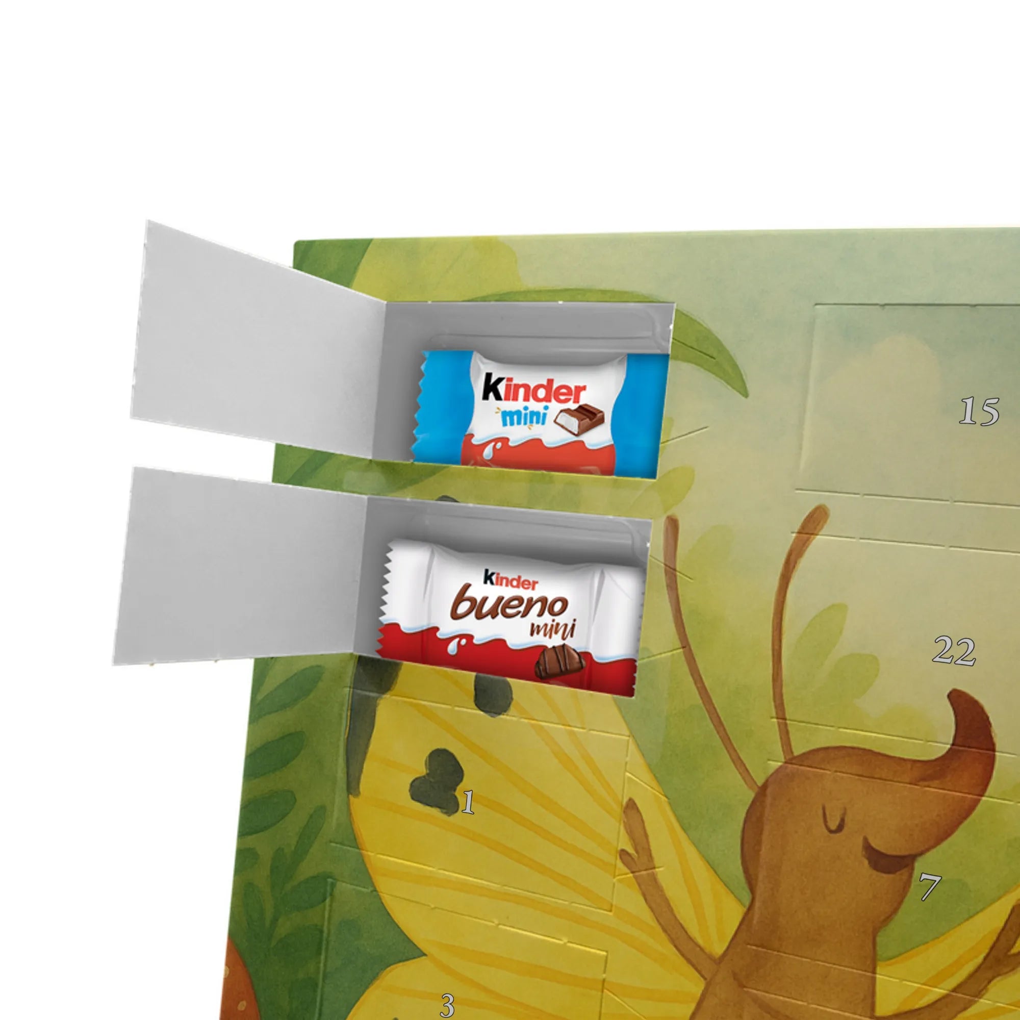 Adventskalender mit Schokolade – liebevoll gestaltet von Mr. & Mrs. Panda. Dieser niedliche Kalender ist bedruckt mit wunderschönen Motiven & Sprüchen von Mr. & Mrs. Panda und trotzdem nicht personalisierbar. Du bekommst brillante Druckqualität mit seidenmatter Oberflächenveredelung sowie bedruckte Seitenflächen, die dem Kalender ein hochwertiges Finish verleihen. Maße: 355 mm x 245 mm x 11 mm. Ein tolles Extra: kann aufgehängt oder aufgestellt werden, sodass du ihn flexibel platzieren kannst. Gefüllt mit Markenname Schokolade: Adventskalender gefüllt mit kinder® Schokolade. Inhalt: kinder® Schoko-Bons, kinder® Bueno mini und kinder® Schokolade mini. Die 24 Türchen sind liebevoll befüllt und sorgen jeden Tag für ein Lächeln – ideal für Kinder, Paare oder als kleines Geschenk für Freunde. Robust und dekorativ zugleich, bringt dieser Adventskalender süße Vorfreude in dein Zuhause. Verschenke oder genieße eine adventliche Zeit voller kleiner, schokoladiger Überraschungen!
