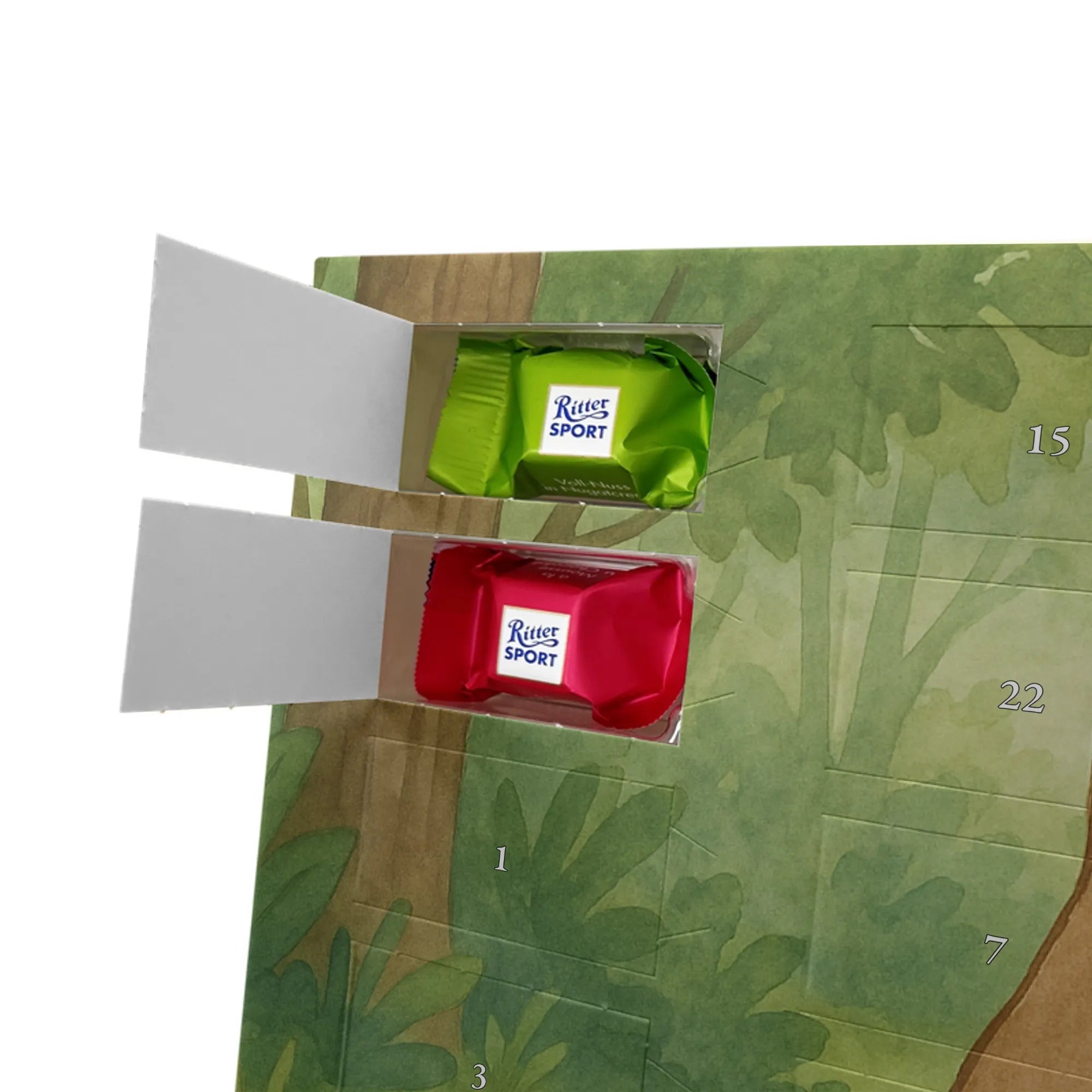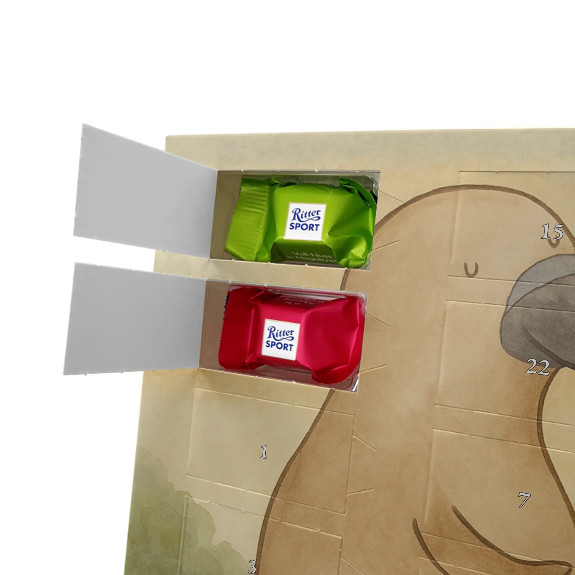 🐼 24 Türchen gefüllt mit Ritter Sport Schokowürfeln – perfekte Adventsüberraschungen.