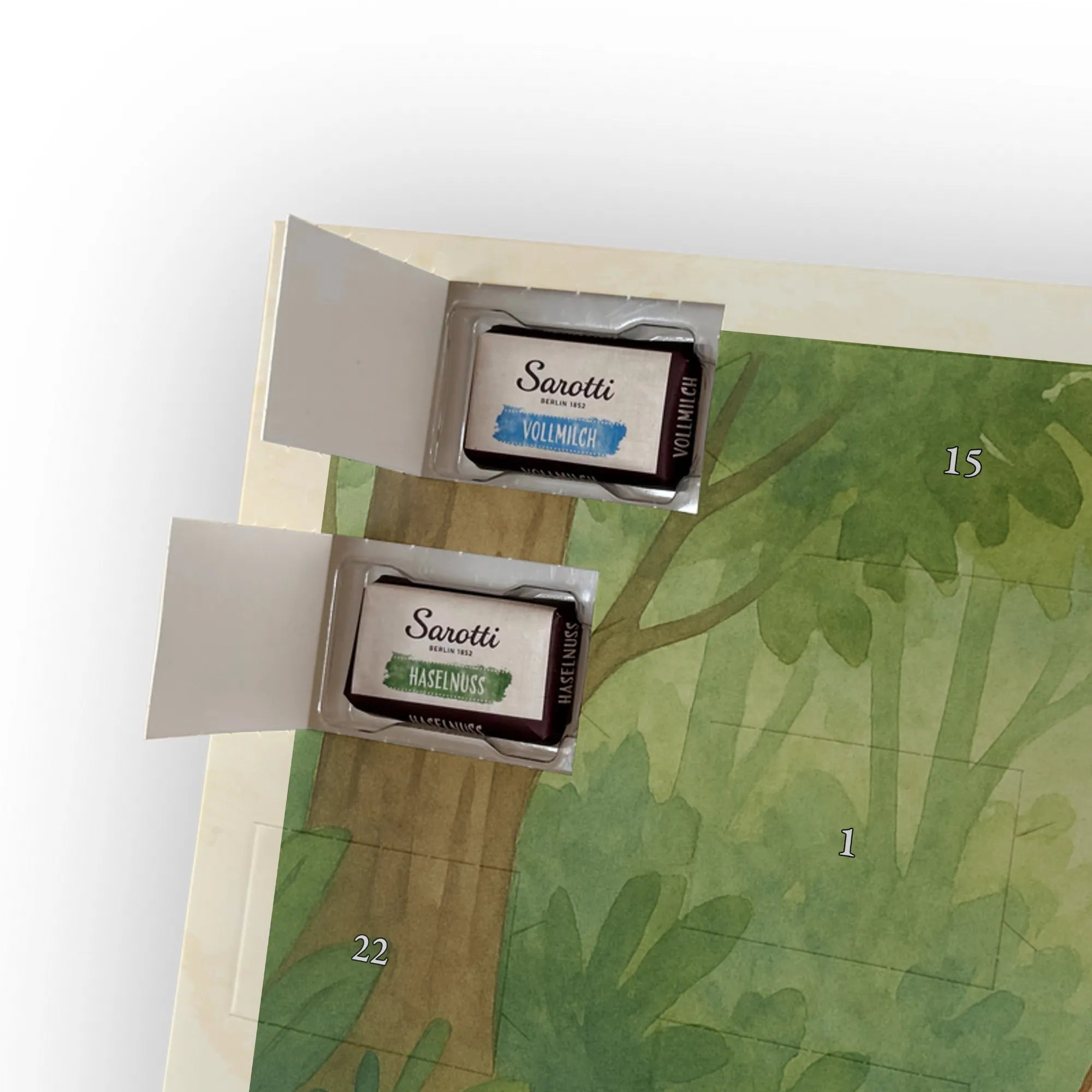 🐼 ADVENTSKALENDER MIT SCHOKOLADE: Liebevolle Illustrationen, seidenmatter Druck, 325×225×27 mm.