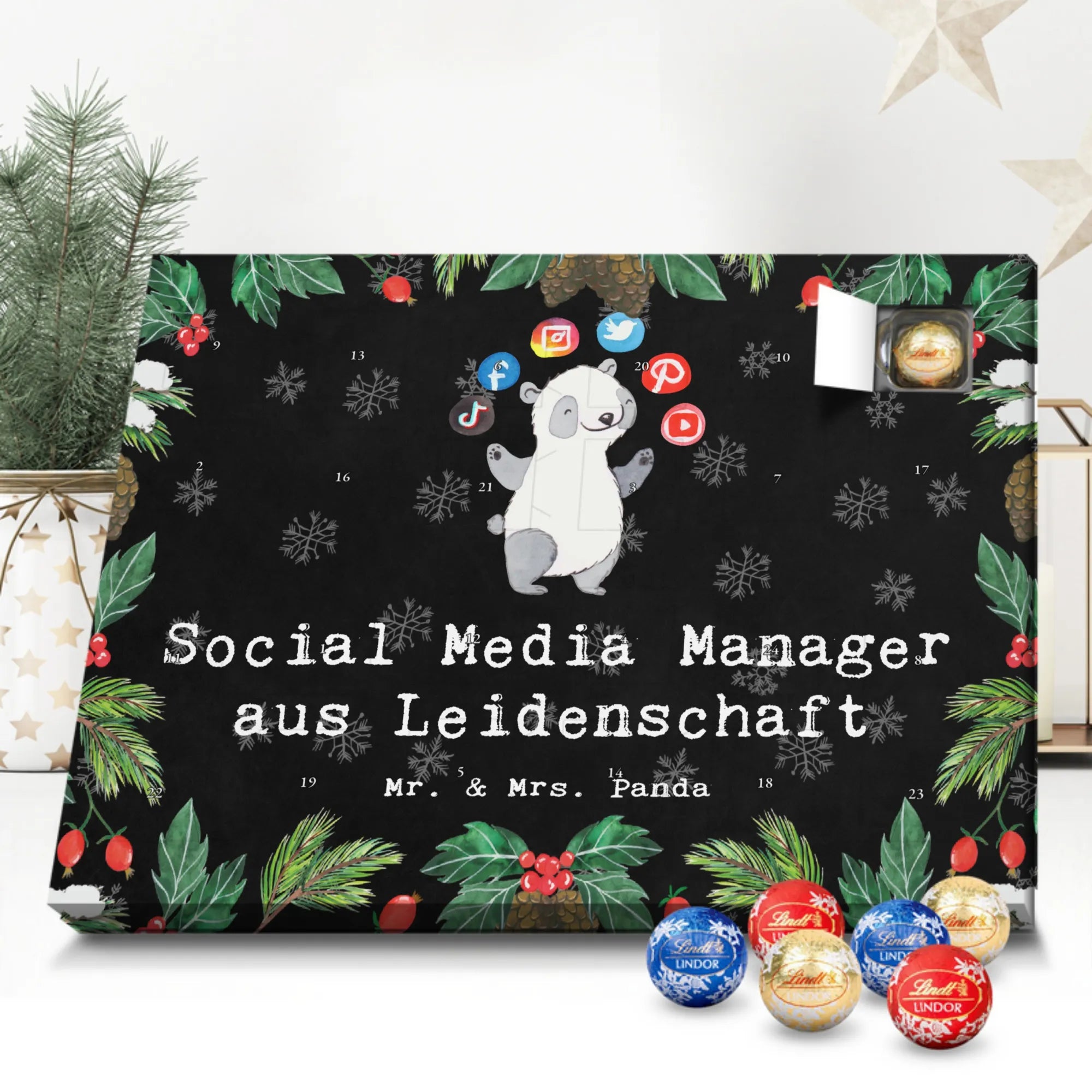 🐼 Adventskalender Schokolade mit 24 Lindt Lindor Kugeln, ideal als Geschenk.