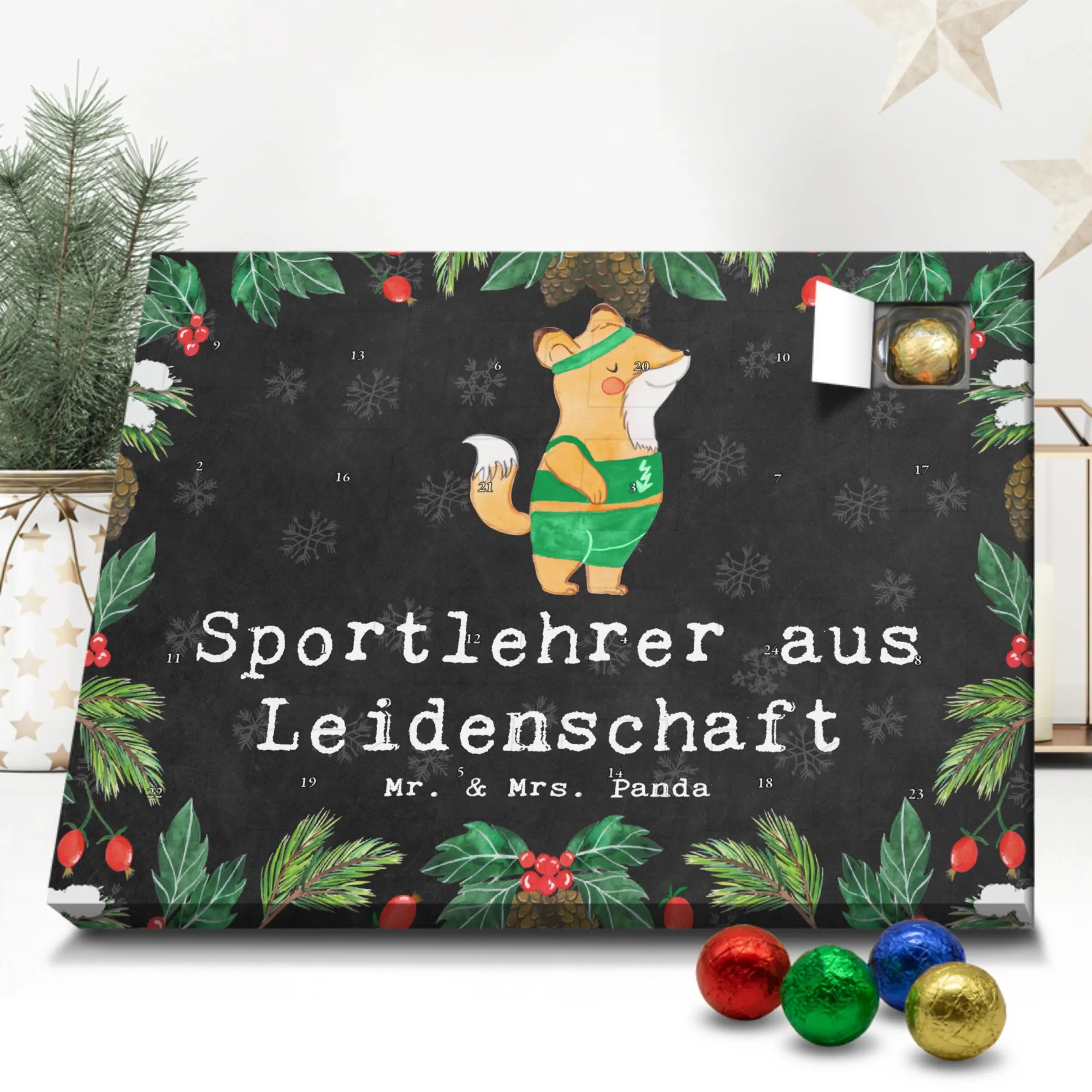 Wunderschöner Adventskalender mit Schokolade von Mr. & Mrs. Panda – für alle, die Advent und Design lieben. Dieser Adventskalender mit Schokolade ist liebevoll bedruckt mit wunderschönen Motiven & Sprüchen von Mr. & Mrs. Panda und ist nicht personalisierbar, aber mit viel Liebe zum Detail gefertigt. Brillante Druckqualität mit seidenmatter Oberflächenveredelung sorgt für einen edlen Look, und die bedruckten Seitenflächen geben dem Kalender eine besondere Optik. Maße: 233 mm x 178 mm x 24 mm. Dank seiner stabilen Verarbeitung kannst du ihn aufstellen oder ganz einfach aufhängen – Besonderheit: kann aufgehängt oder aufgestellt werden. Gefüllt mit MARKENNAMEN Schokolade und leckeren Schokoladenkugeln, bringt er jeden Tag ein kleines Glückserlebnis. Wichtige Hinweise: (Kann Spuren von Haselnüssen, Mandeln, Gluten und Soja enthalten!), bitte kühl und trocken lagern. Ob als Geschenk, Mitbringsel oder Adventsdeko – dieser Kalender zaubert ein Lächeln und sorgt für gemütliche Vorfreude. Viel Freude beim Entdecken der süßen Überraschungen wünscht dir Mr. & Mrs. Panda!