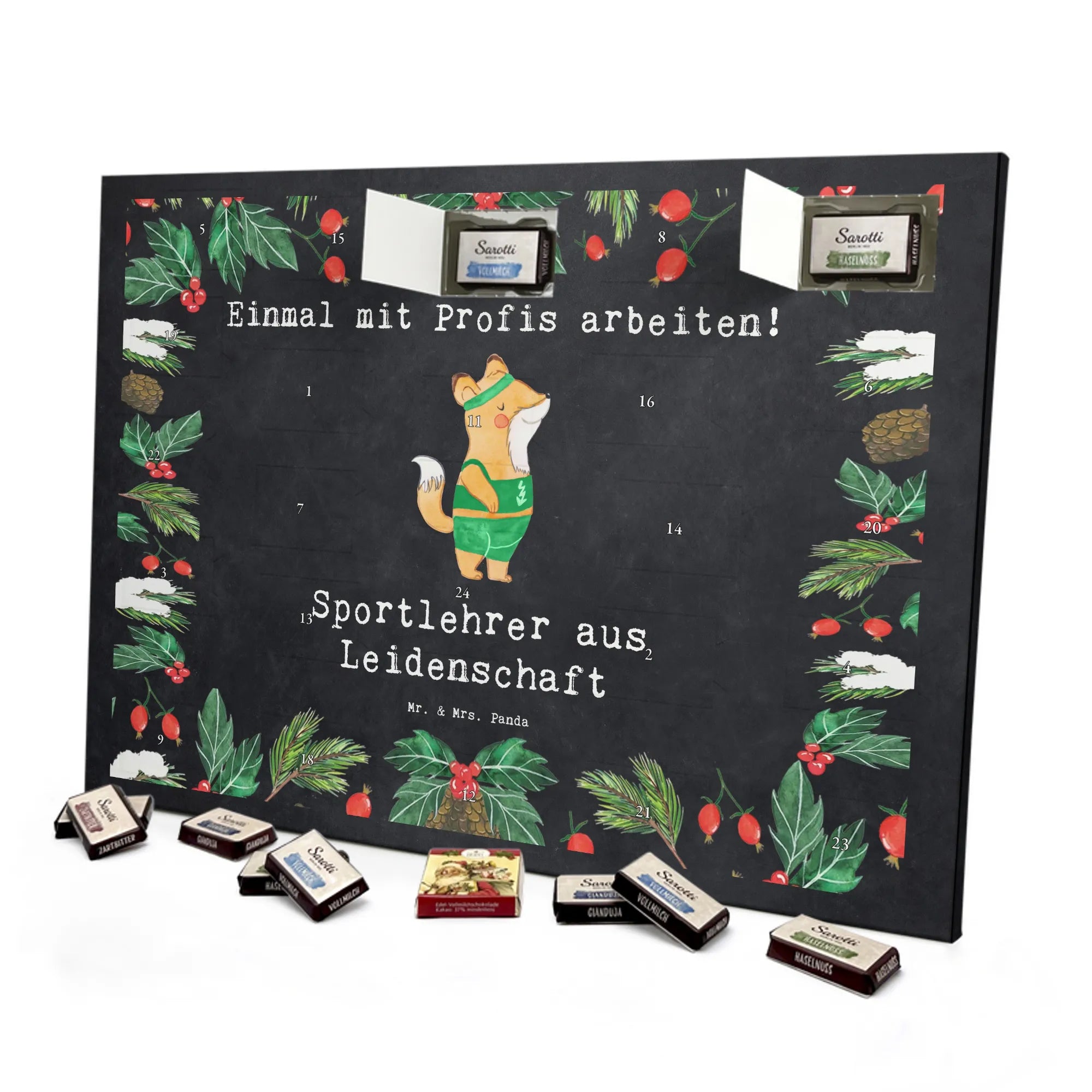 🐼 Schoko Adventskalender mit Mr. & Mrs. Panda Motiven, brillante Druckqualität, nicht personalisierbar.