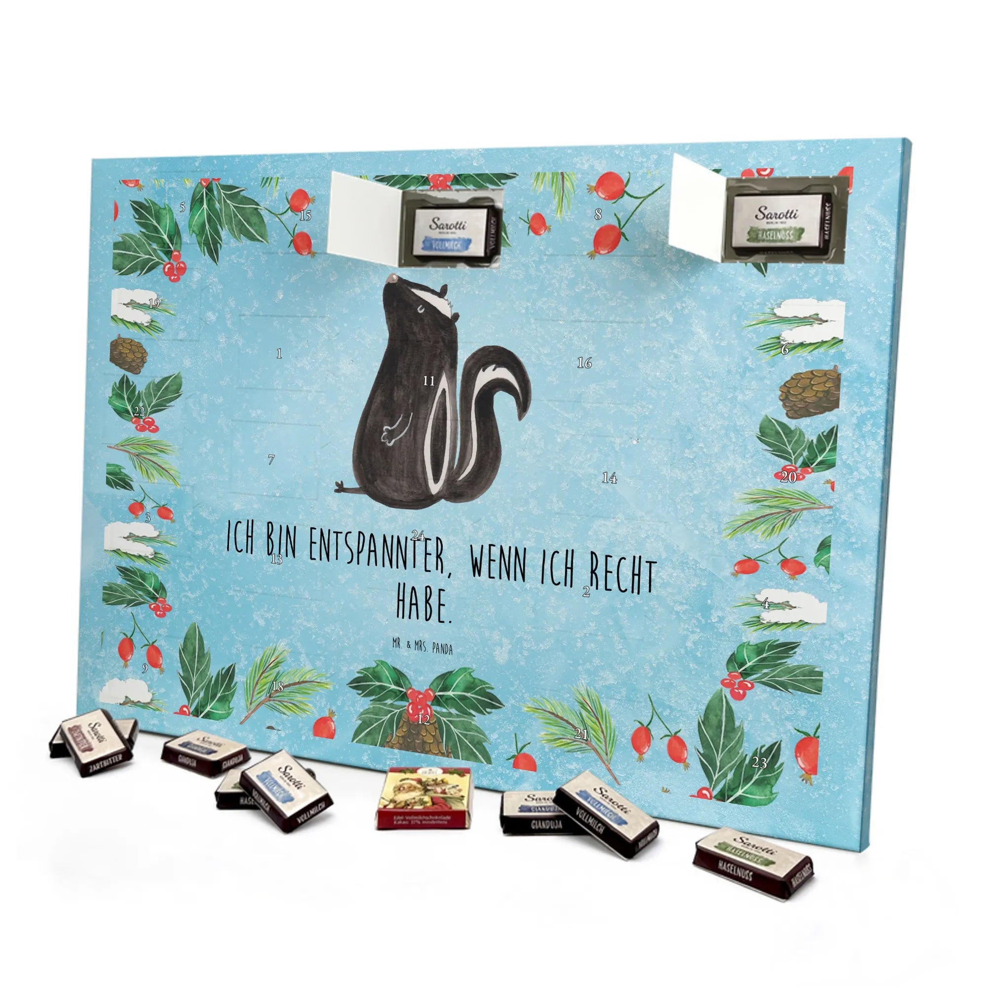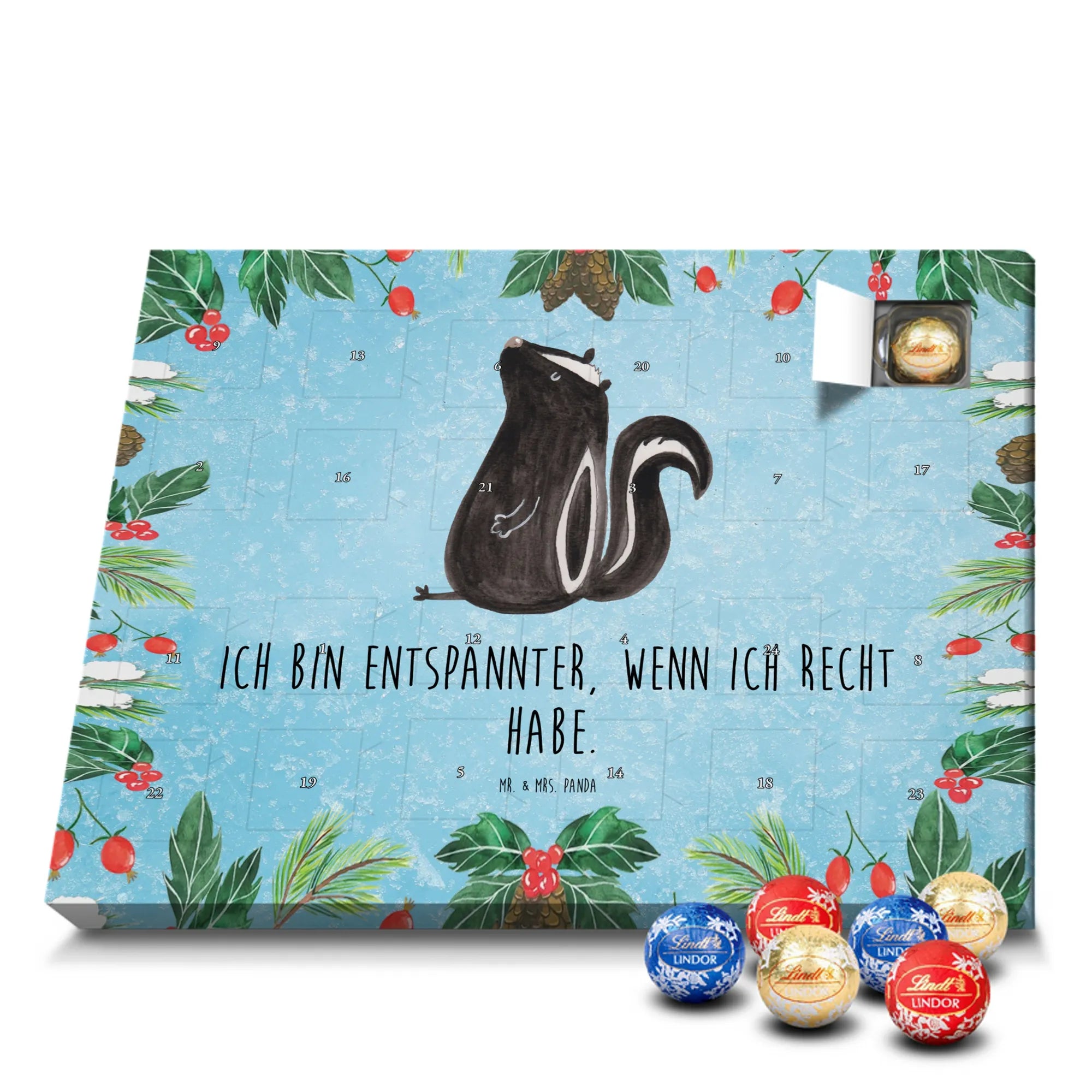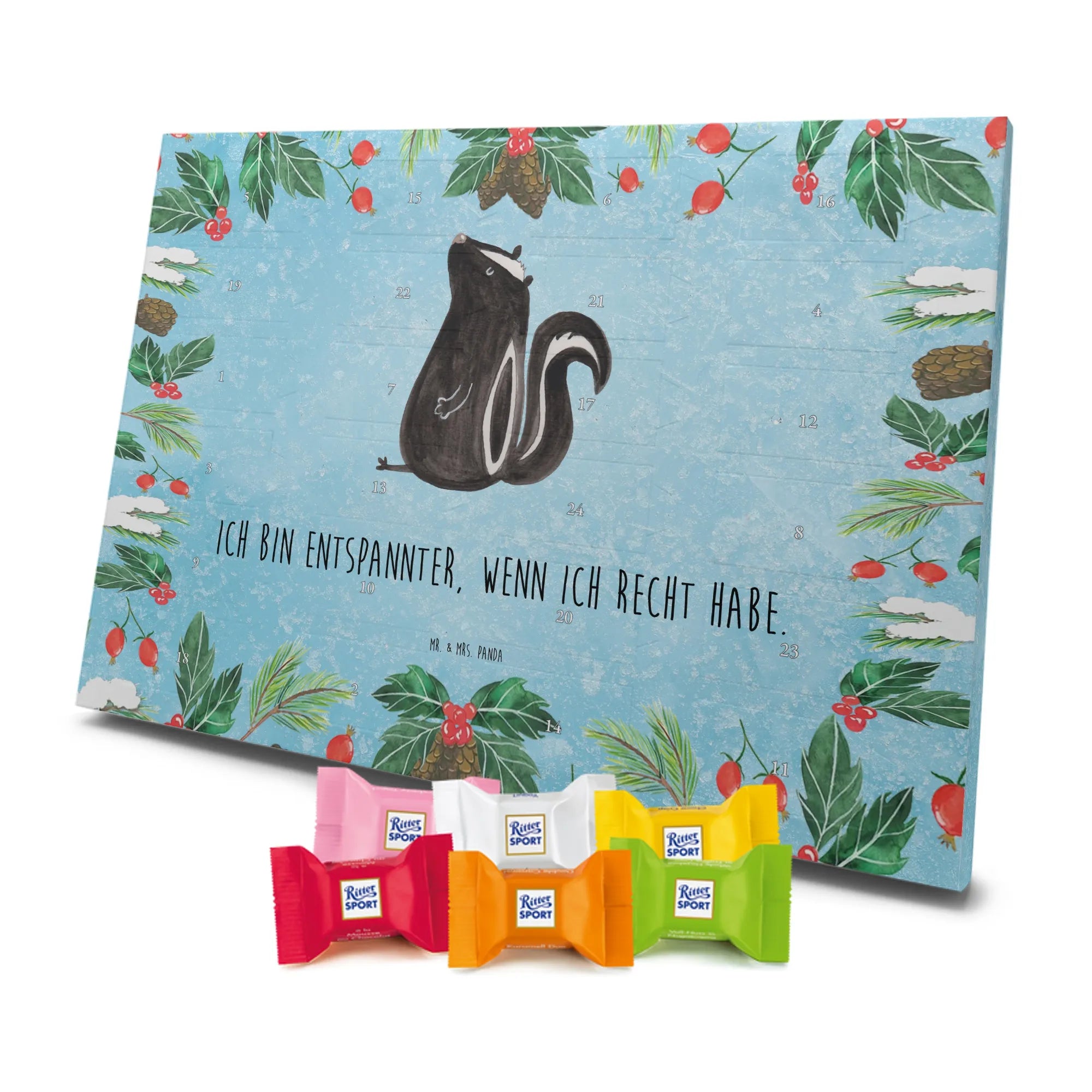 Adventskalender Stinktier Sitzen - Classic - mit Spruch - Eisblau