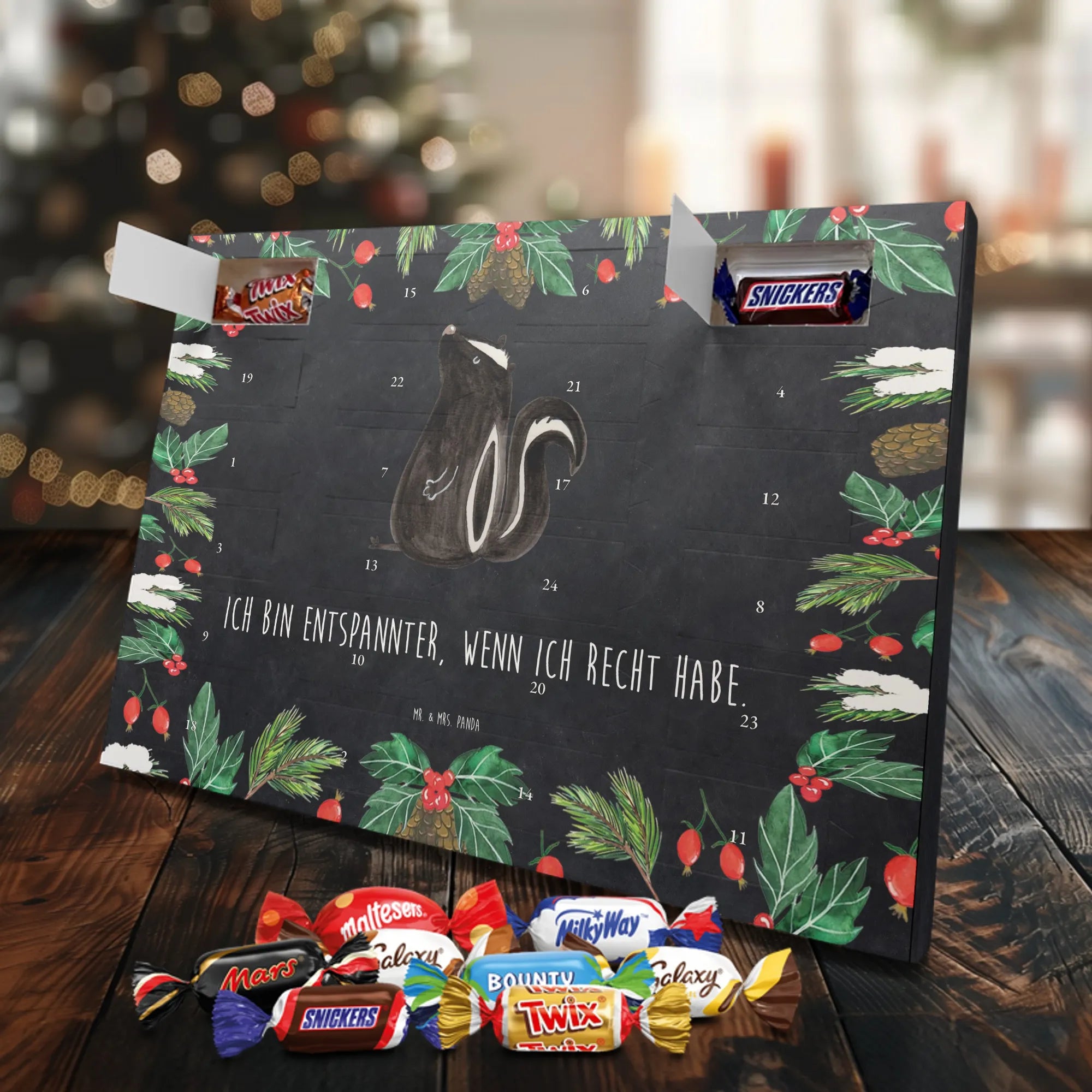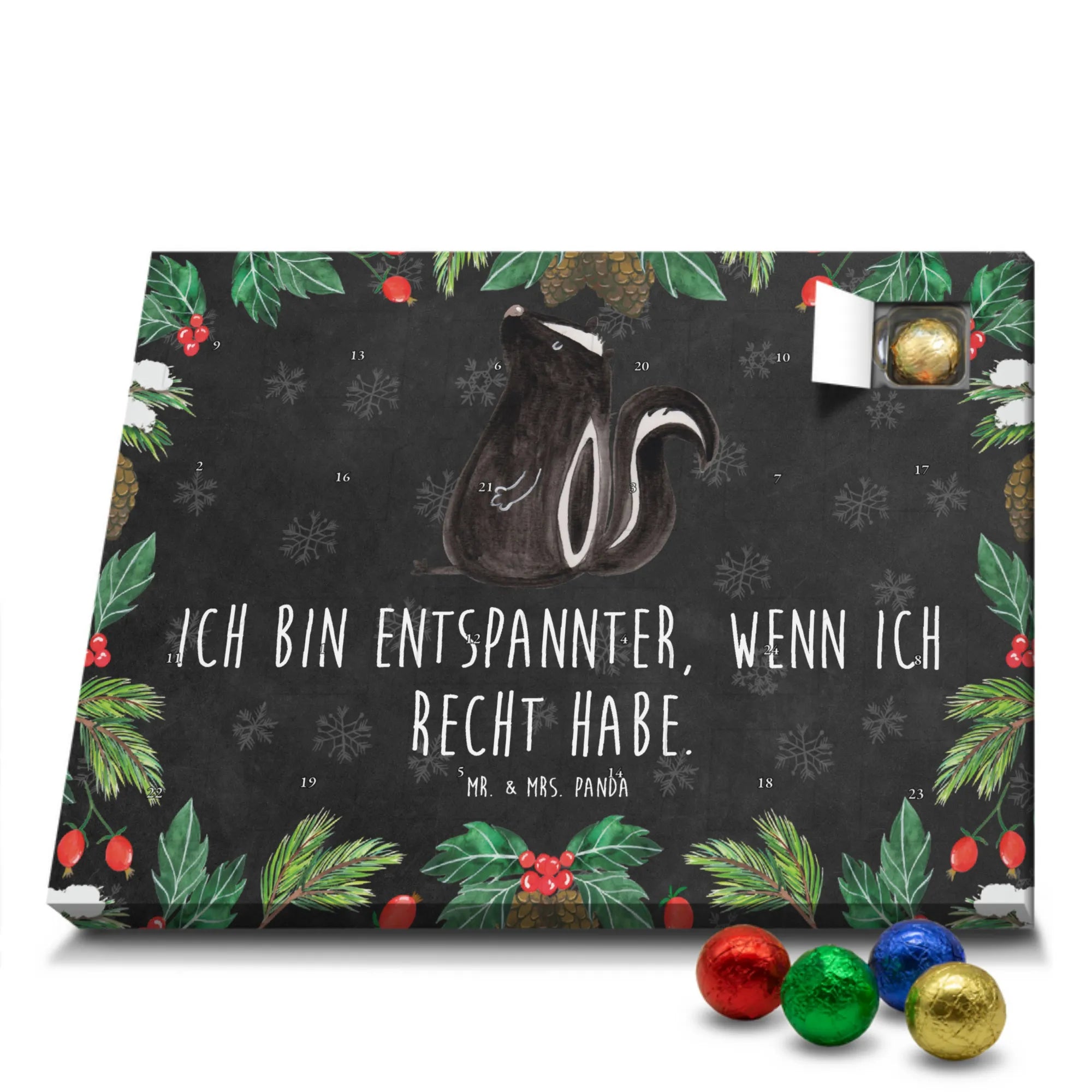 Mach die Adventszeit süßer: Entdecke unseren bedruckten Schokoladen Adventskalender von Mr. & Mrs. Panda und verschenke täglich Freude!