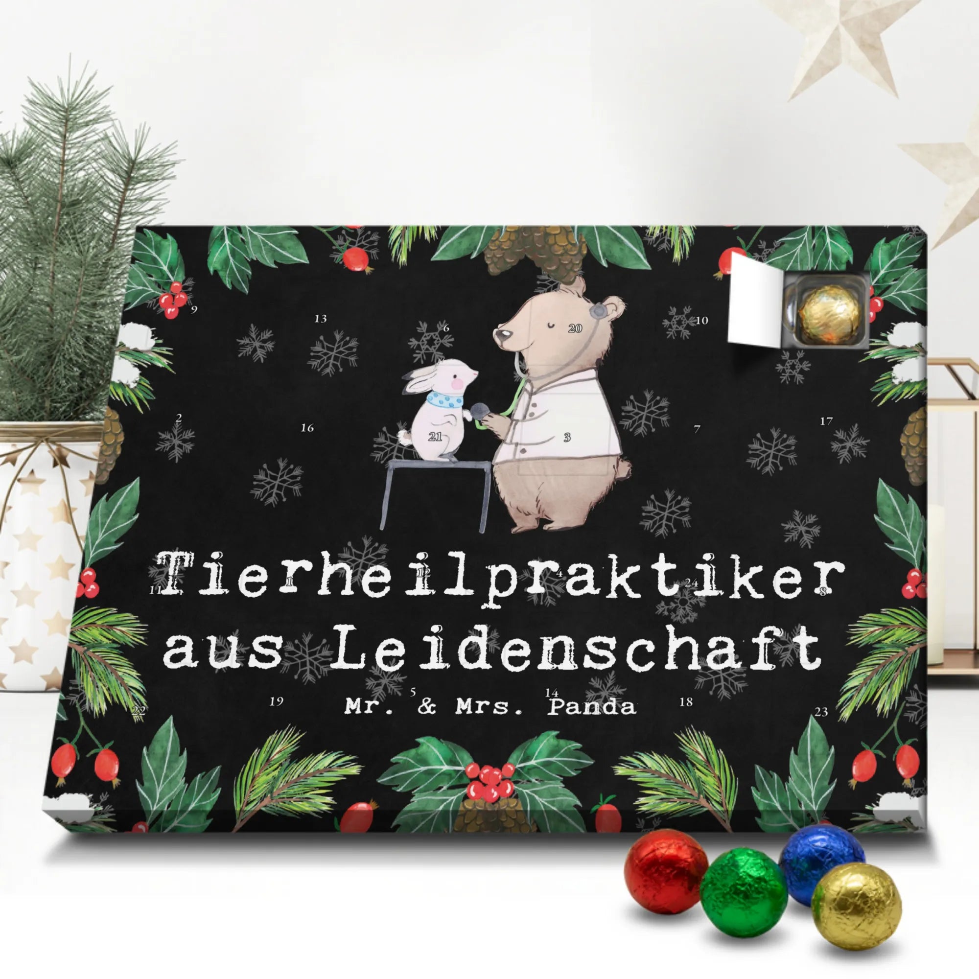🐼 Adventskalender mit Schokolade: Liebevoll bedruckt, seidenmatter Lack, edles Design.