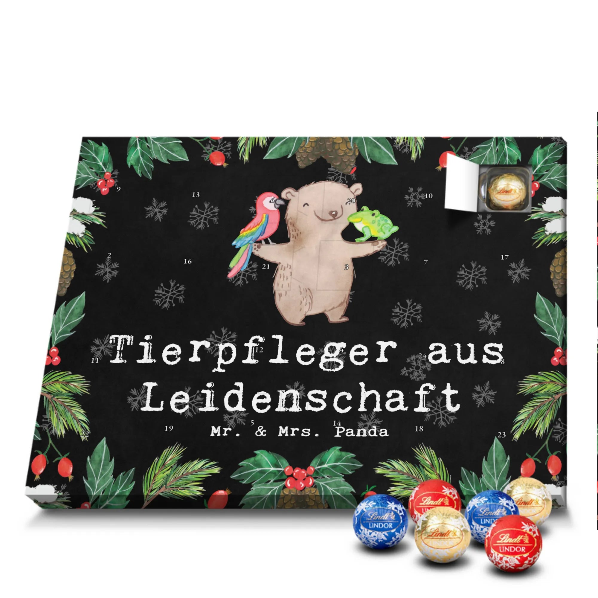 🐼 Gefüllter Schoko Adventskalender mit 24 Lindt Lindor Kugeln, hochwertige Optik.