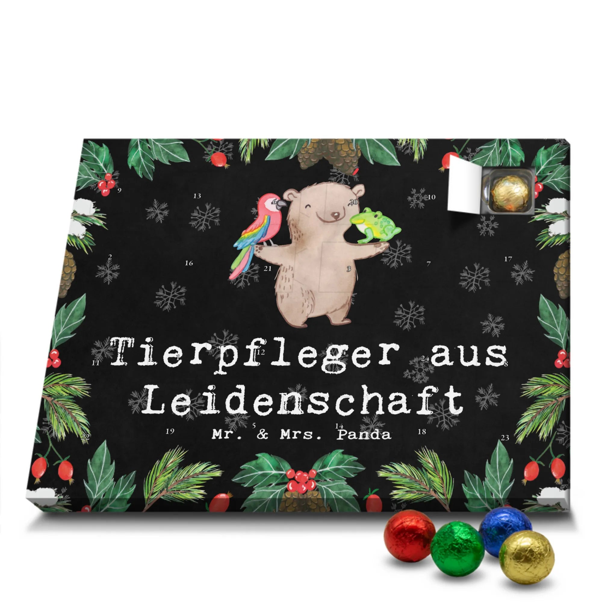 🐼 Schoko Adventskalender mit Mr. & Mrs. Panda Motiven, brillante Druckqualität, nicht personalisierbar.