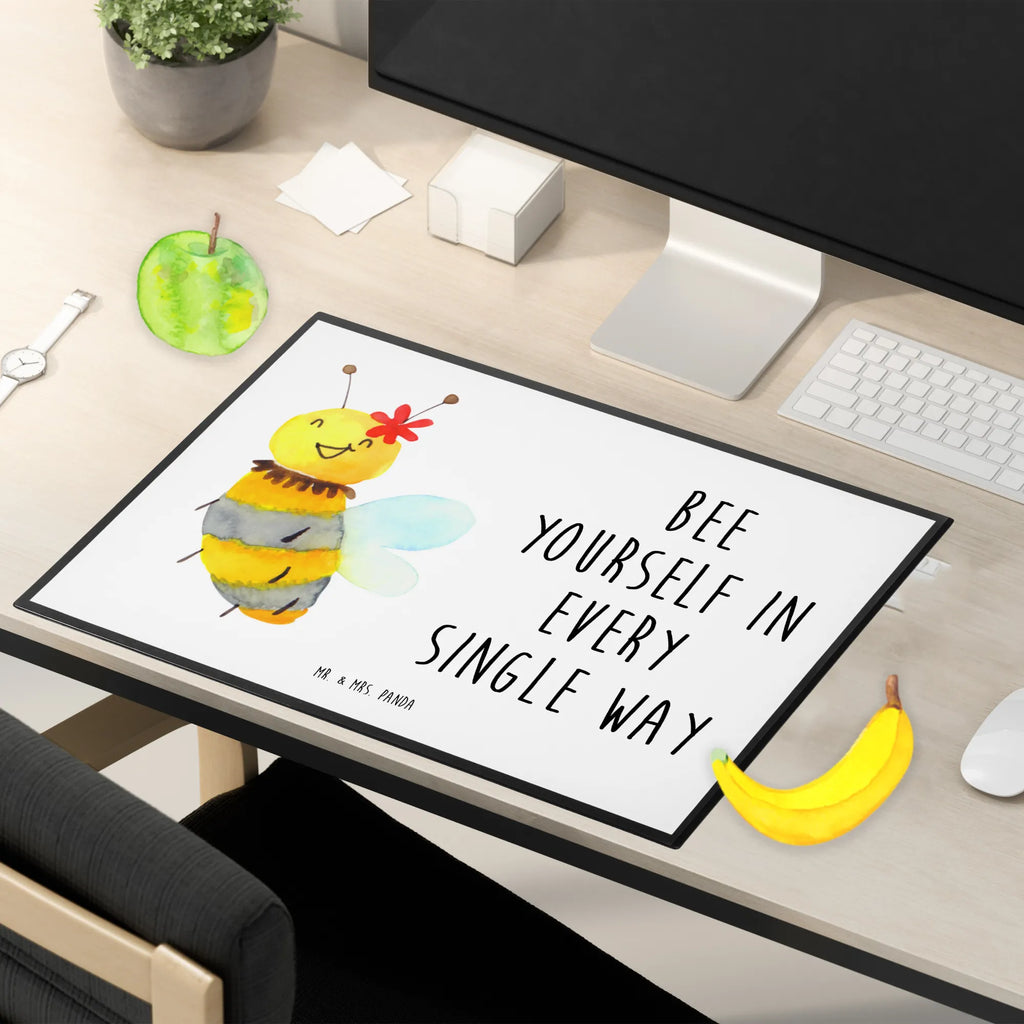 Schreibtischunterlage Biene Blume - mit Spruch - Weiß