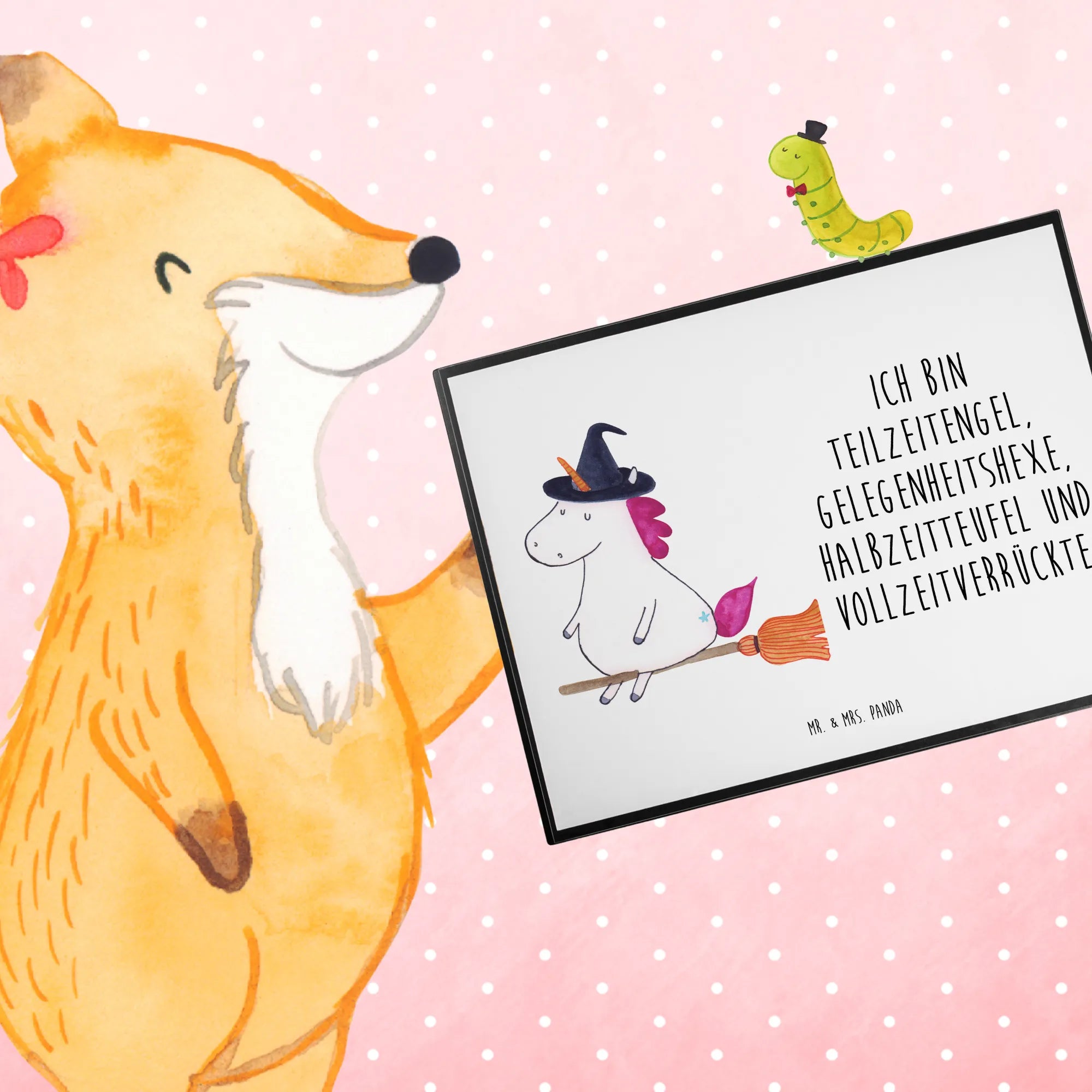 Mit dem Motto "Ich bin Teilzeitengel, Gelegenheitshexe, Halbzeitteufel und Vollzeitverrückte" hast du nicht nur eine praktische Unterlage, sondern auch einen ständigen Begleiter, der gute Laune und Spaß mitbringt. Das süße Einhorn, welches auf einem Besen reitet und stolz seinen Hexenhut trägt, sorgt garantiert für so manches Lächeln im Büro oder beim Lernen in der Schule.