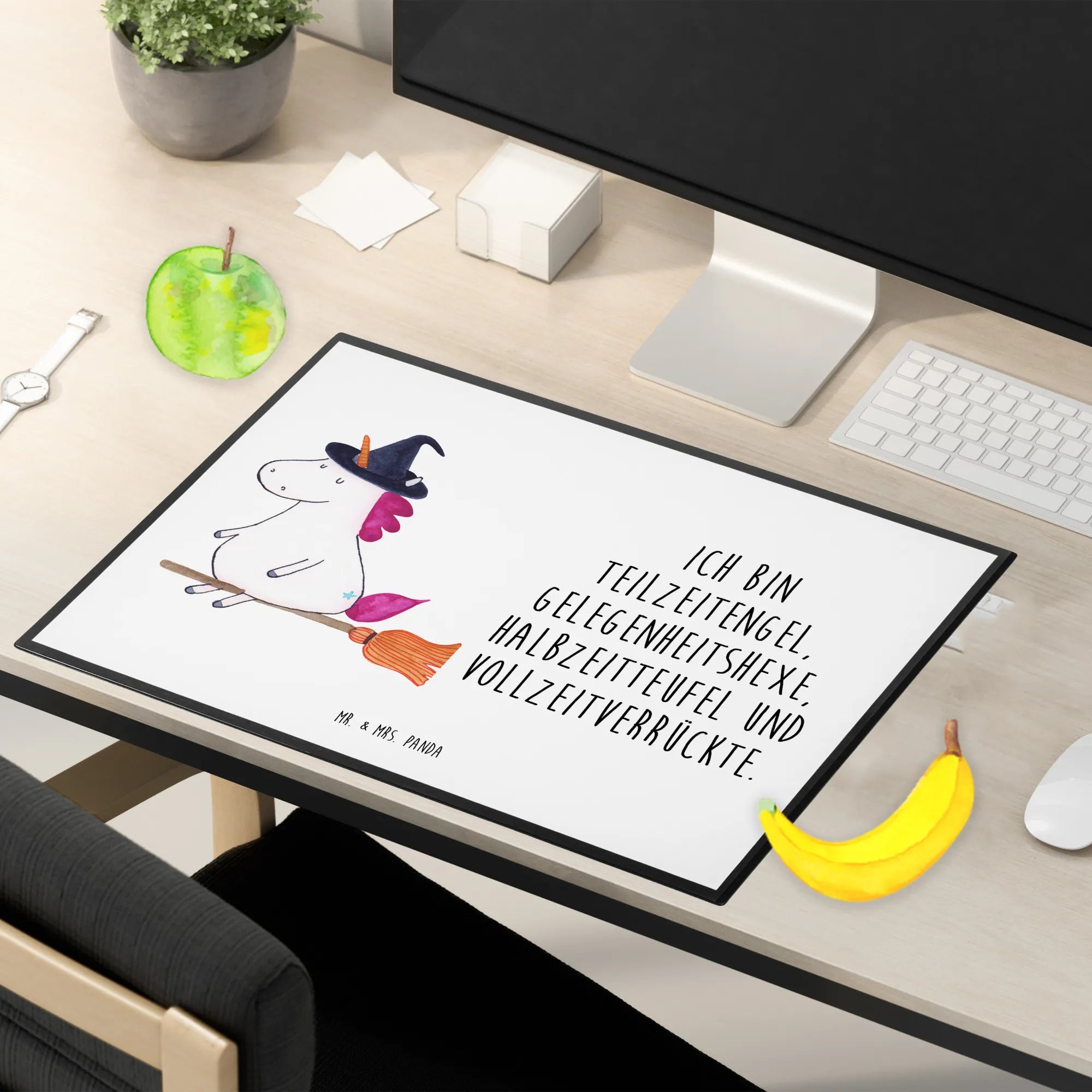 Schreibunterlage Einhorn Hexe - mit Spruch - Weiß