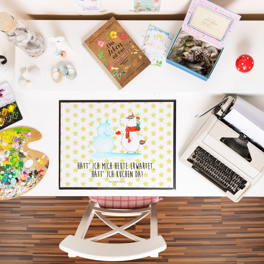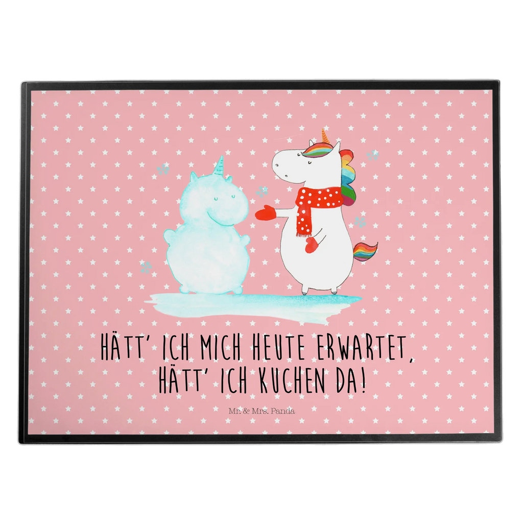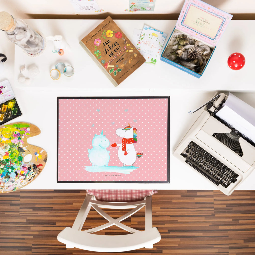 Schreibtischunterlage Einhorn Schneemann - mit Spruch - Rot Pastell