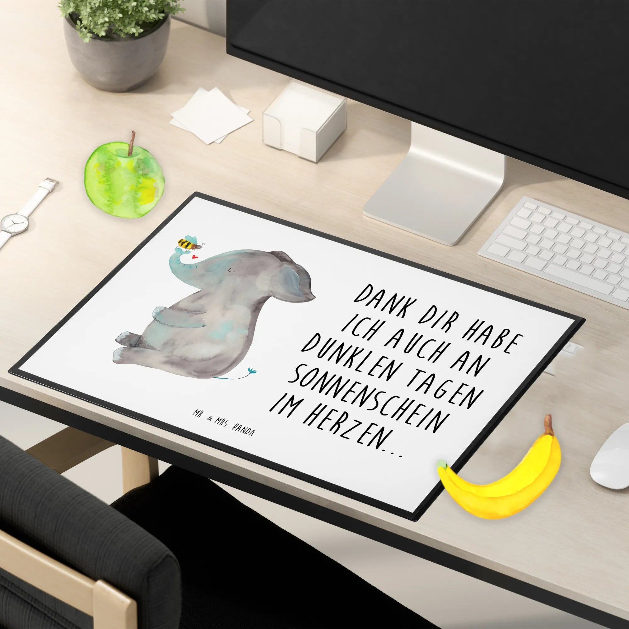 Verschenke gute Laune und funktionalen Charme mit der Schreibtischunterlage Elefant & Biene von Mr. & Mrs. Panda – ein liebevolles Liebesschenken für besondere Anlässe!