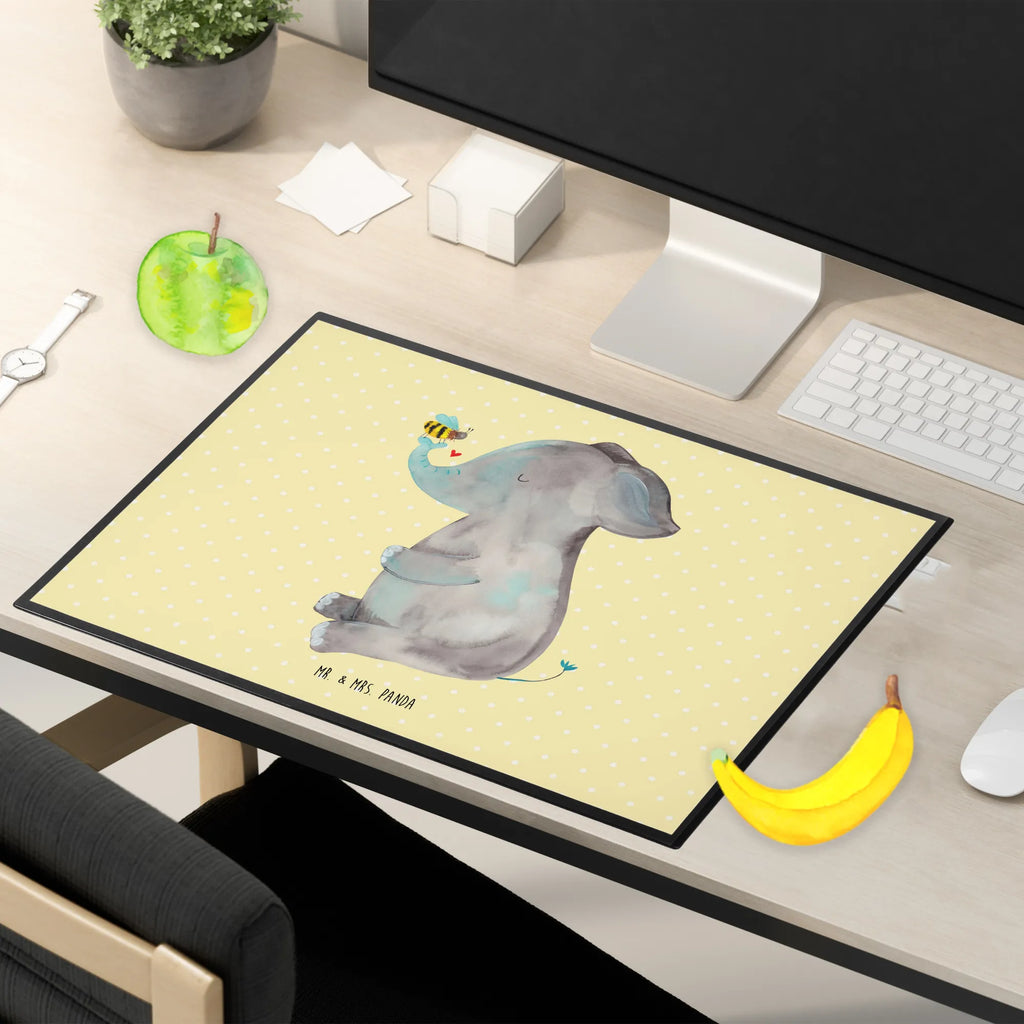 Schreibtischunterlage Elefant Biene - mit Spruch - Gelb Pastell