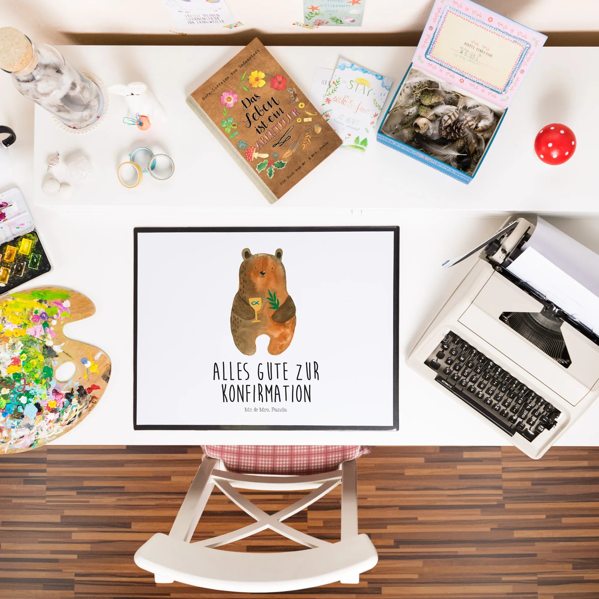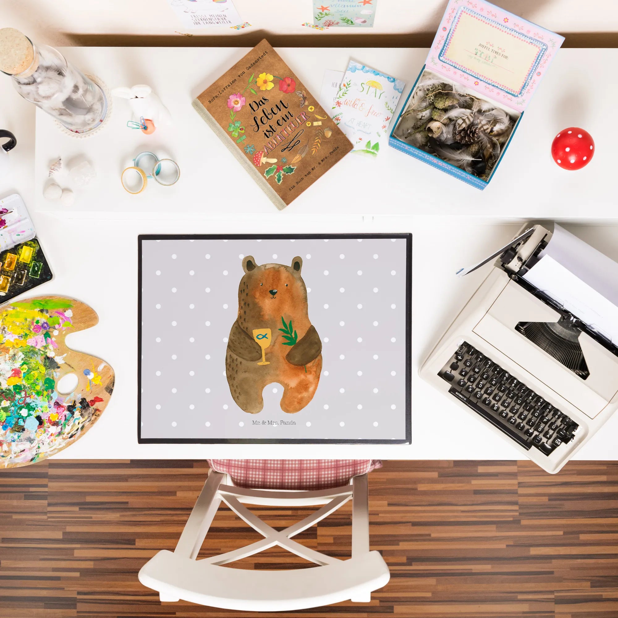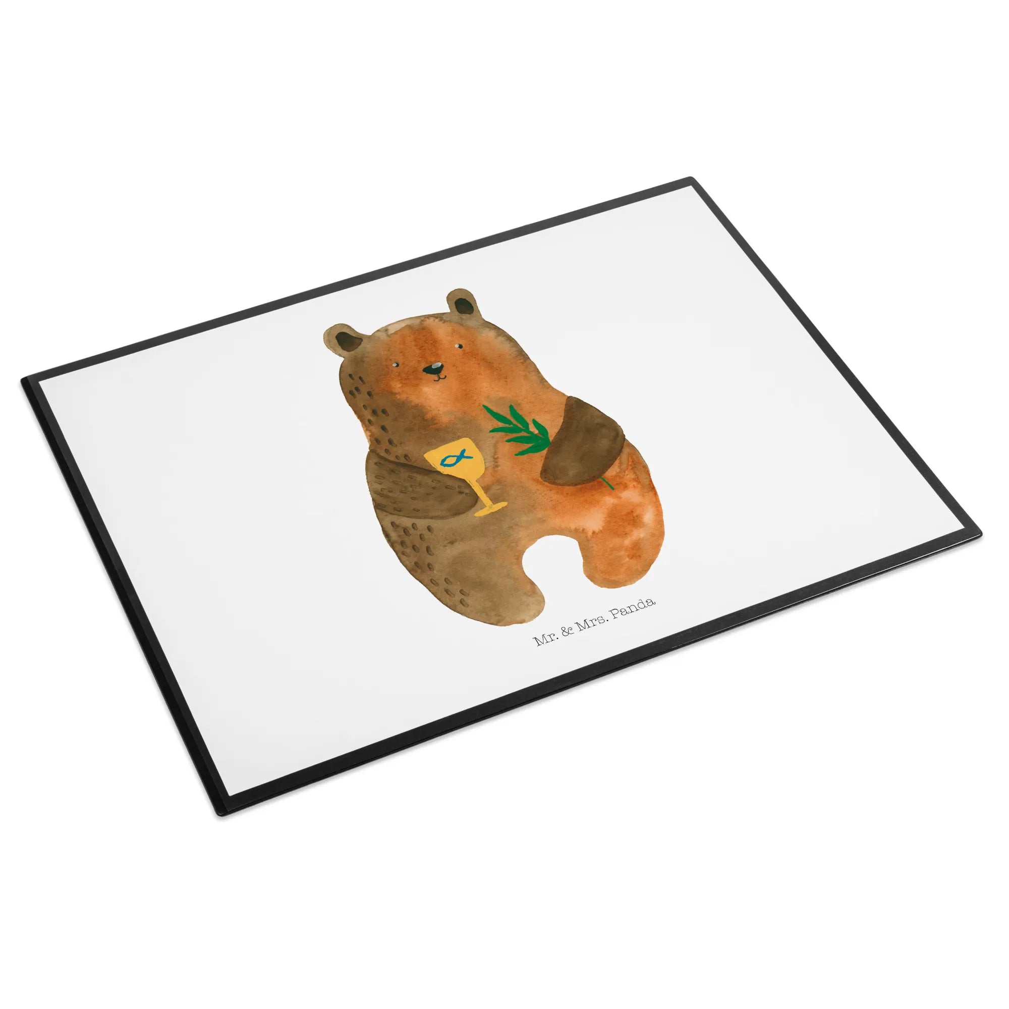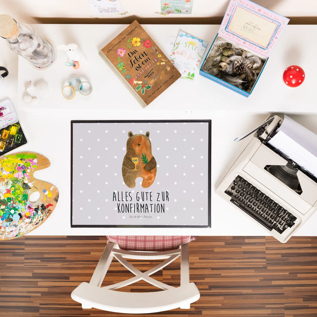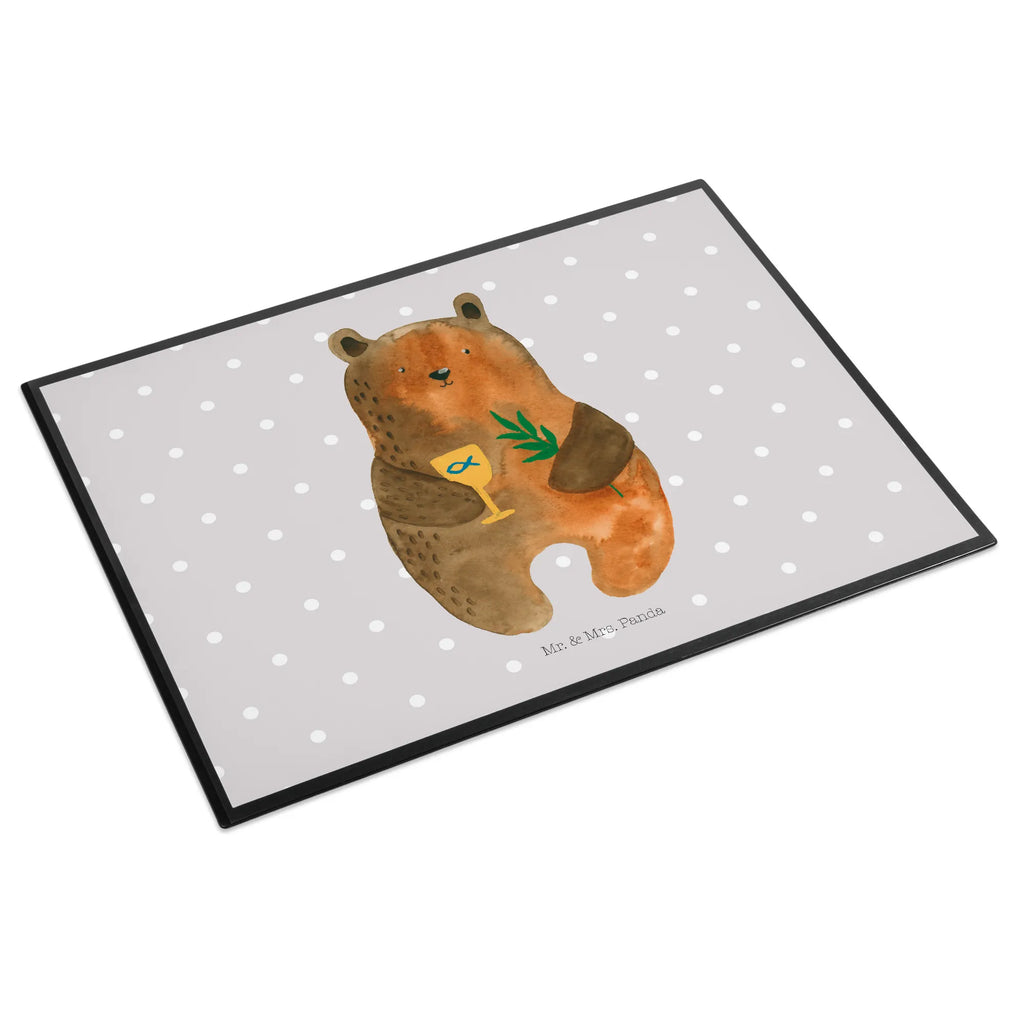 Schreibtischunterlage Bär Konfirmation - mit Spruch - Grau Pastell