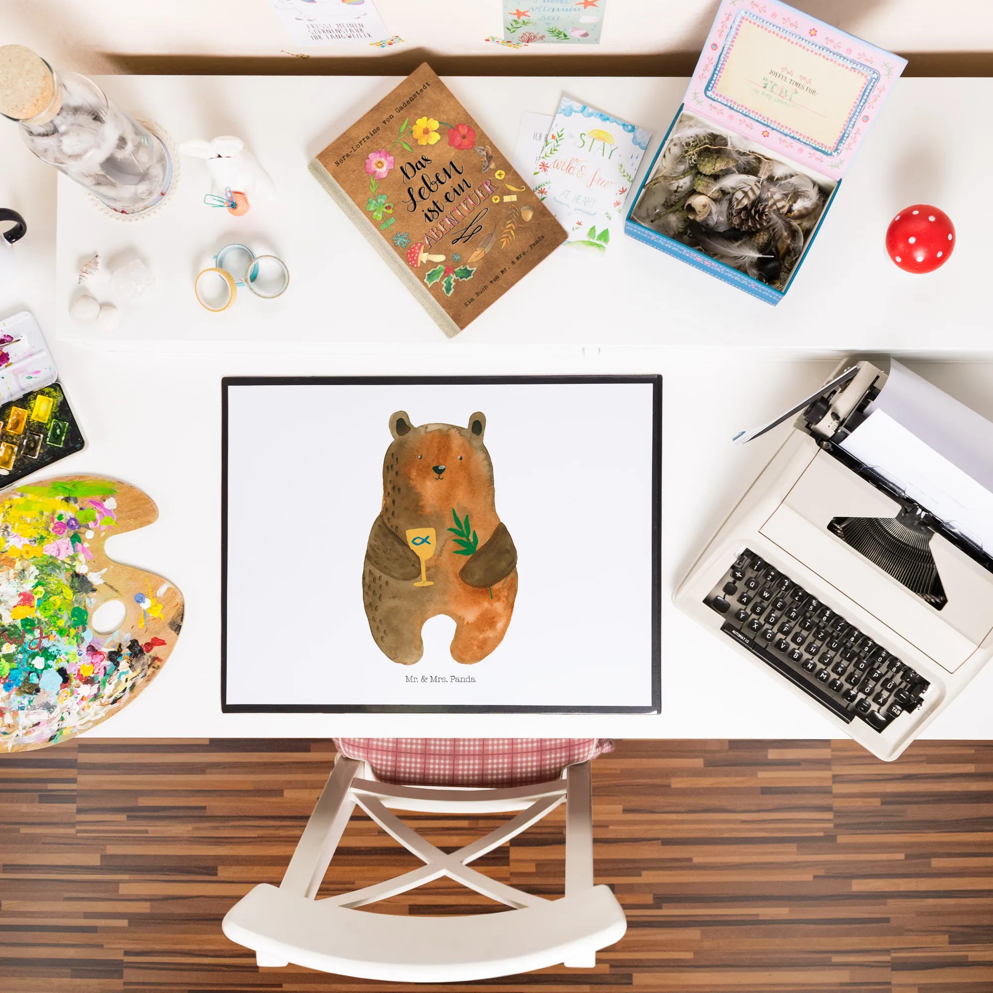 Mit liebevollen Details und sanften Farben bringt der Bär die Atmosphäre eines festlichen Sonntags in dein Zuhause. Der Kelch symbolisiert das heilige Miteinander, der Zweig steht für Frieden und den Wunsch nach Segen. Ob du eine Einladung zur Konfirmation gestaltest, eine Dankeskarte schreibst oder ein Erinnerungsstück suchst — dieses Motiv passt wunderbar in die Welt der Kirche.