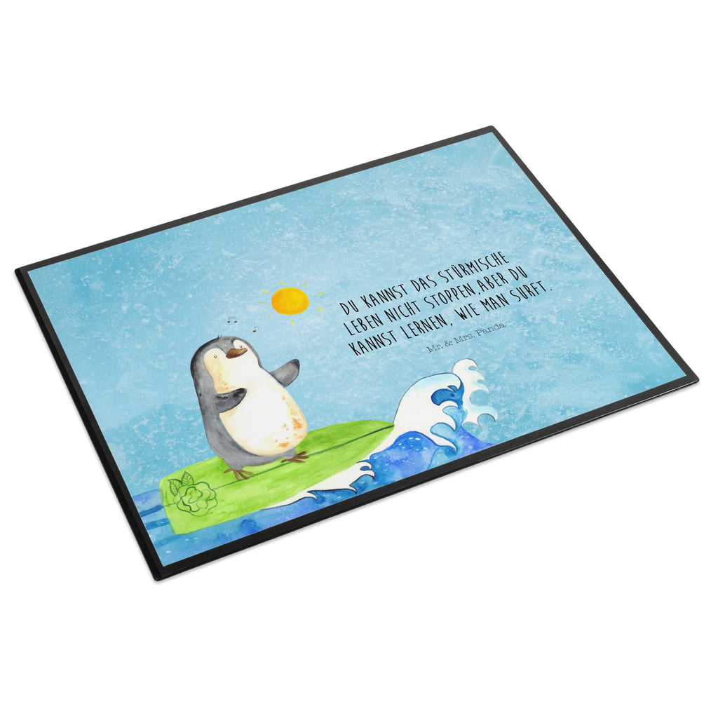Schreibtischunterlage Pinguin Surfer - mit Spruch - Weiß
