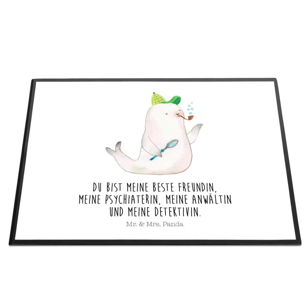 Schreibtischunterlage Robbe Sherlock - mit Spruch - Weiß