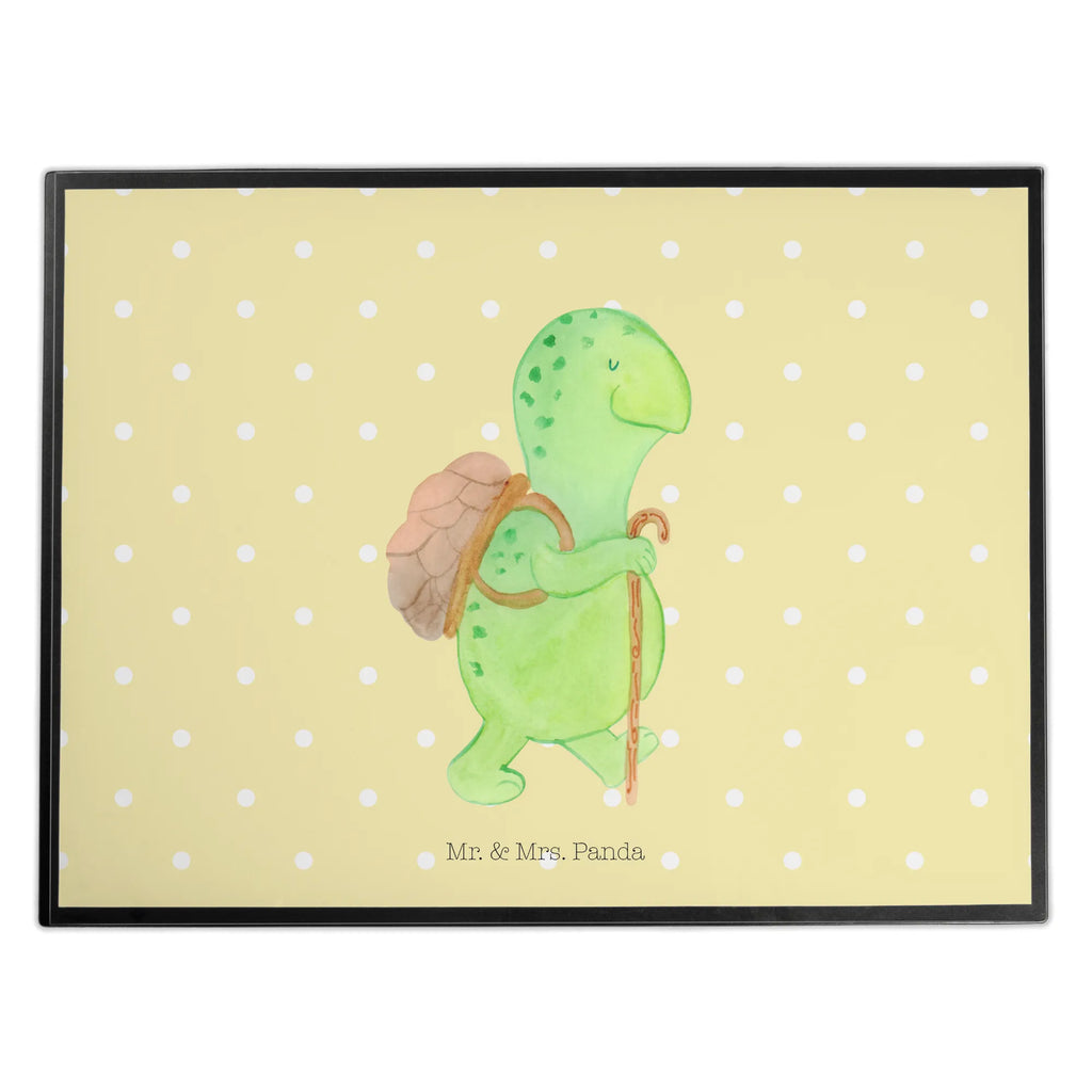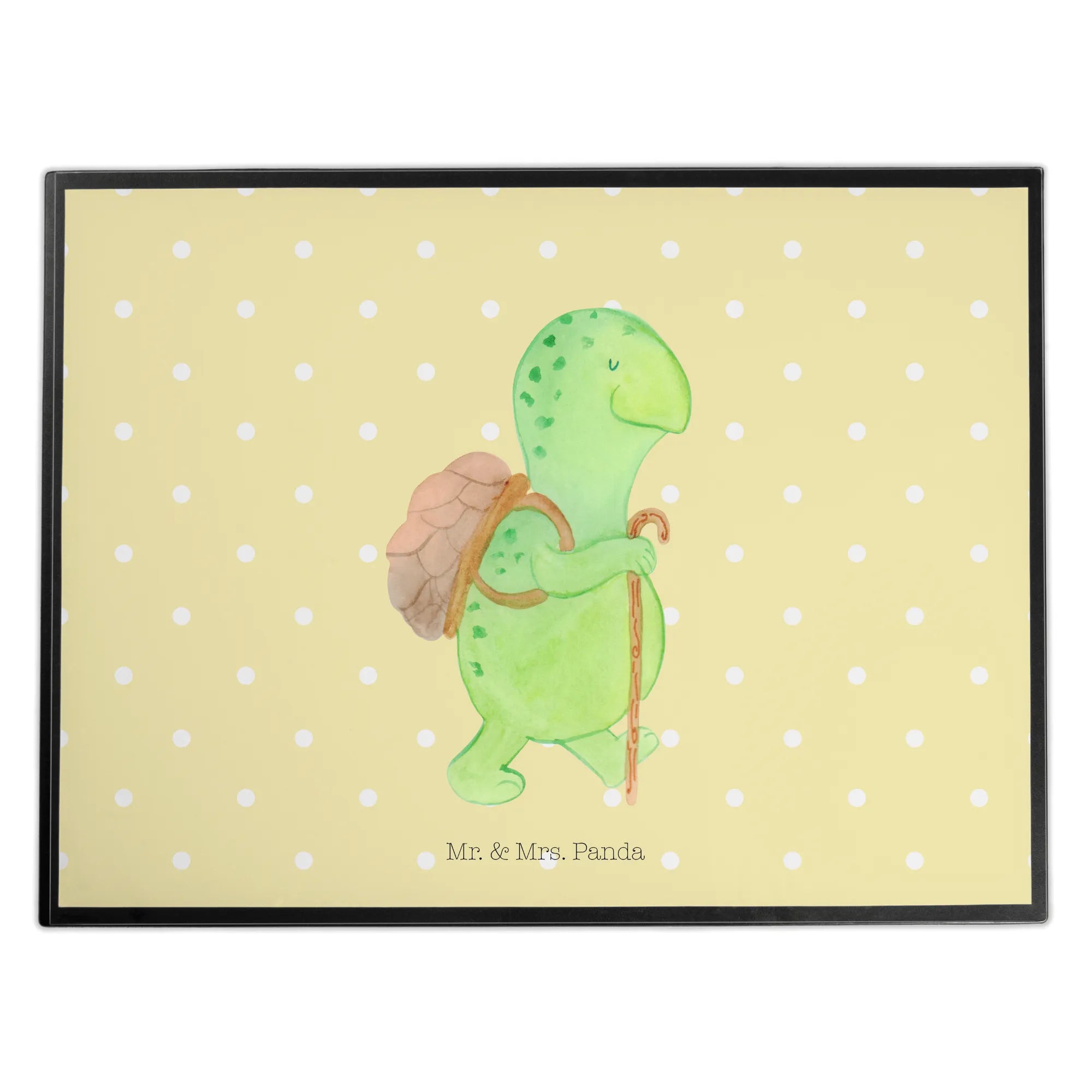 Schreibtischunterlage Schildkröte Wanderer - mit Spruch - Gelb Pastell