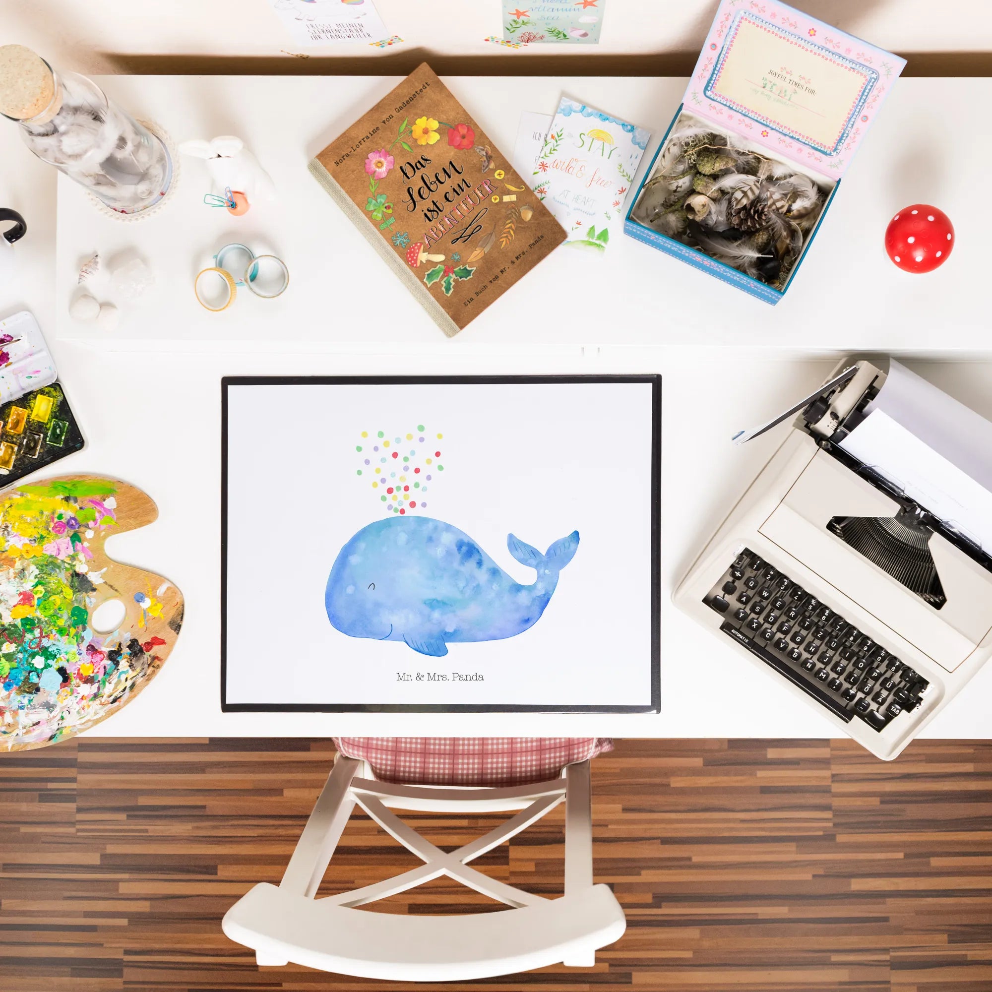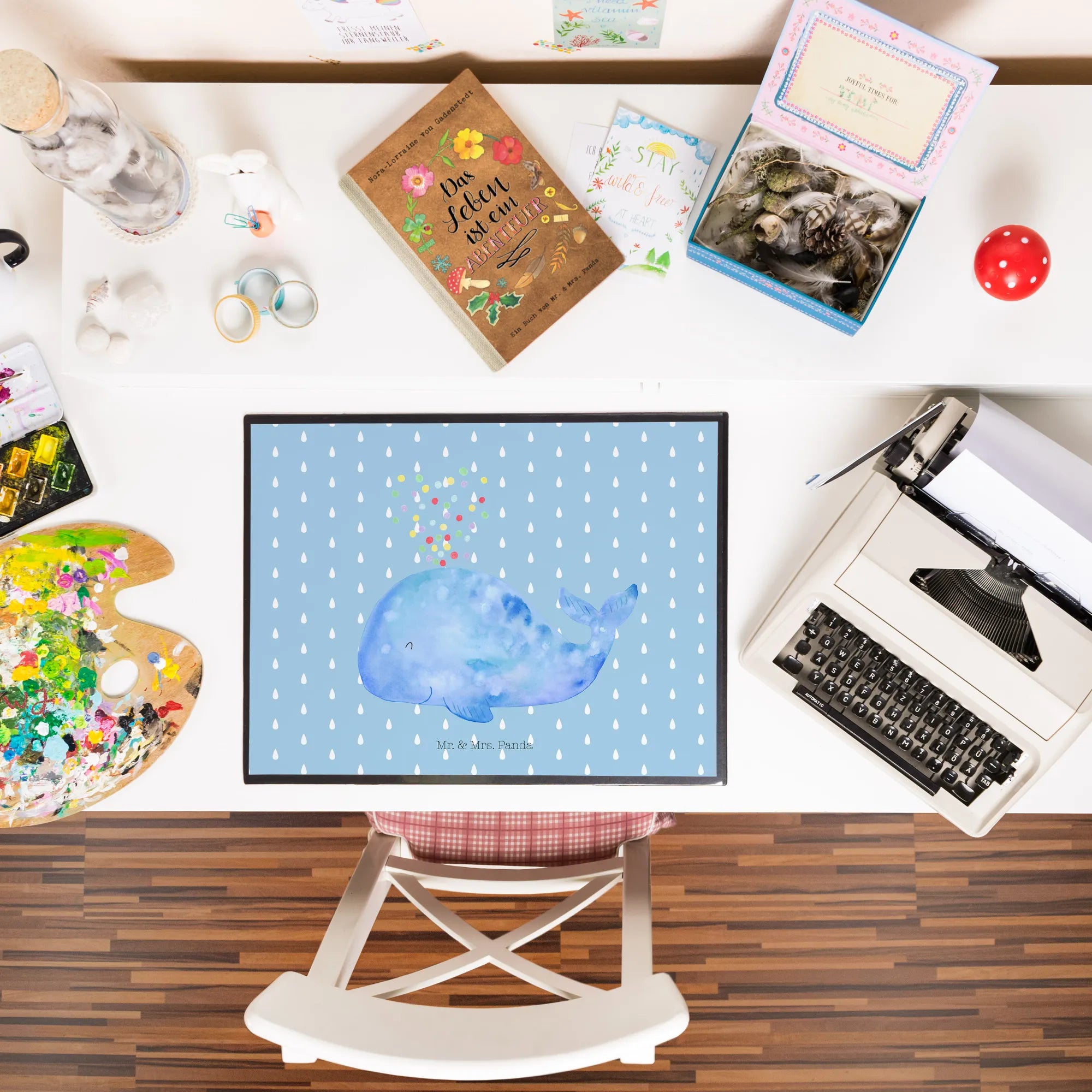 Die traumhafte Schreibtischunterlage von Mr. & Mrs. Panda mit dem bezaubernden Wal-Motiv und fröhlichem Konfetti ist der perfekte Begleiter für deinen Arbeitsplatz! Ob im Büro, im Homeoffice oder auch als schönes Element in deinem Kindergarten- oder Schulumfeld, diese Unterlage sorgt für eine angenehme Atmosphäre. Der liebevoll gestaltete, blau lächelnde Wal, umgeben von Konfetti, bringt sofort gute Laune und Motivation in deinen Alltag.