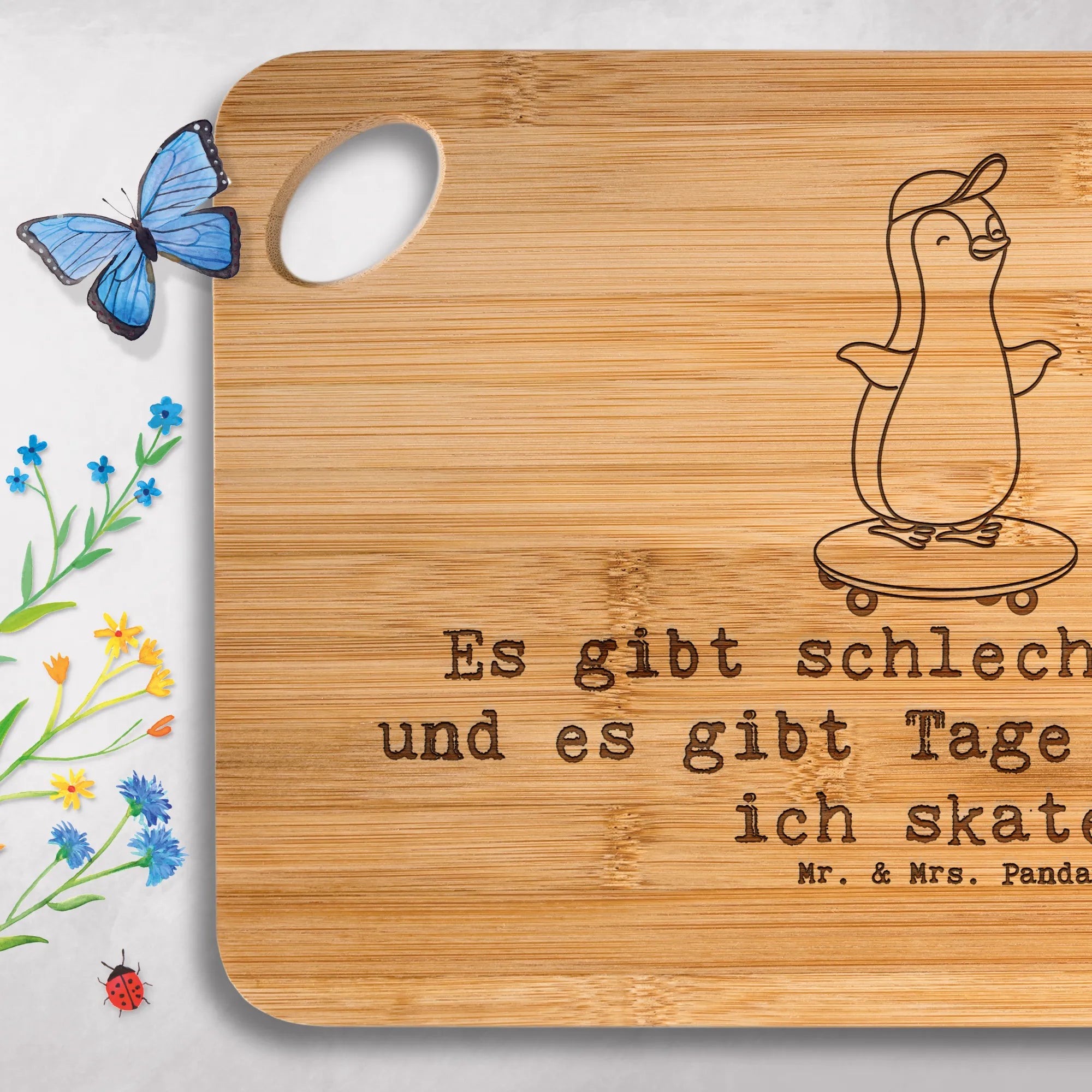 Servierbrett Pinguin Skateboarden - mit Spruch