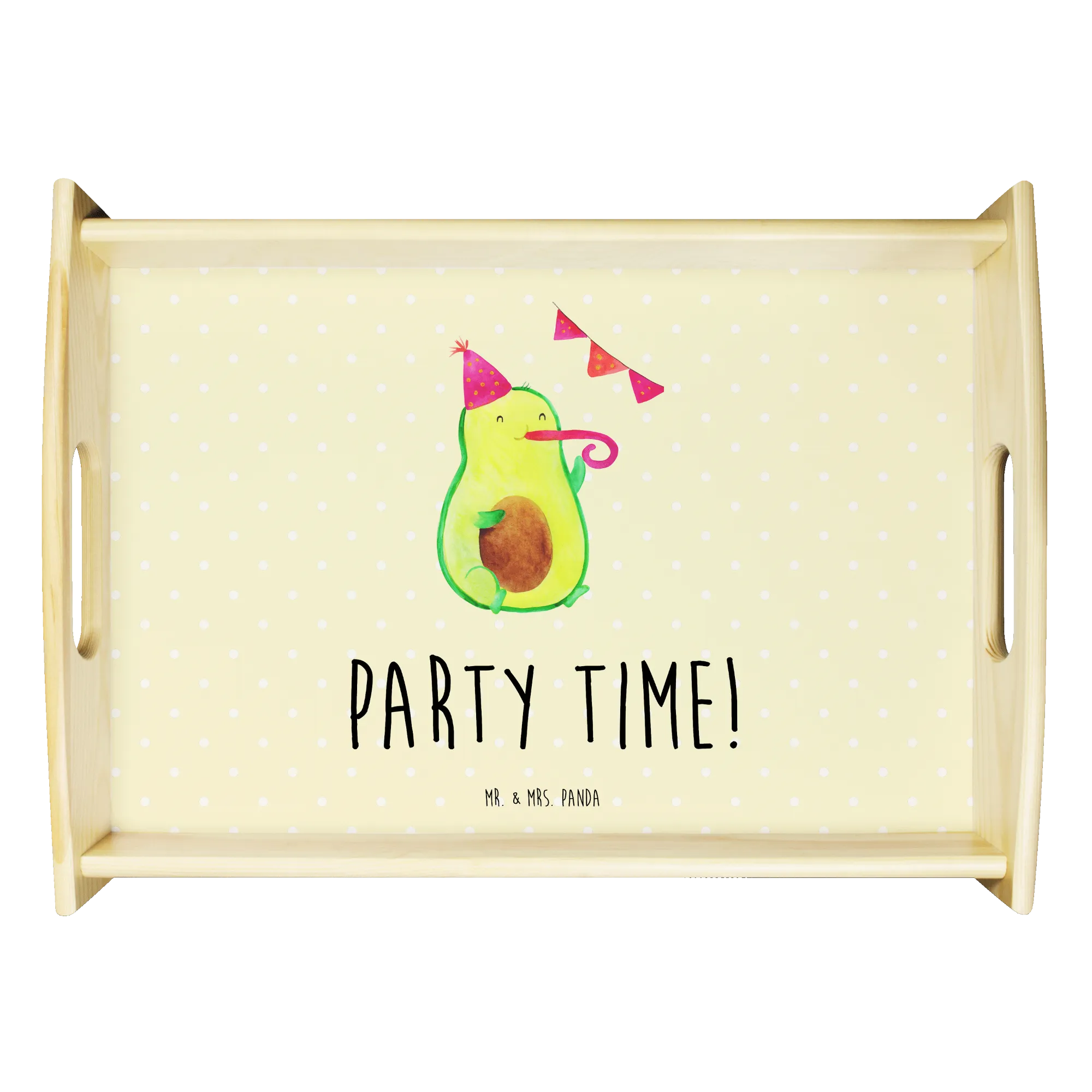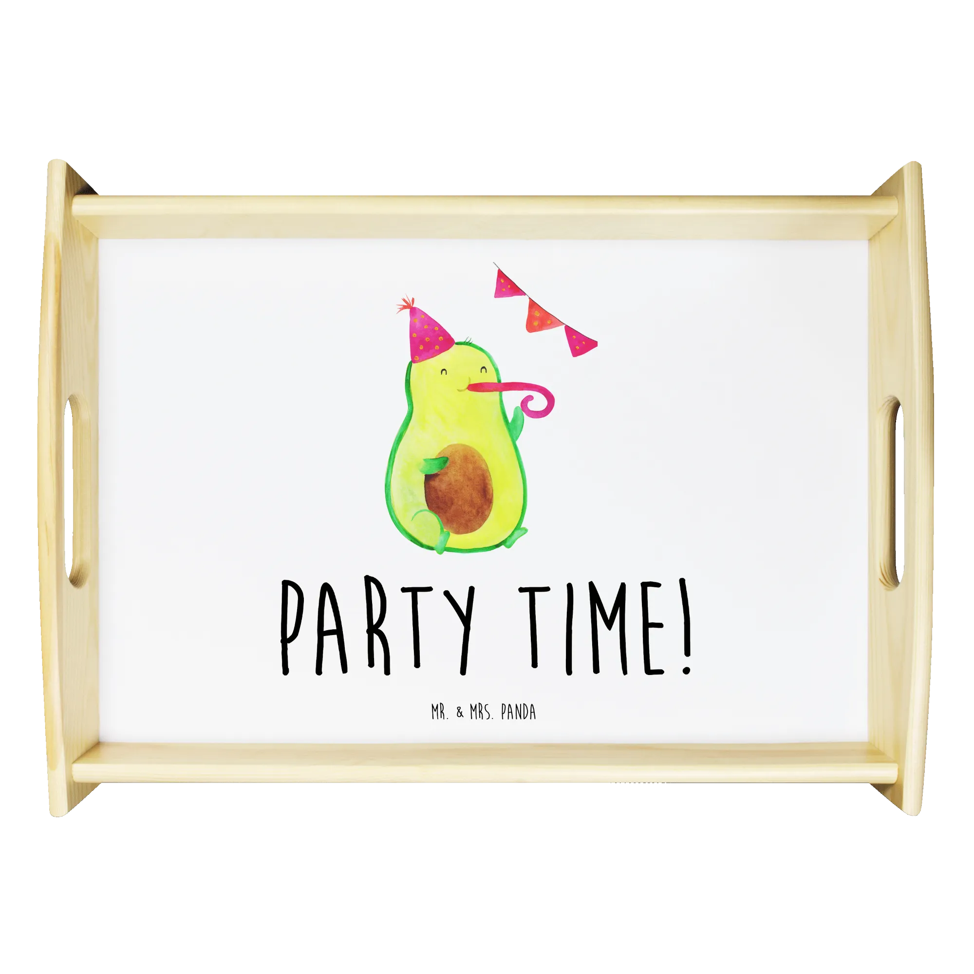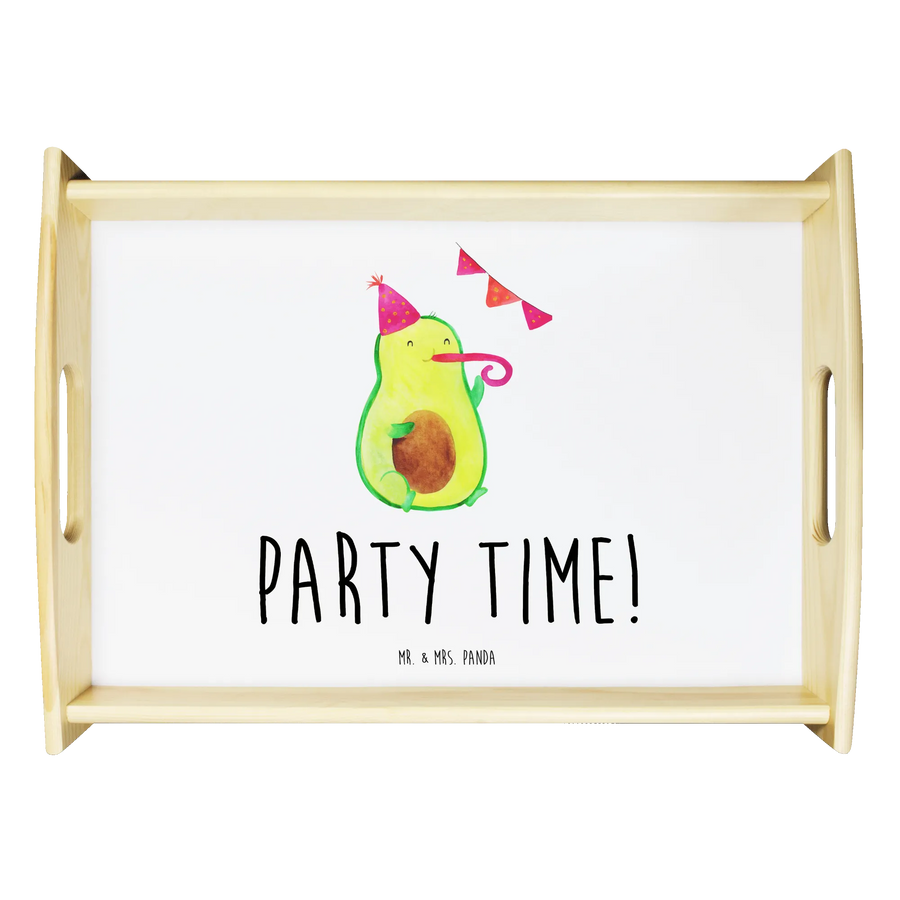 Entdecke das wunderschöne Serviertablett "Avocado Party Time" von Mr. & Mrs. Panda! Mit seinem lebhaften Design und dem fröhlichen Spruch "Party time!" bringt dieses Holztablett Lebensfreude in dein Zuhause. Es ist nicht nur ideal für ein ausgiebiges Frühstück im Bett oder auf dem Sofa, sondern auch perfekt für jede Art von Party oder gemütlichem Brunch mit Freunden.
