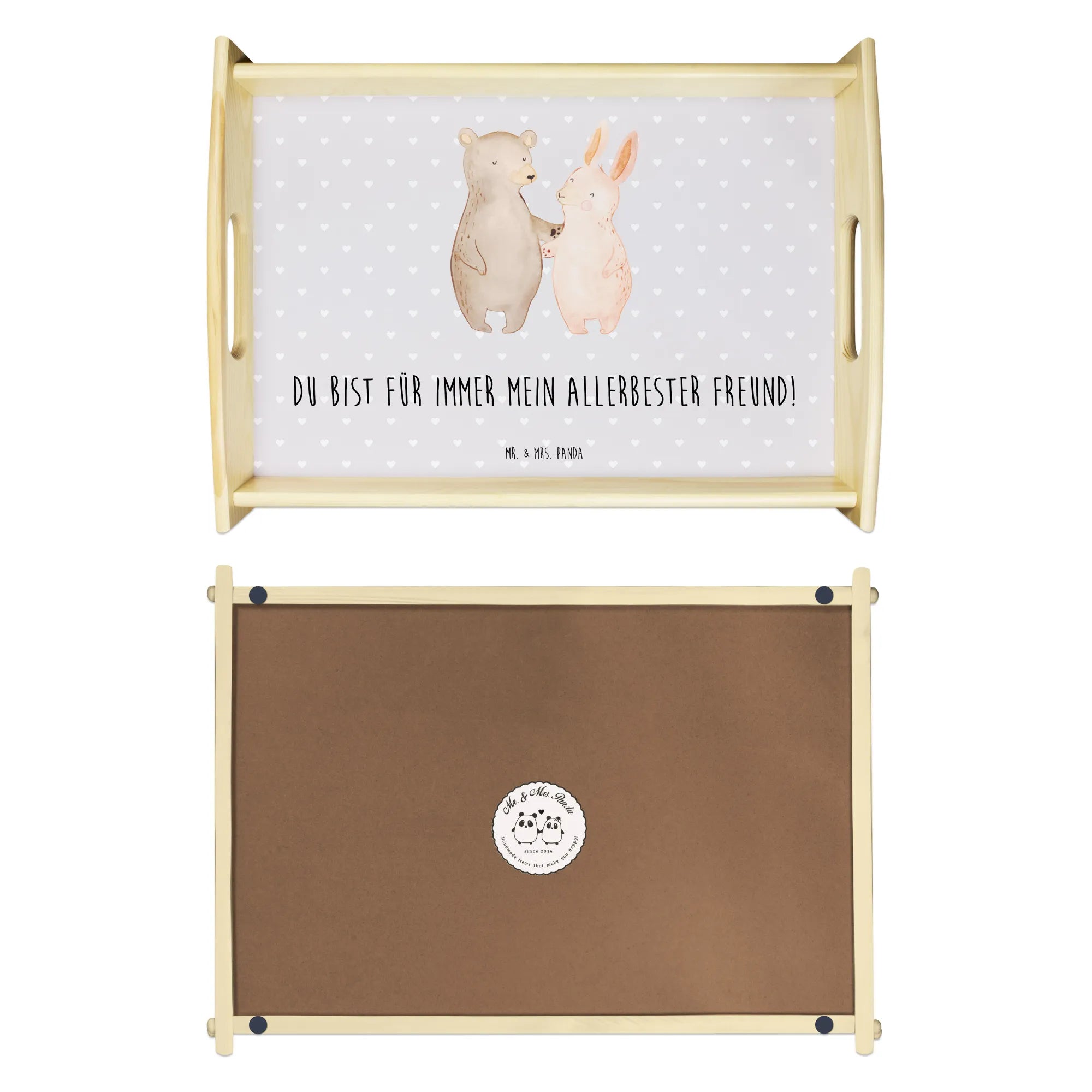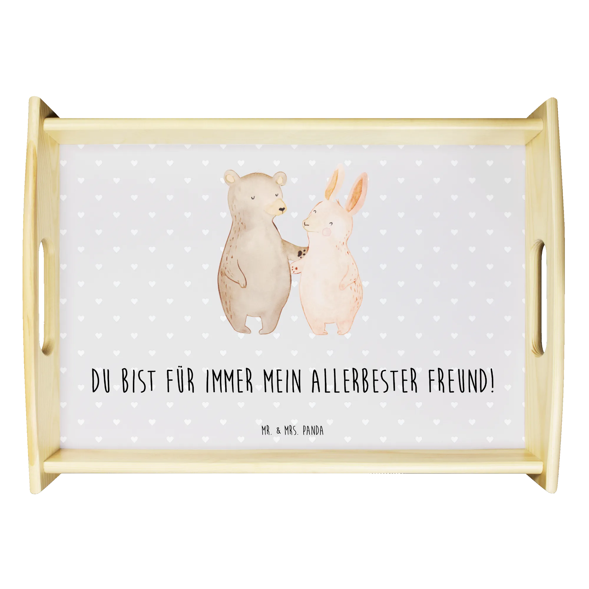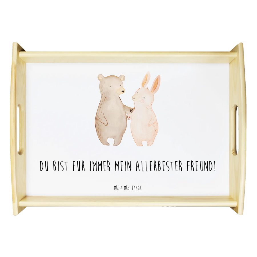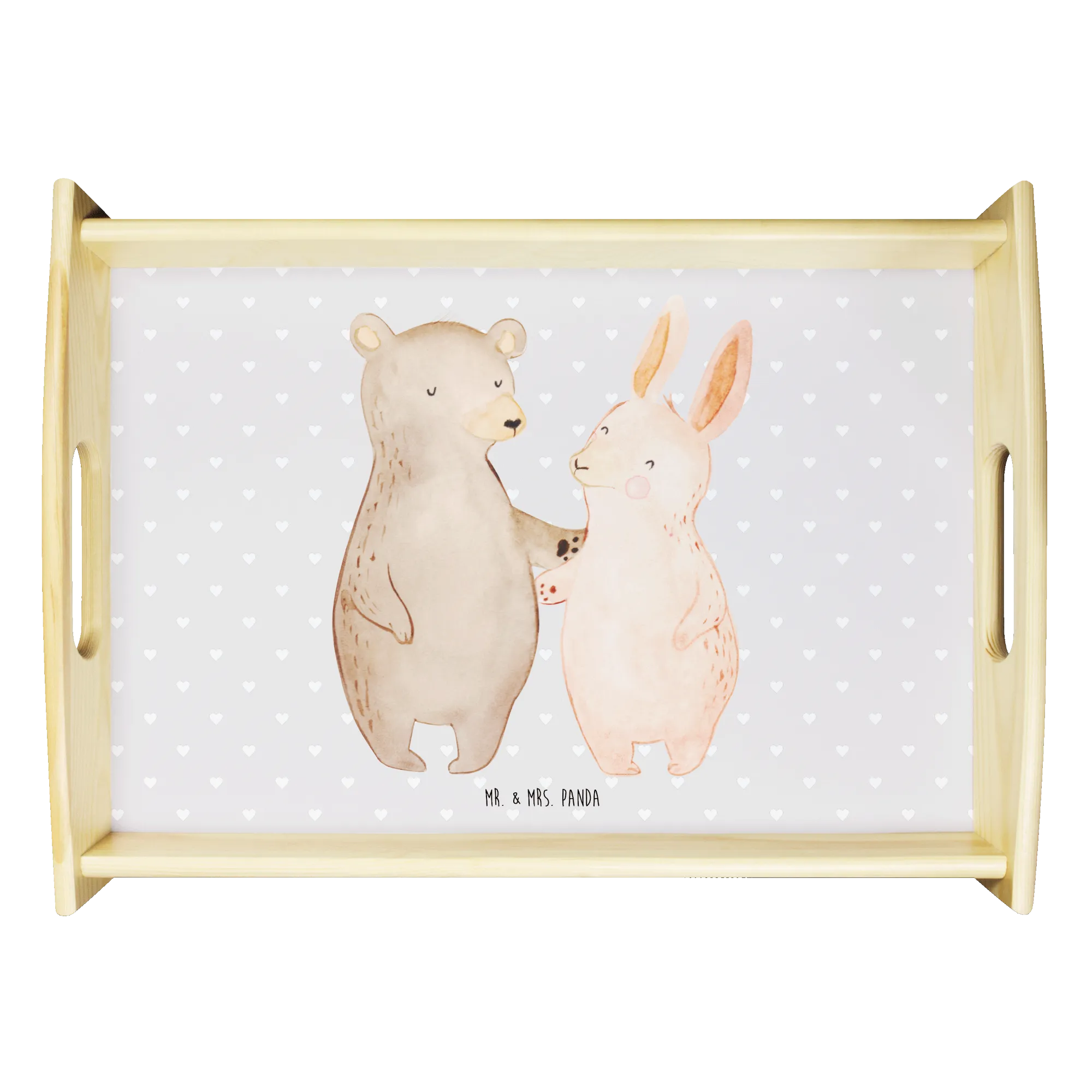 Das Serviertablett mit dem zauberhaften Motiv "Bär Hase Umarmen" von Mr. & Mrs. Panda ist der perfekte Begleiter für all deine besonderen Momente! Dieses liebevoll gestaltete Tablett aus lasiertem Echtholz ist nicht nur praktisch, sondern auch ein wahrhaftes Kunstwerk, das jeden Raum mit einer herzlichen Atmosphäre erfüllt.
